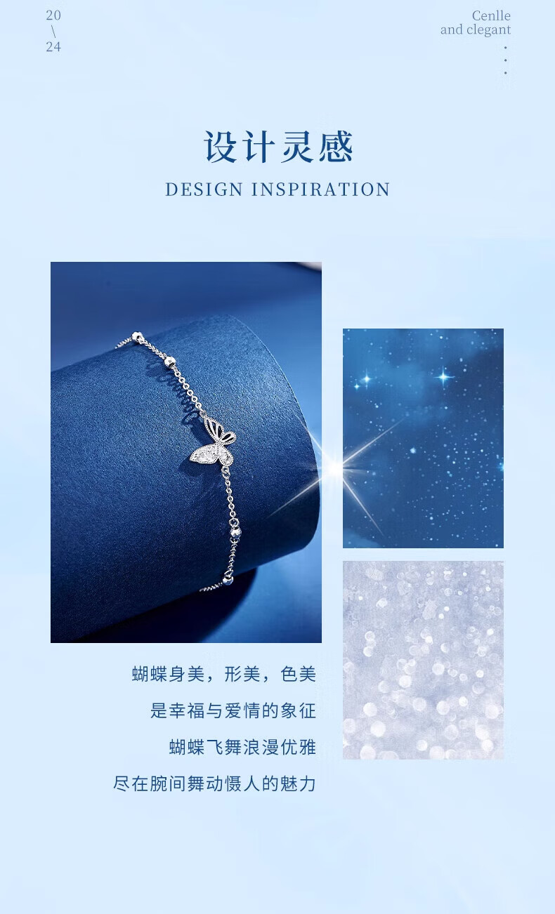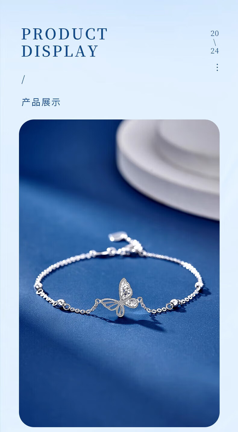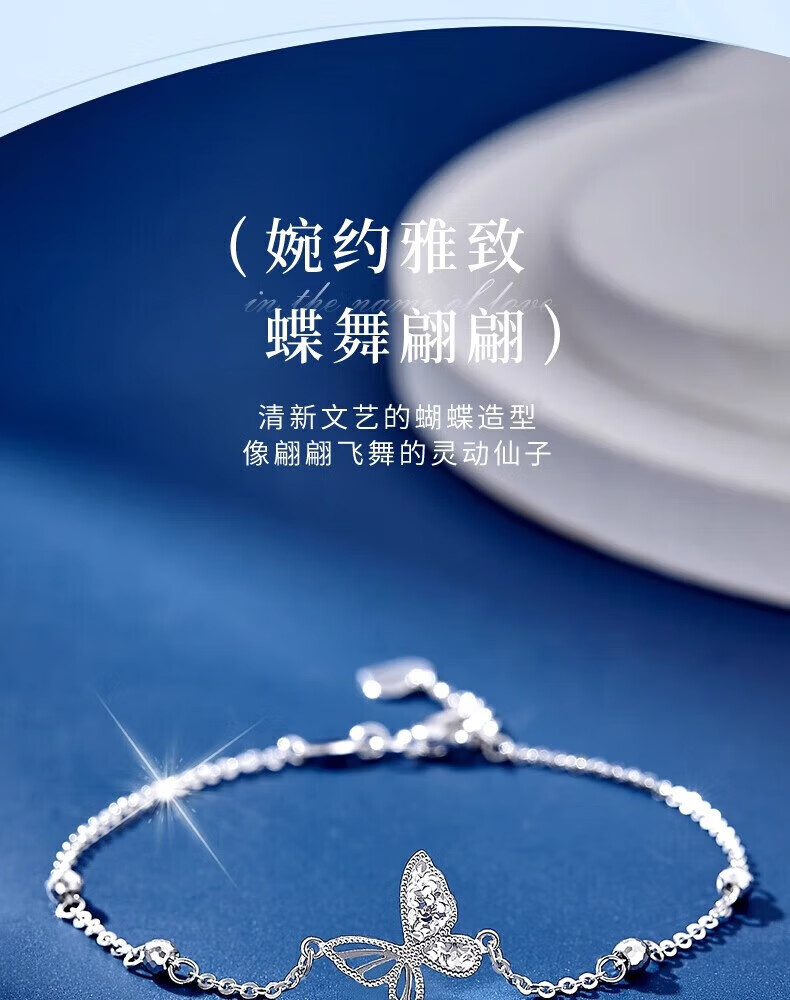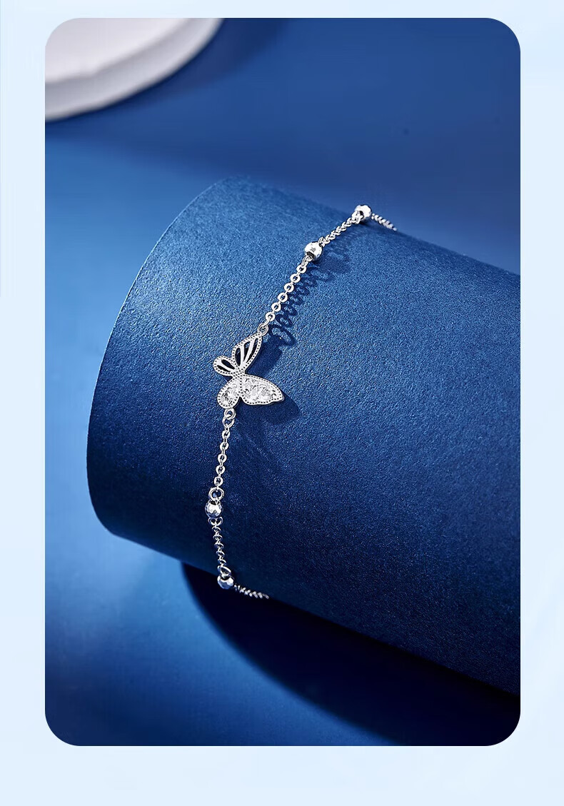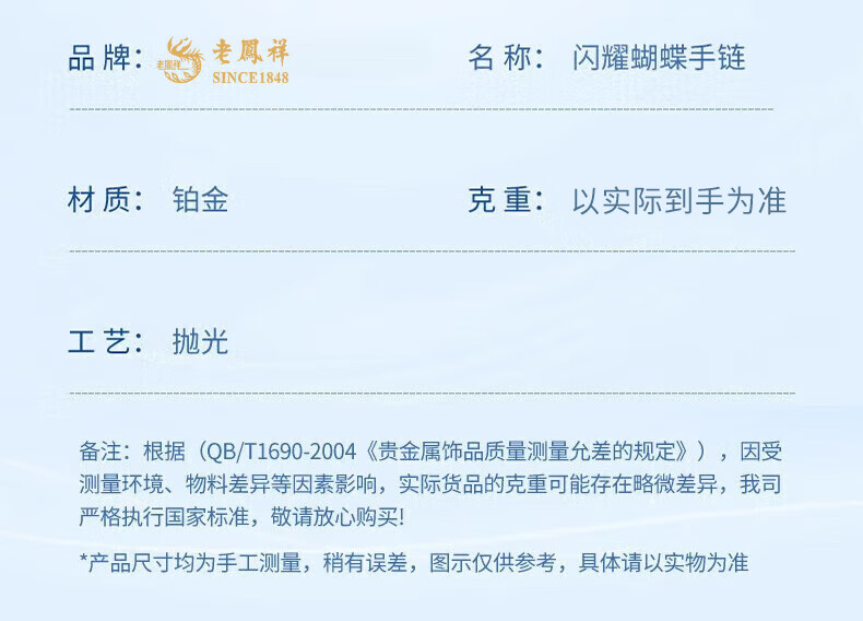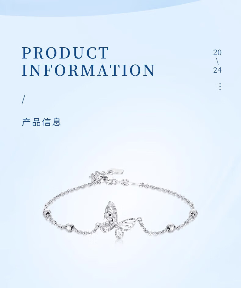 Lao Fengxiang sparkling butterfly platinum bracelet for women pt950 platinum bracelet jewelry wedding birthday gift for girlfriend and wife butterfly platinum bracelet about 2.6g brand gift box
