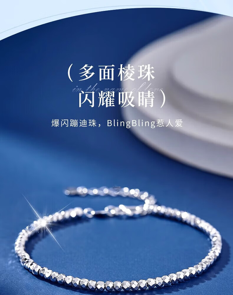 Lao Fengxiang pt950 platinum bracelet for women, platinum sparkling bouncing bead bracelet, Valentine's Day birthday gift for girlfriend and wife, popping bouncing bouncing bead platinum bracelet, about 3.9g, brand gift box