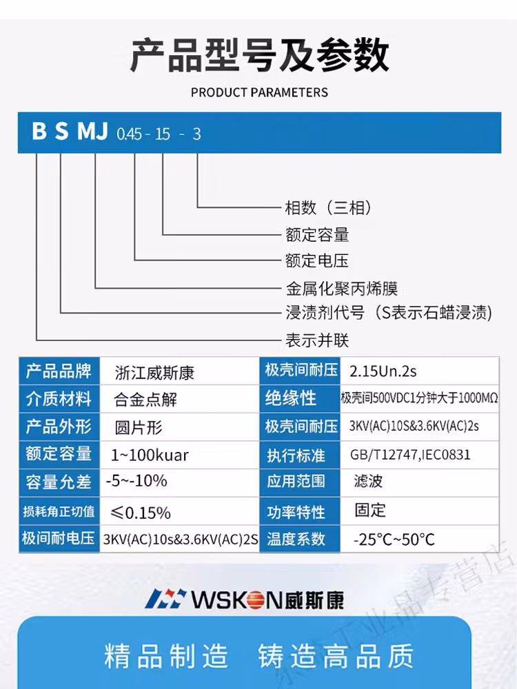 Power capacitor BSMJ045 series self-healing three-phase compensation parallel power capacitor BSMJ0 point 45-8-3