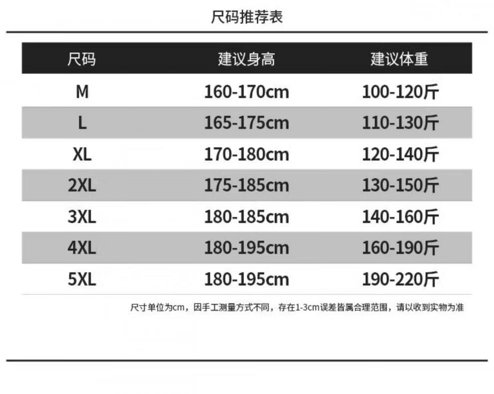 China (cm) 165 / 88-90 170 / 96-98 175 / 108-110 180 / 118-122 185 / 126-130