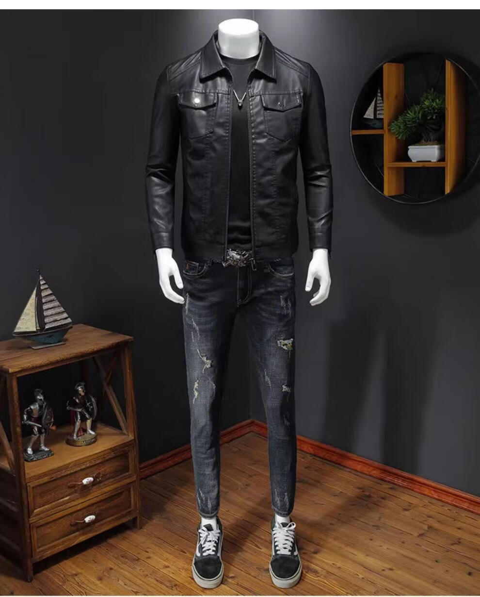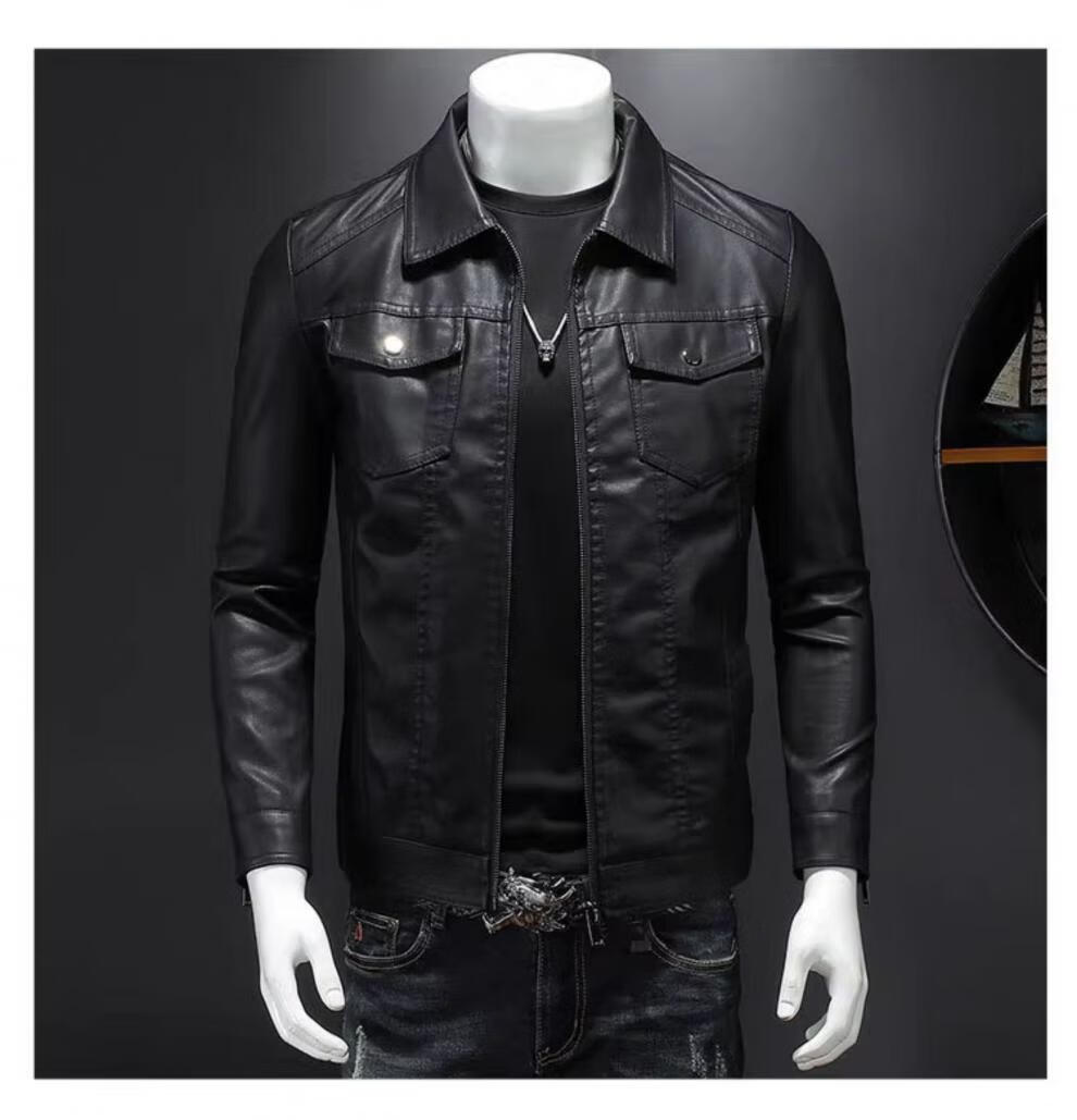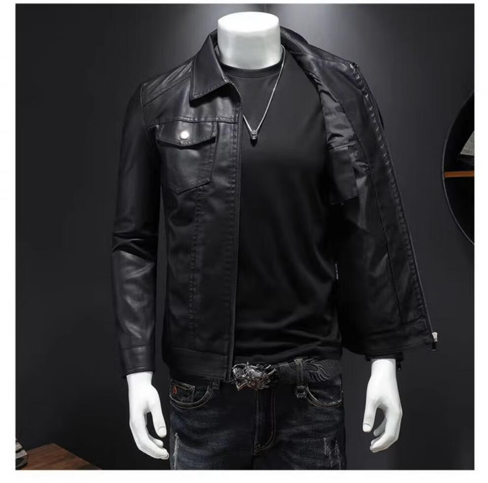 ARMANI EXCHANGE Armani black short leather jacket men's motorcycle style leather jacket fashion new autumn and winter retro lapel leather black plus velvet L 110-130Jin Jin equals 0.5 kg