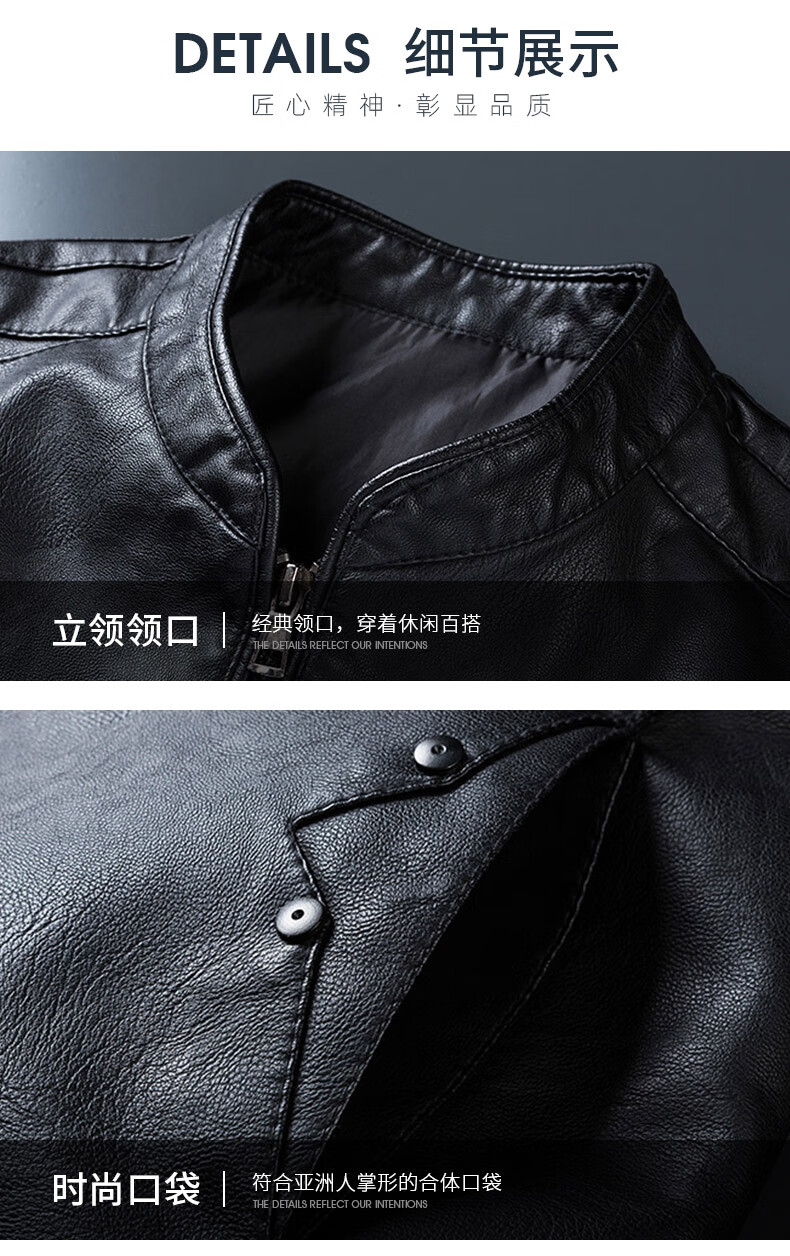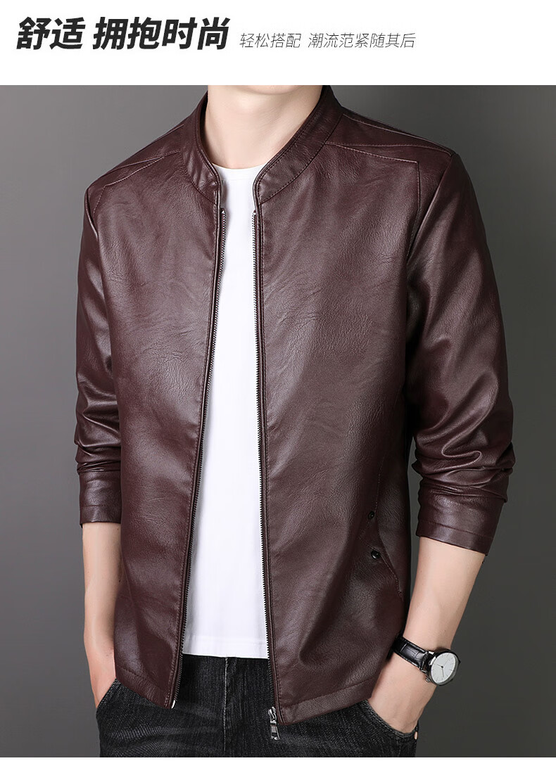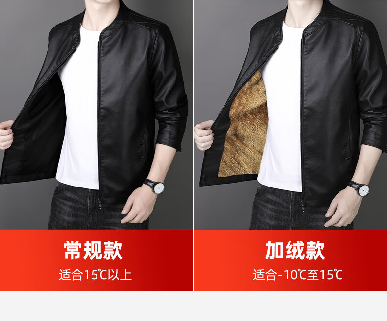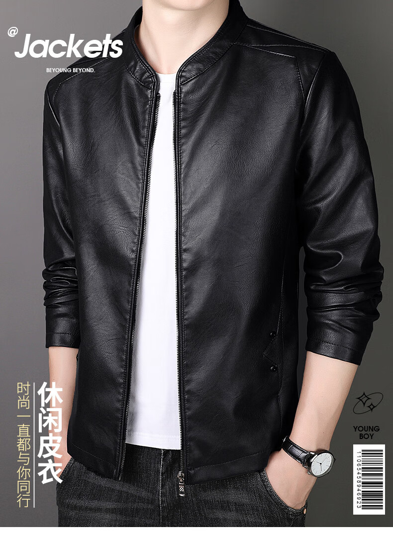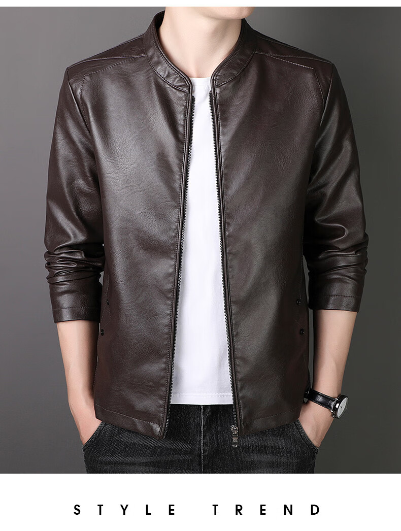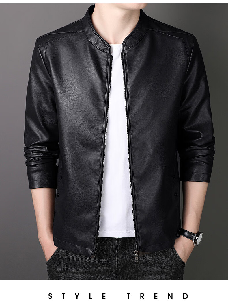 ARMANI EXCHANGE Armani genuine leather jacket men's spring and autumn stand-up collar loose leather business casual leather jacket trendy youth machine black (8802) plus velvet 5XL (180-200Jin Jin is equal to 0.5 kg)