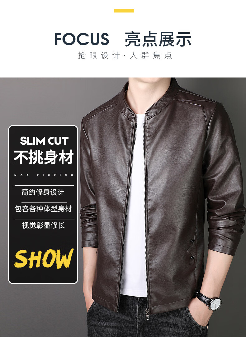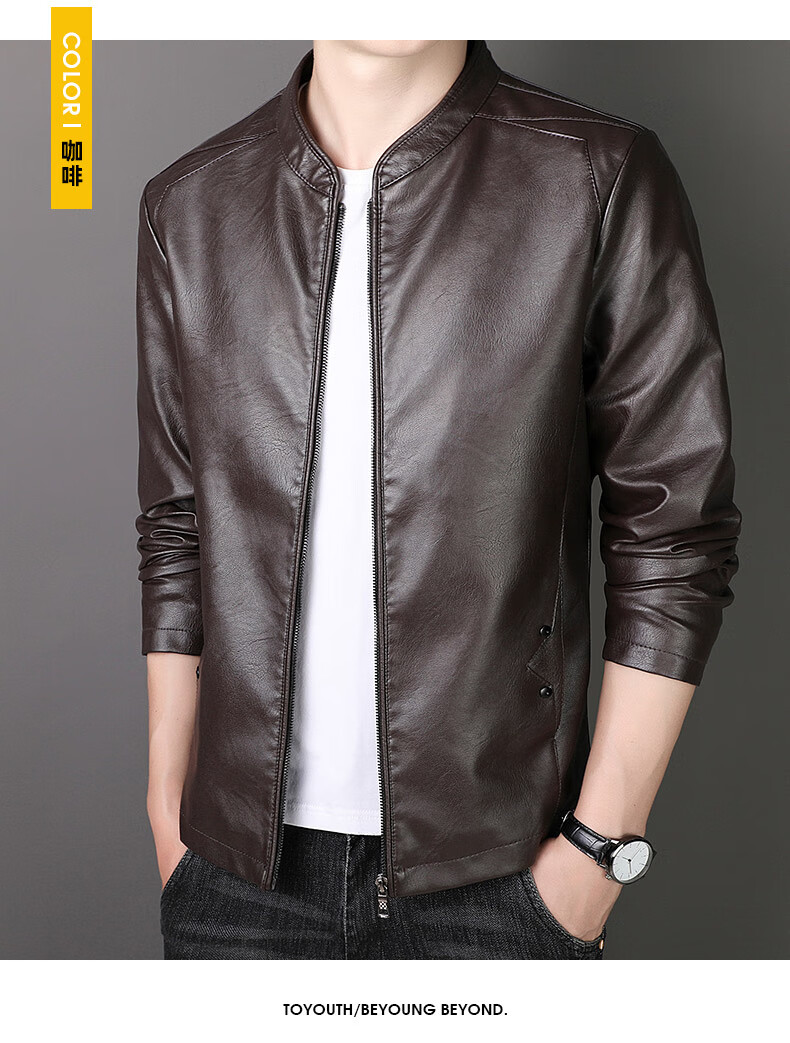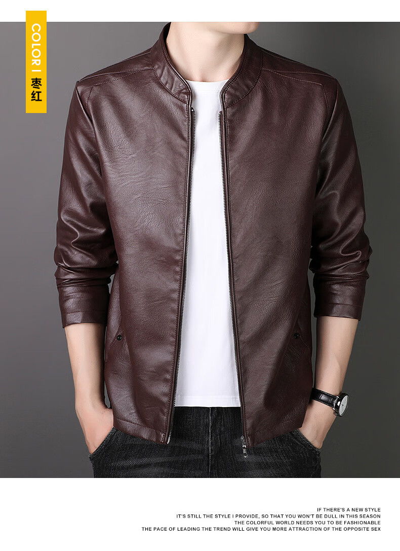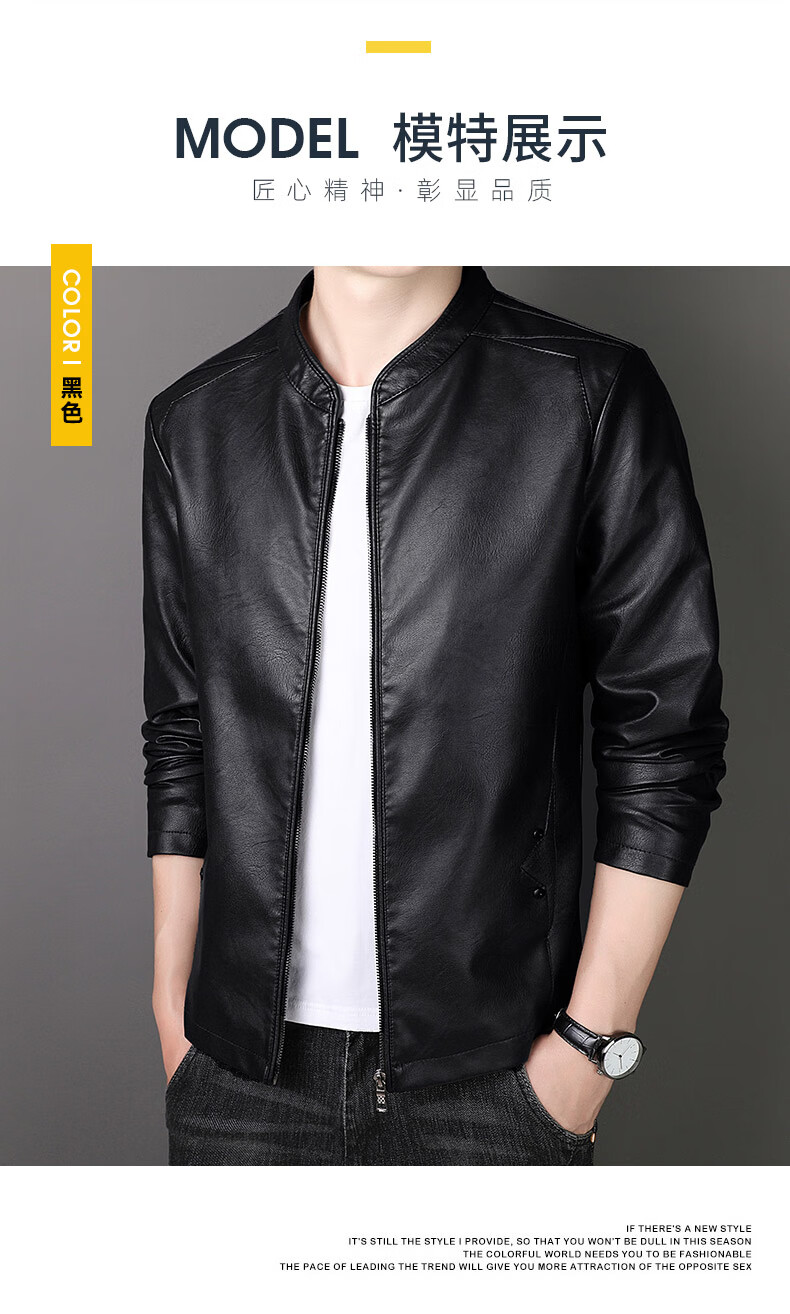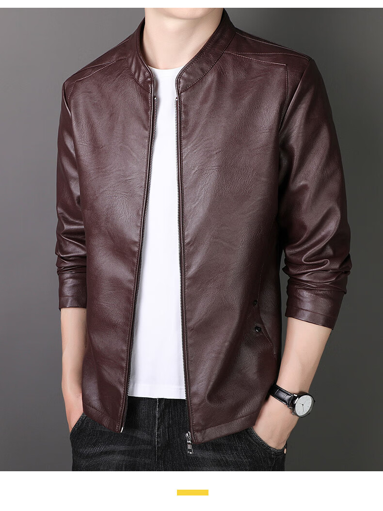 ARMANI EXCHANGE Armani genuine leather jacket men's spring and autumn stand-up collar loose leather business casual leather jacket trendy youth machine black (8802) plus velvet 5XL (180-200Jin Jin is equal to 0.5 kg)