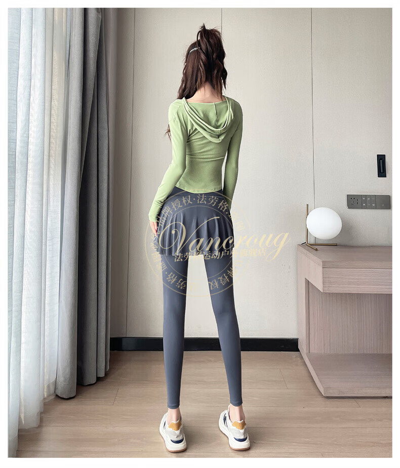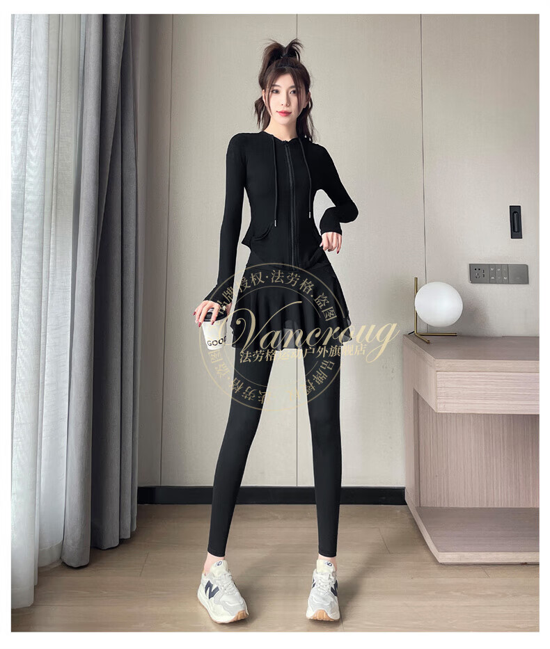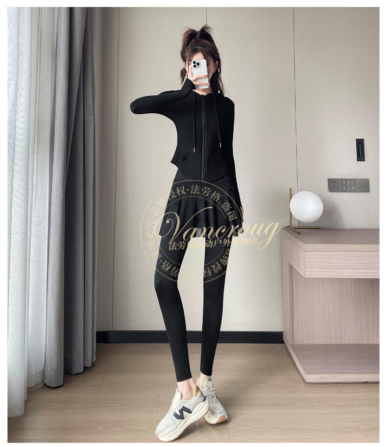 VANCROUG Badminton Wear Women's 2025 New Tennis Skirts Pilates Running Suit Yoga Jacket Fitness Top Two-piece Set Black + Black No Vest S
