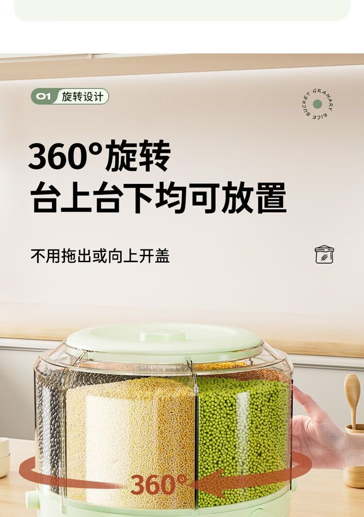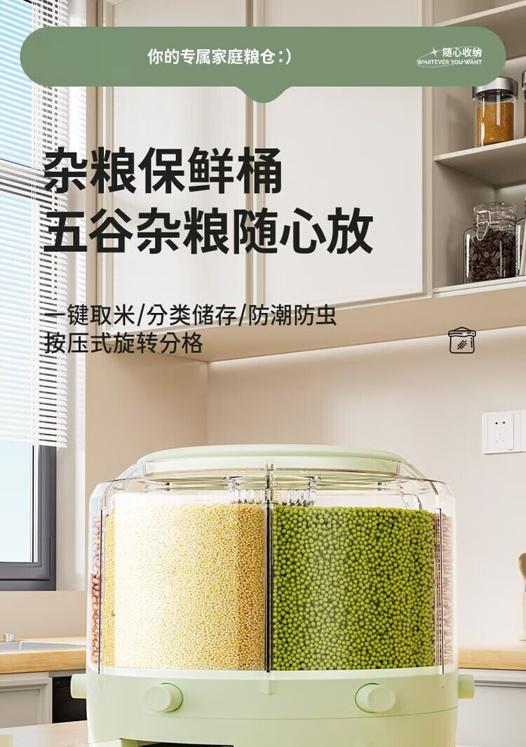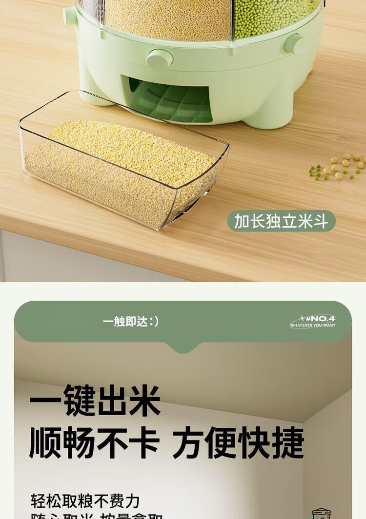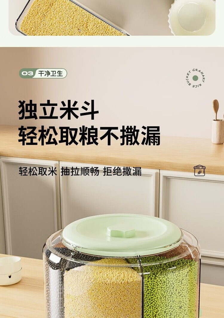 Jiarilai Fat Donglai same style rice bucket 50 Jin Jin is equal to 0.5 kg, thickened divided grid rice barrel, new household rotatable rice barrel grain storage barrel, small white, 1 compartment, sealed cover + drawer box