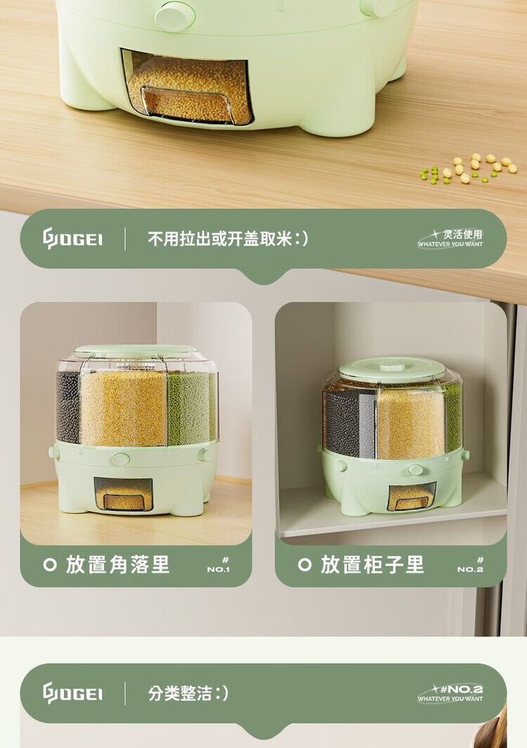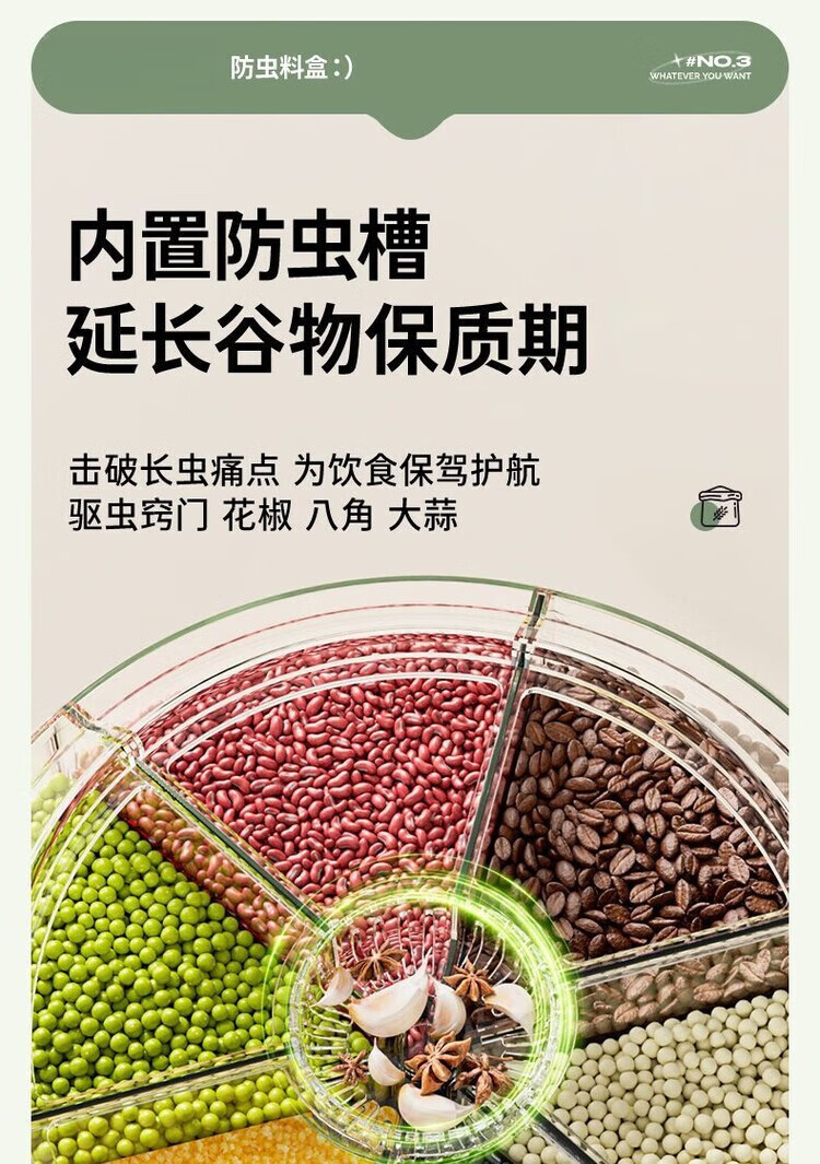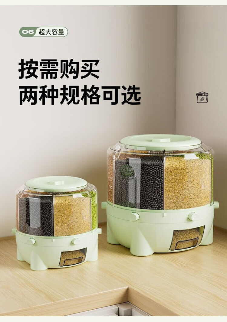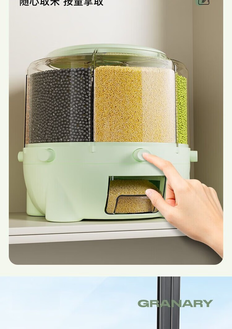 Jiarilai Fat Donglai same style rice bucket 50 Jin Jin is equal to 0.5 kg, thickened divided grid rice barrel, new household rotatable rice barrel grain storage barrel, small white, 1 compartment, sealed cover + drawer box
