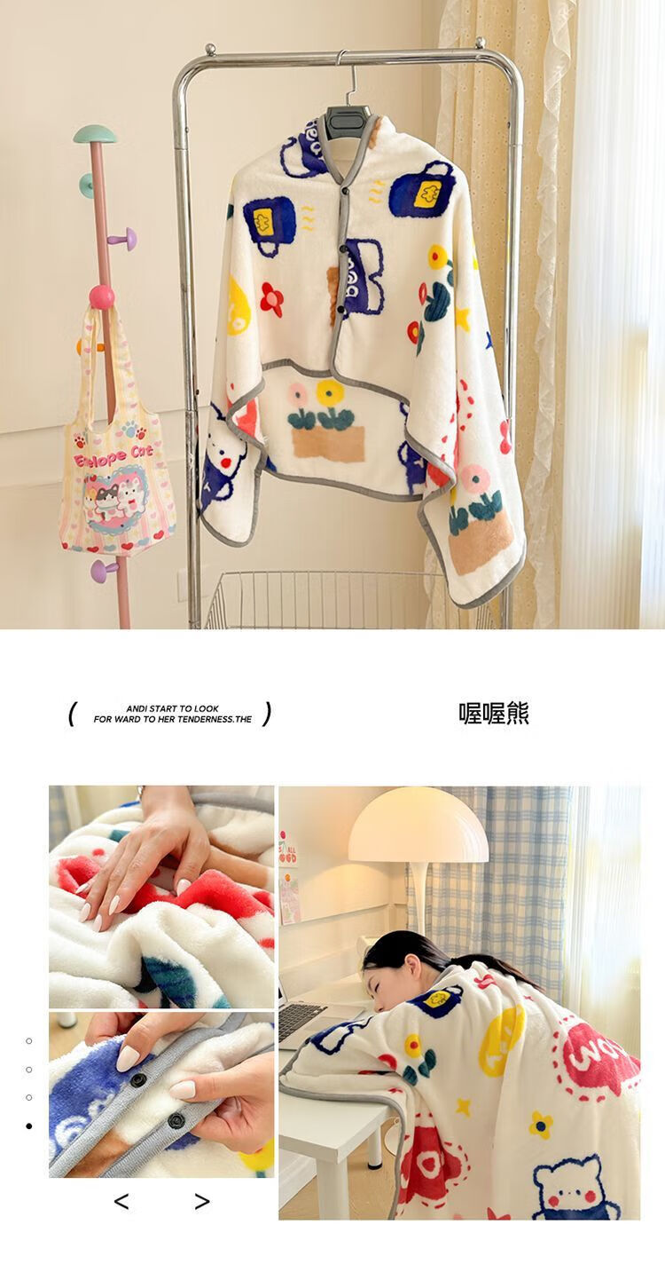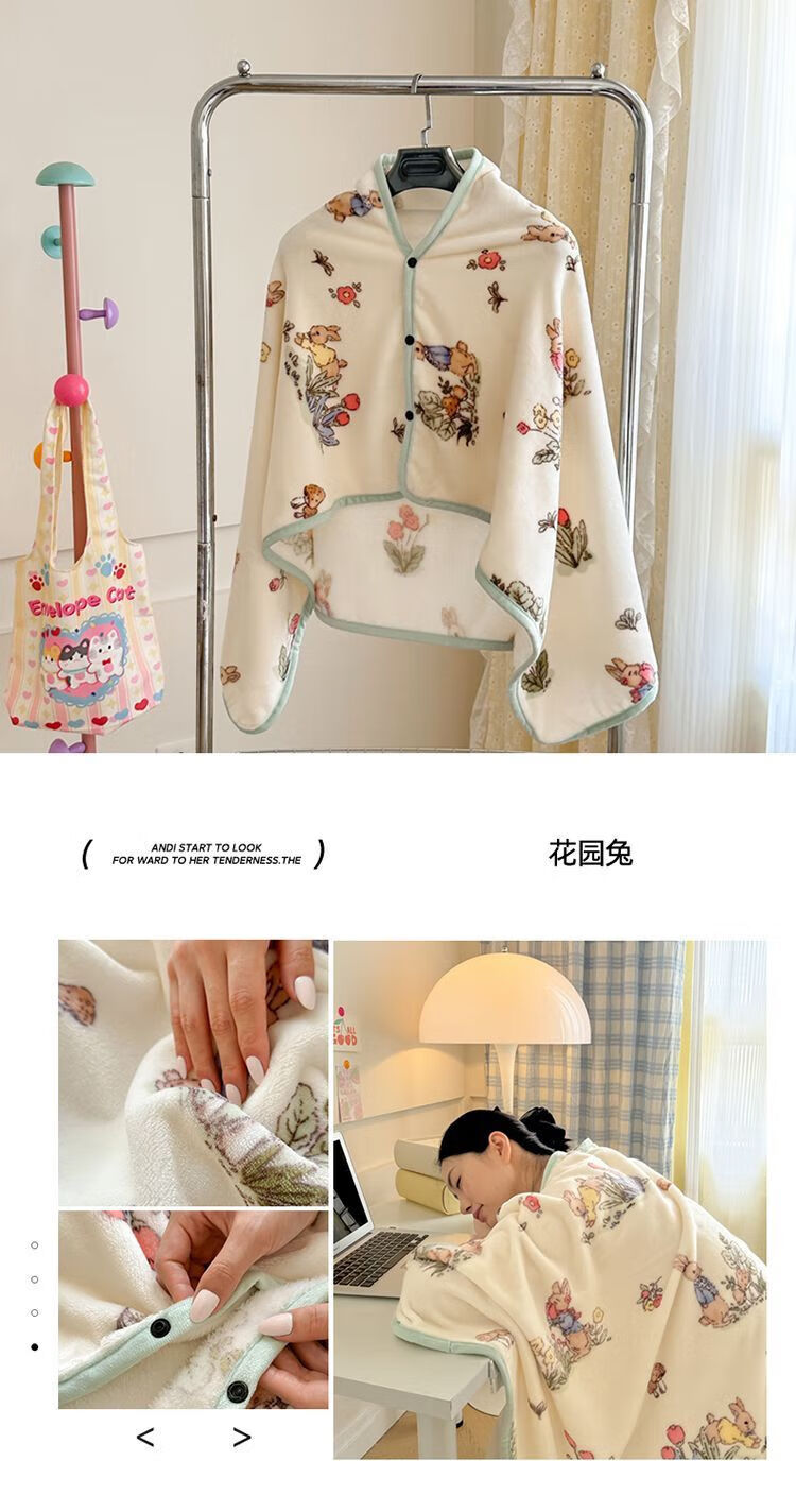 Universal confinement shawl Summer medical nap blanket with snap shawl Office cold-proof air conditioning blanket confinement shawl Garden Rabbit double-sided milk velvet four-season blanket 80x130cm children's shawl leg blanket