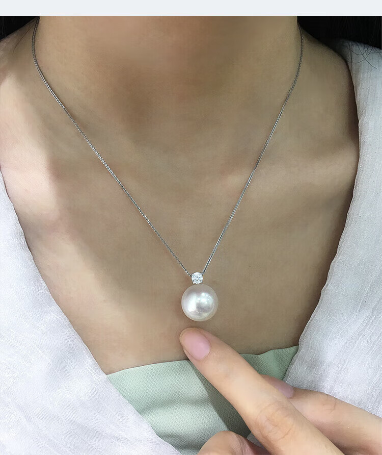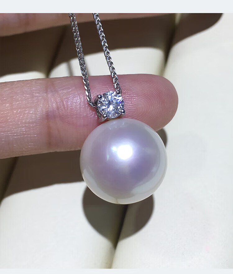 Su Chen's natural Edison pearl pendant, round and bright 18K gold zircon princess, is comparable to Australian white seawater pearls 1112mm