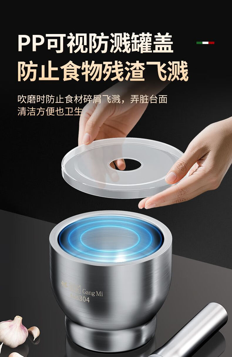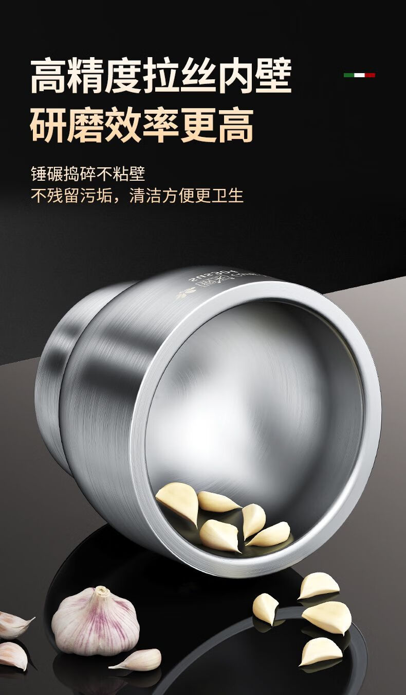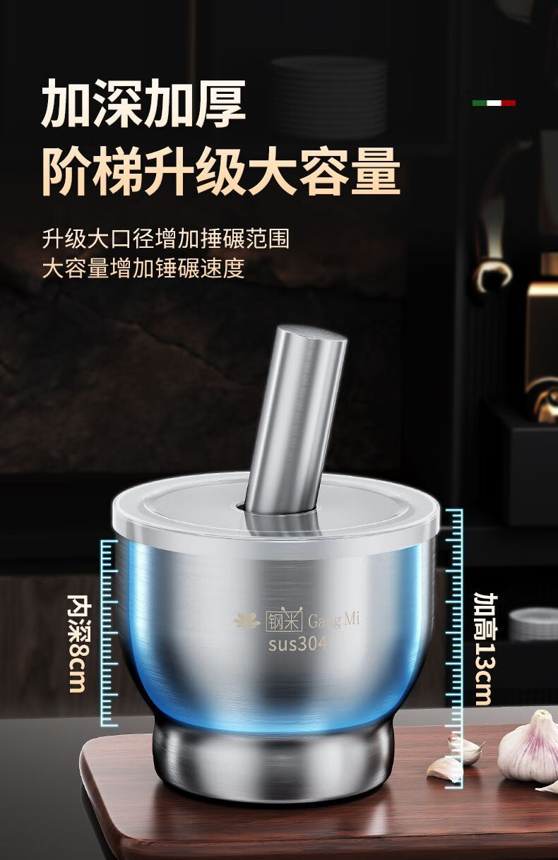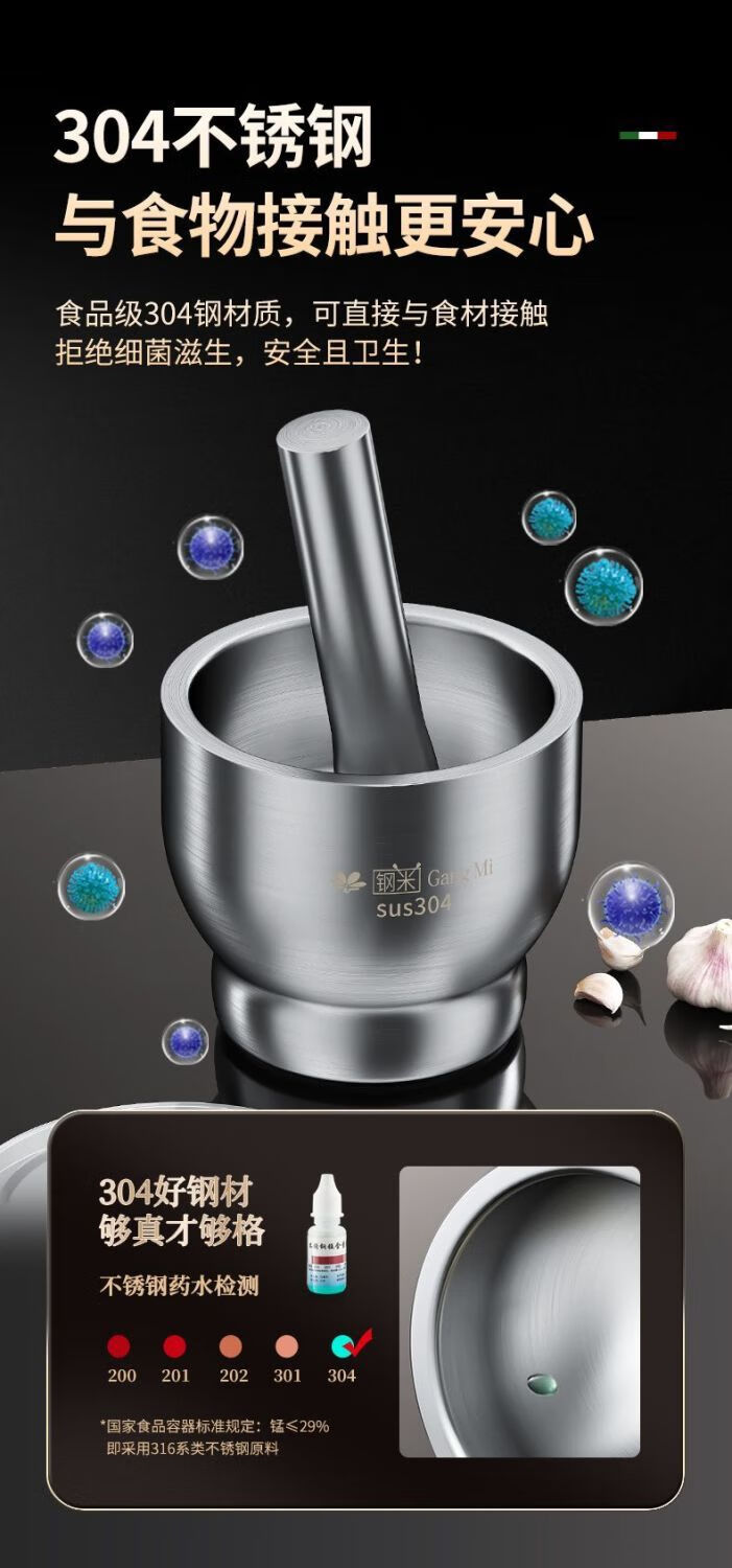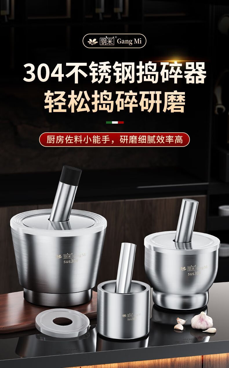 NAOISKEY Naoski 304 stainless steel masher solid 304 garlic masher household grinding and mashing pot manual garlic paste stirrer garlic artifact steel meter 10CM straight 304 upgraded model