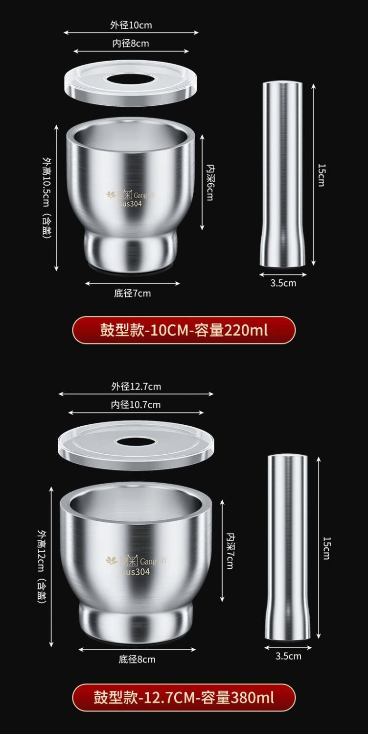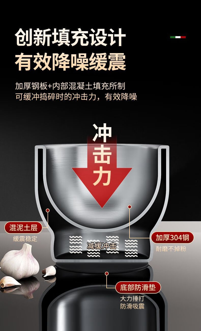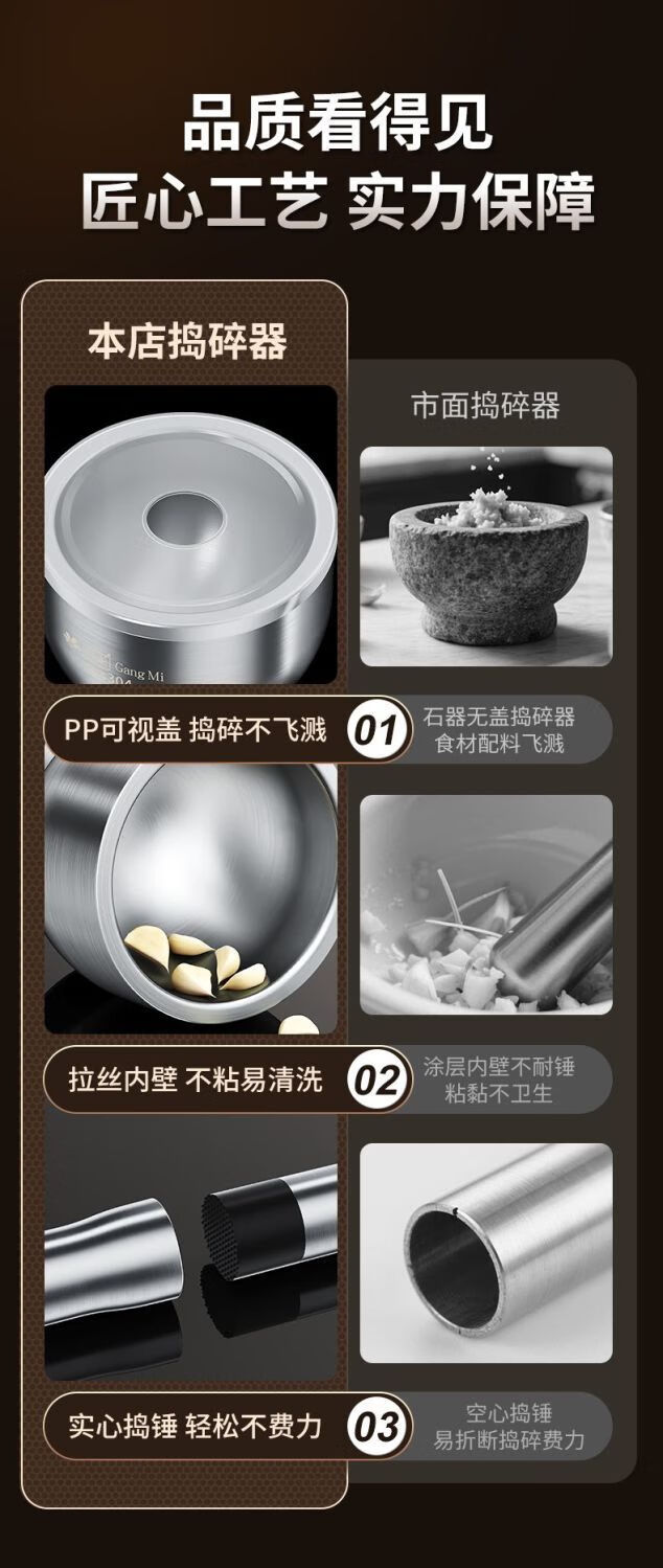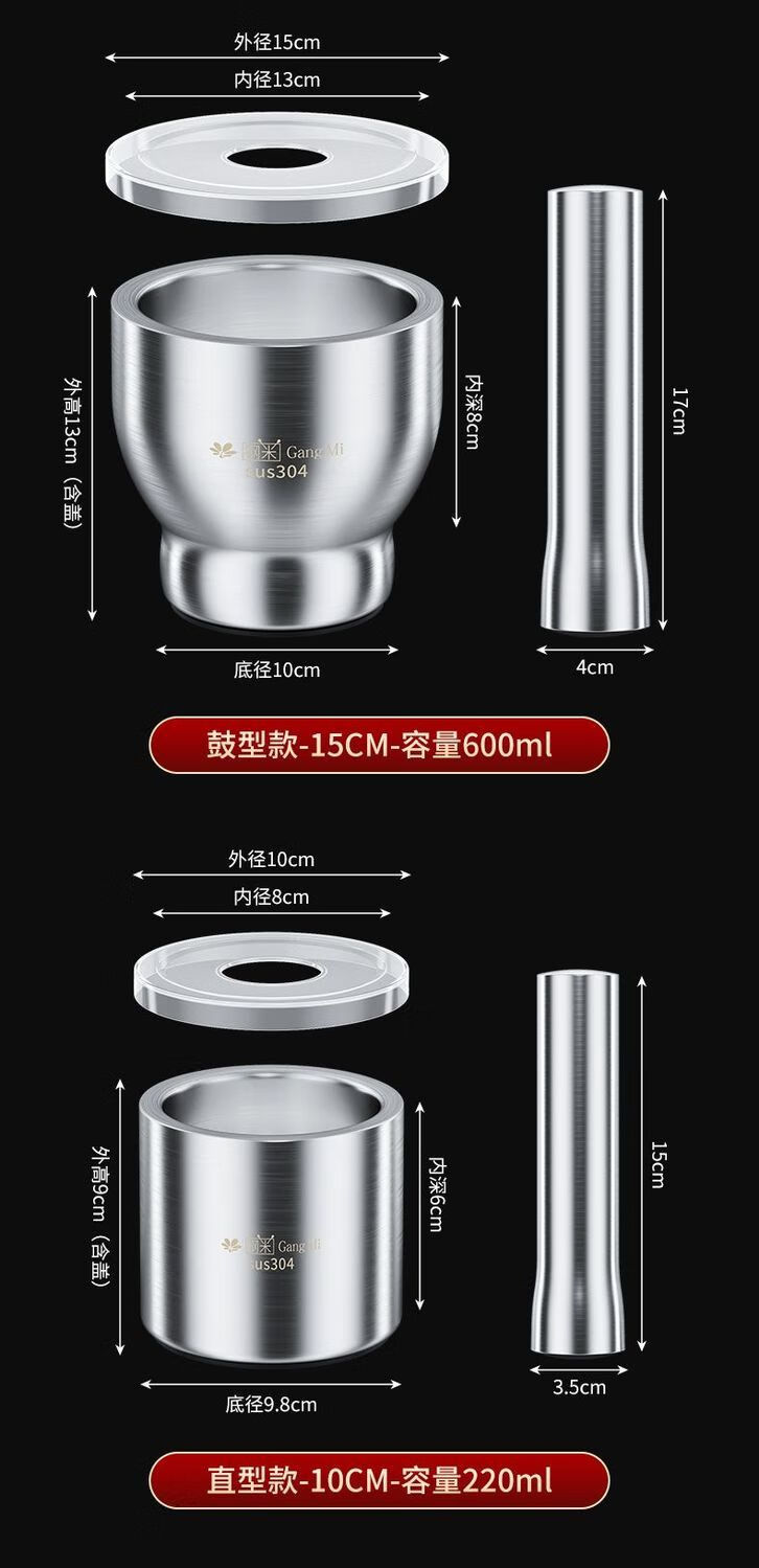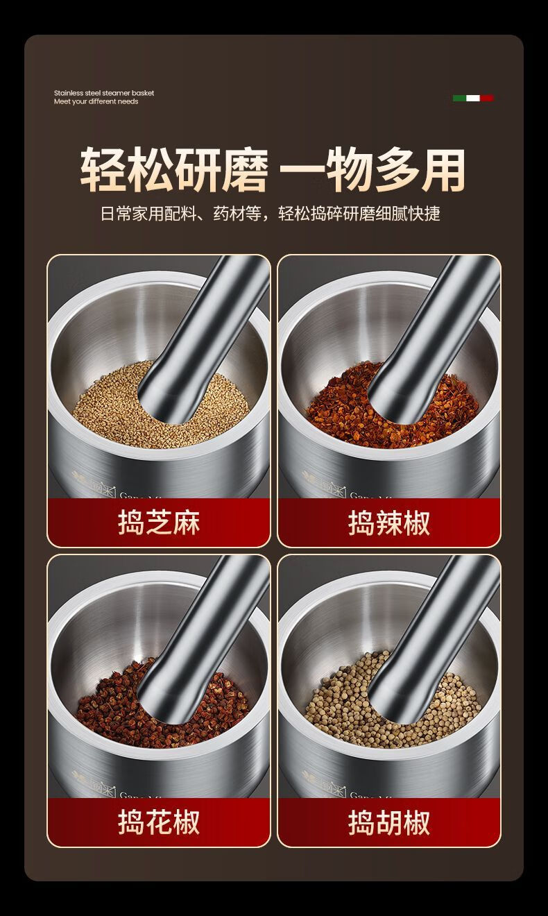 NAOISKEY Naoski 304 stainless steel masher solid 304 garlic masher household grinding and mashing pot manual garlic paste stirrer garlic artifact steel meter 10CM straight 304 upgraded model