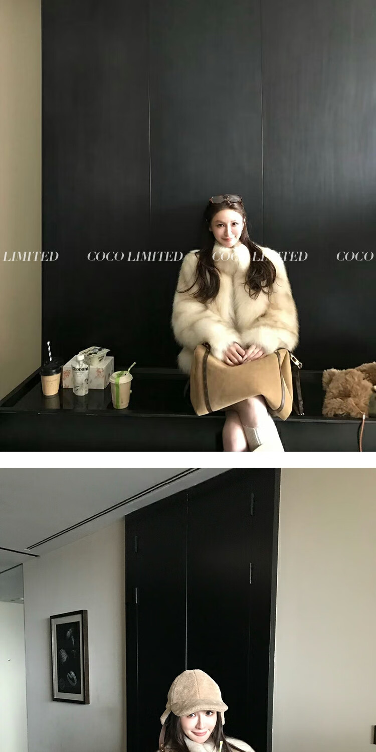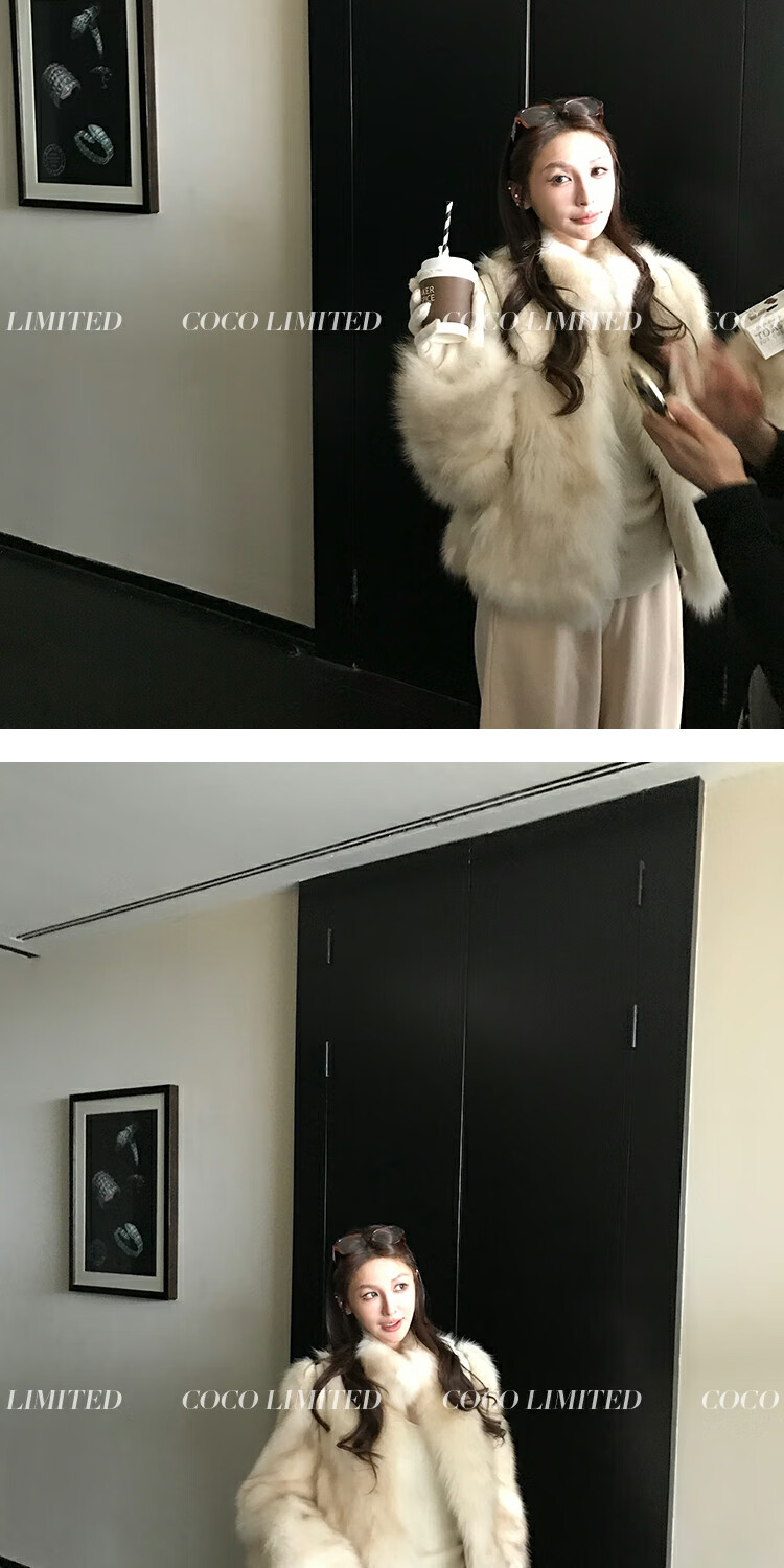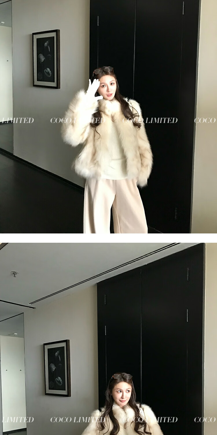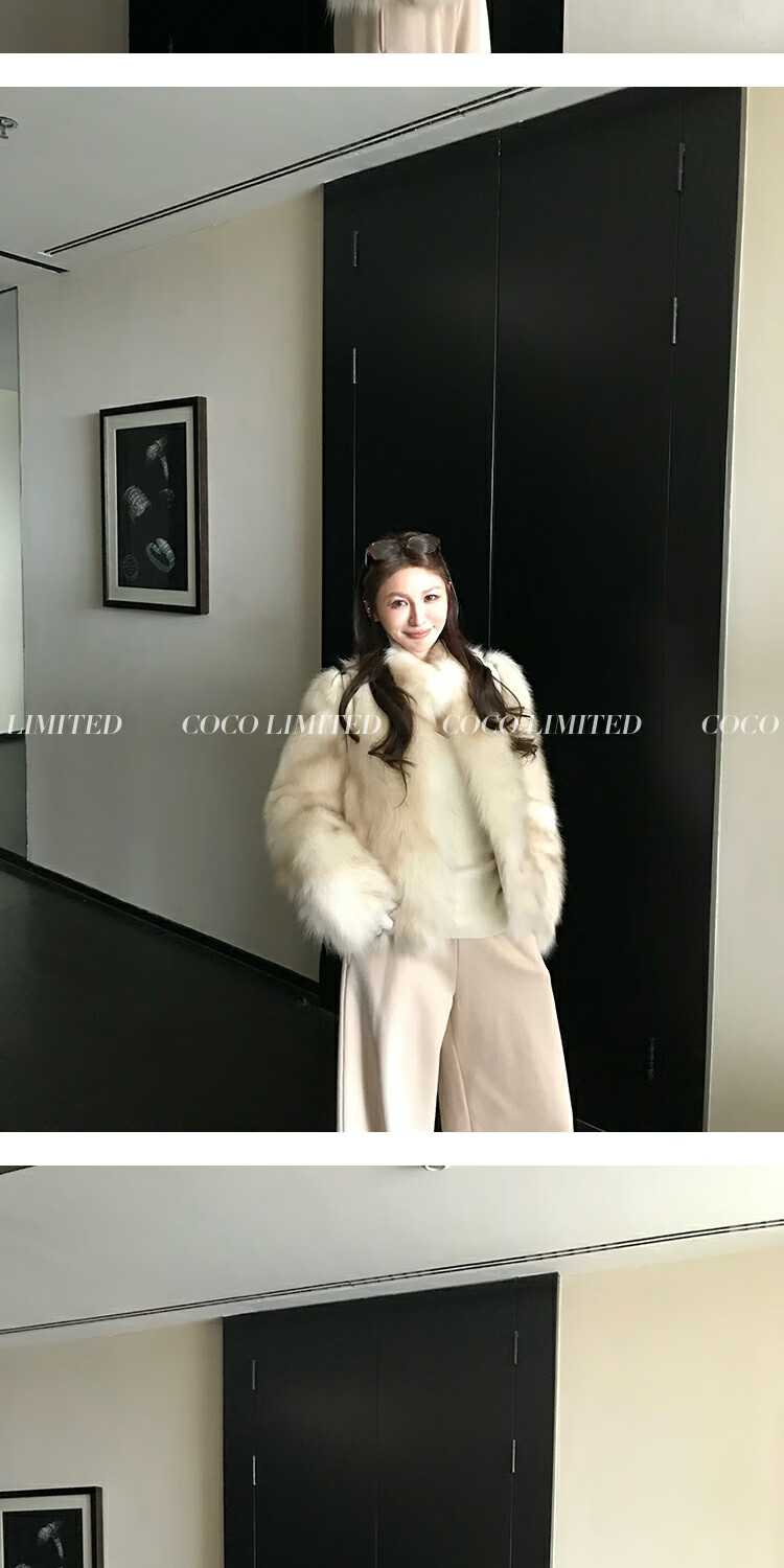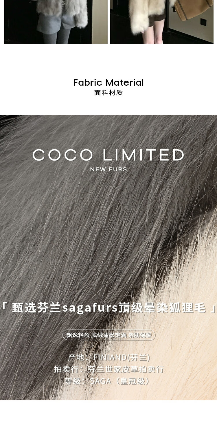 COCO LIMITED dinner party daughter imported from Finland sagafurs two-color smudge-dyed fox fur stand-up collar smudge-dyed gilt white pre-sale M