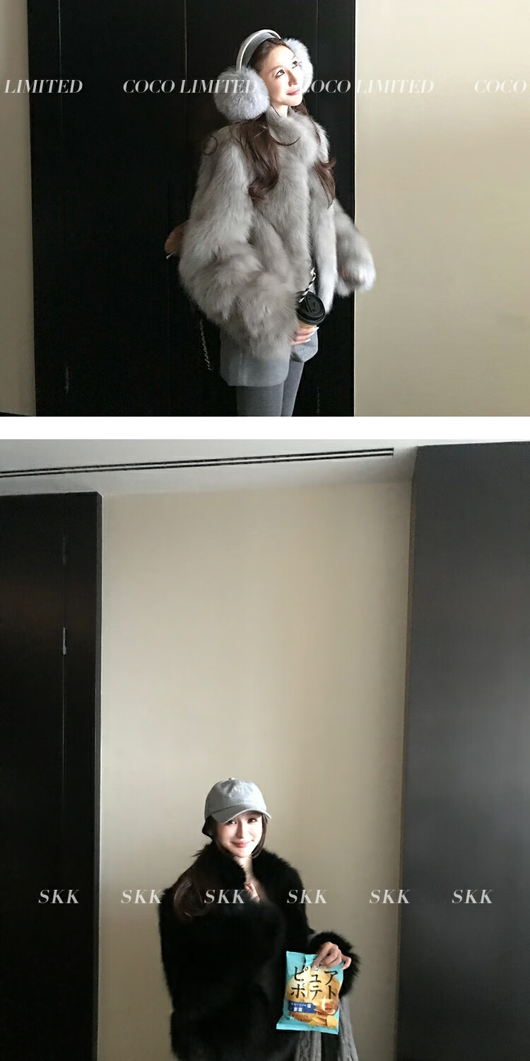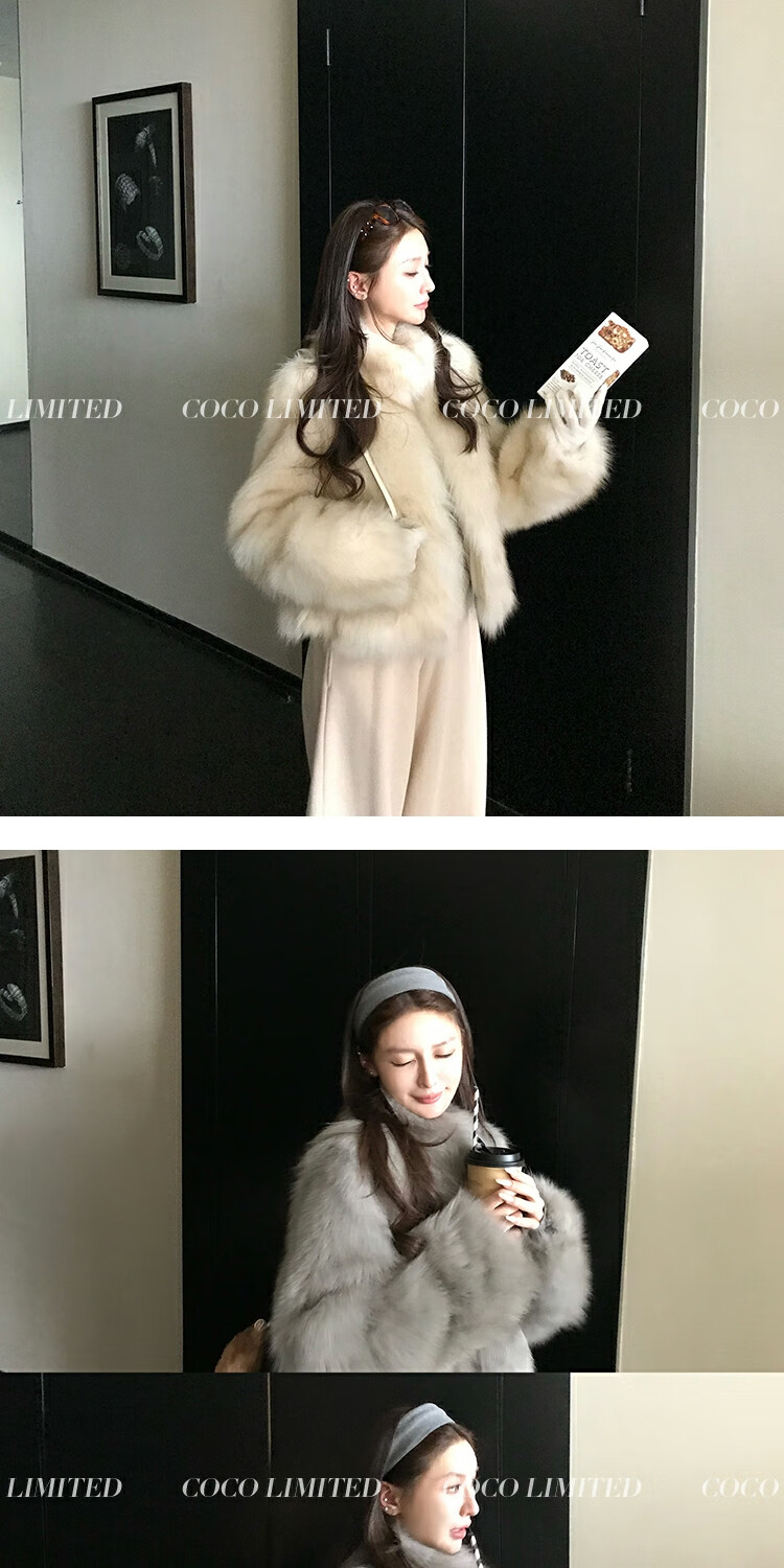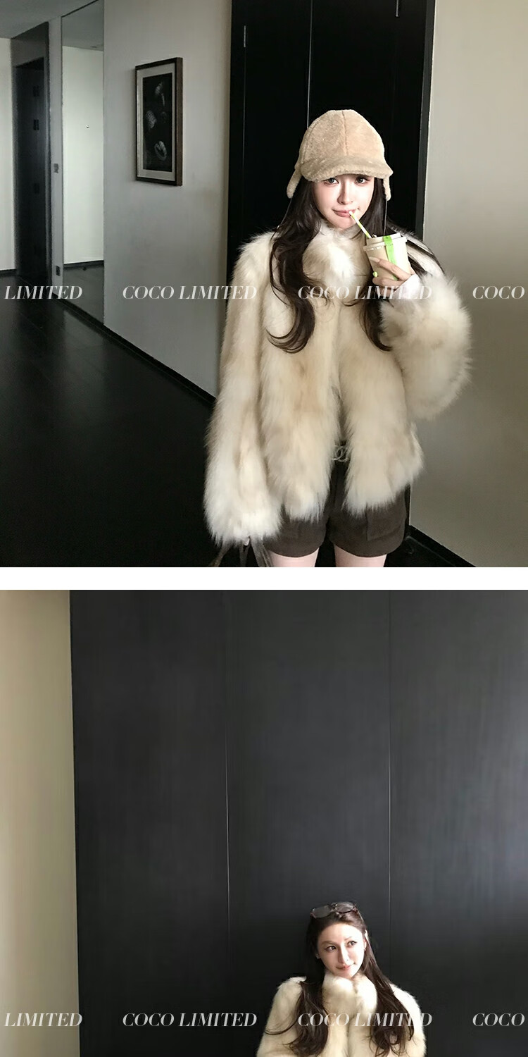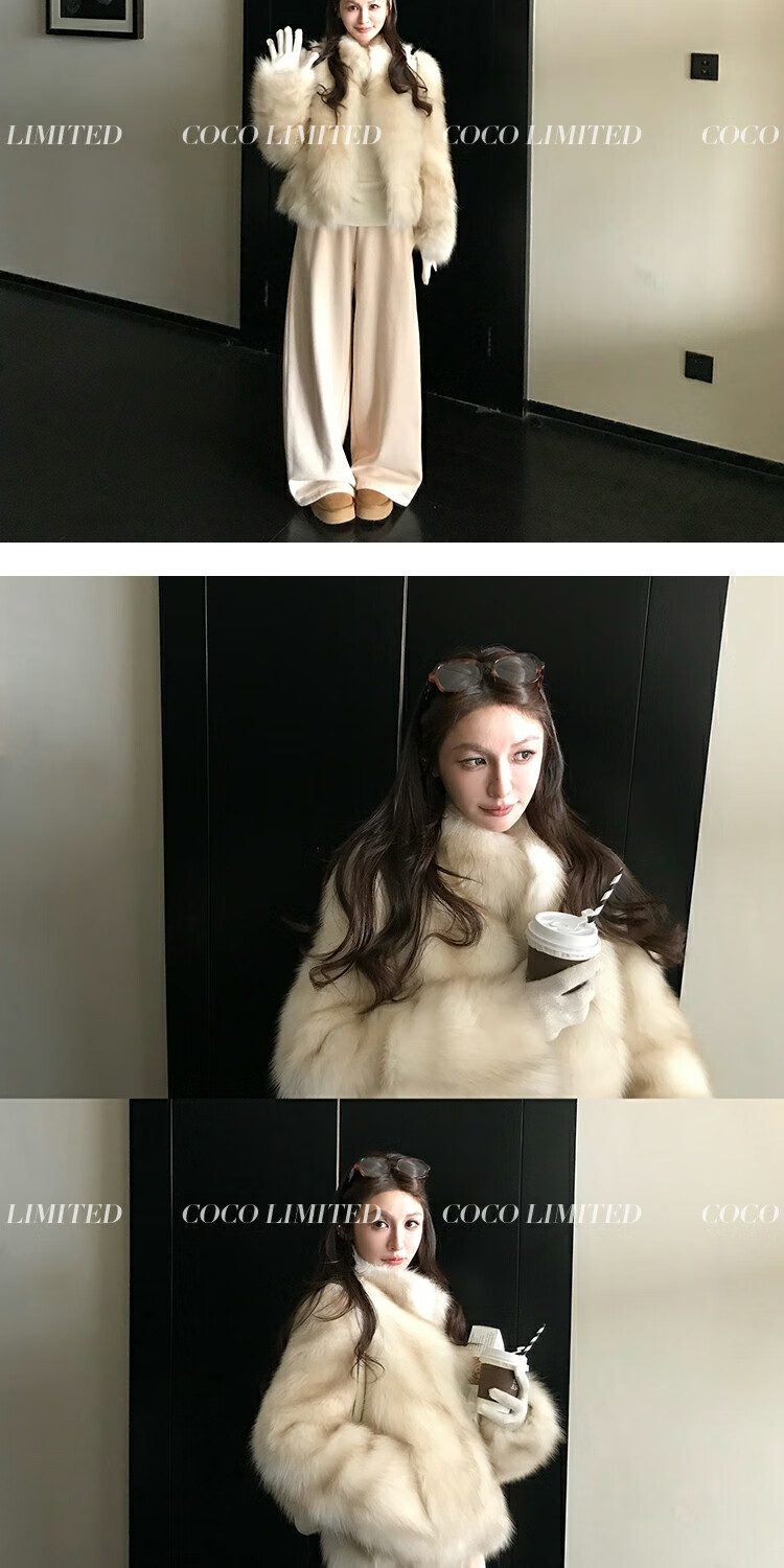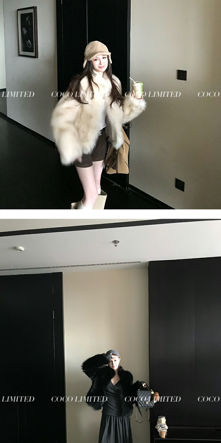 COCO LIMITED dinner party daughter imported from Finland sagafurs two-color smudge-dyed fox fur stand-up collar smudge-dyed gilt white pre-sale M