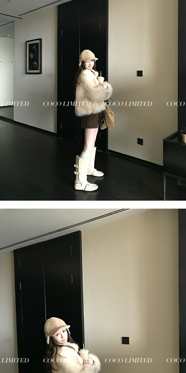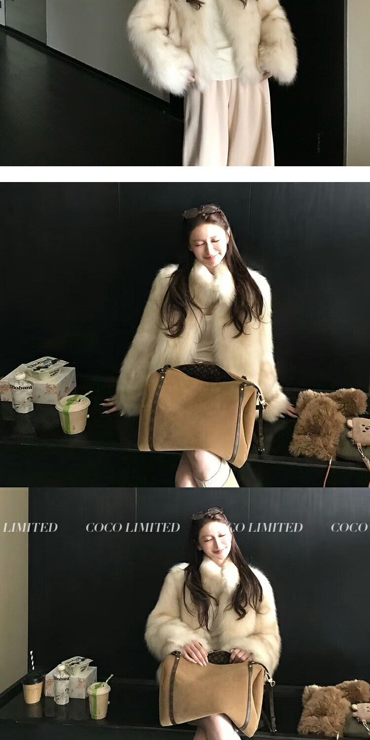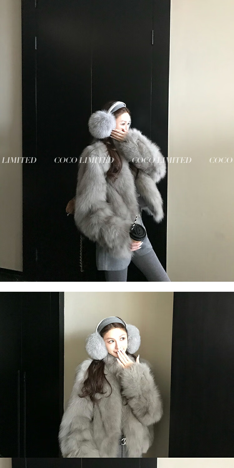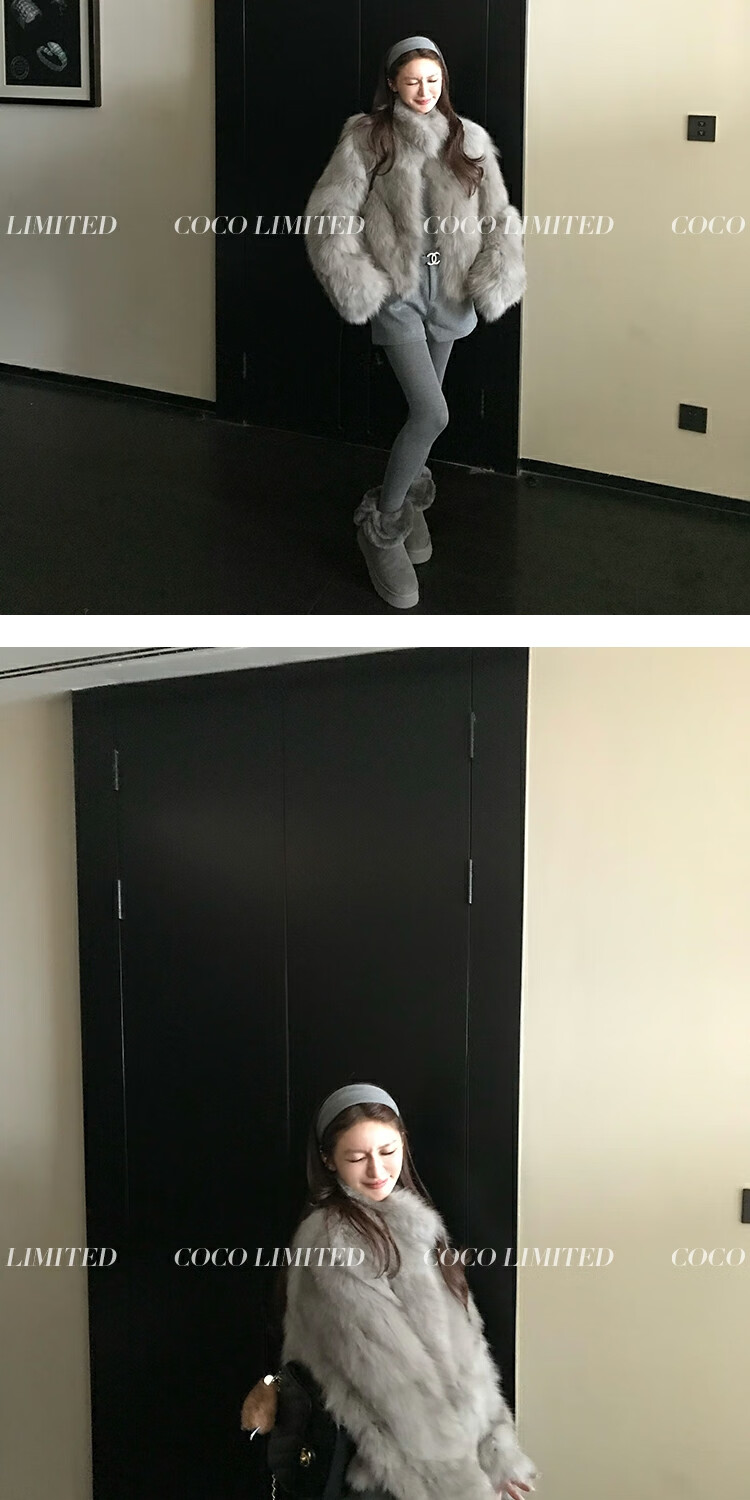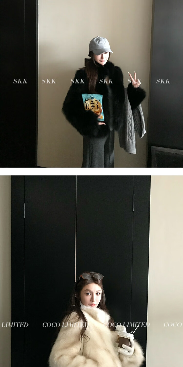 COCO LIMITED dinner party daughter imported from Finland sagafurs two-color smudge-dyed fox fur stand-up collar smudge-dyed gilt white pre-sale M