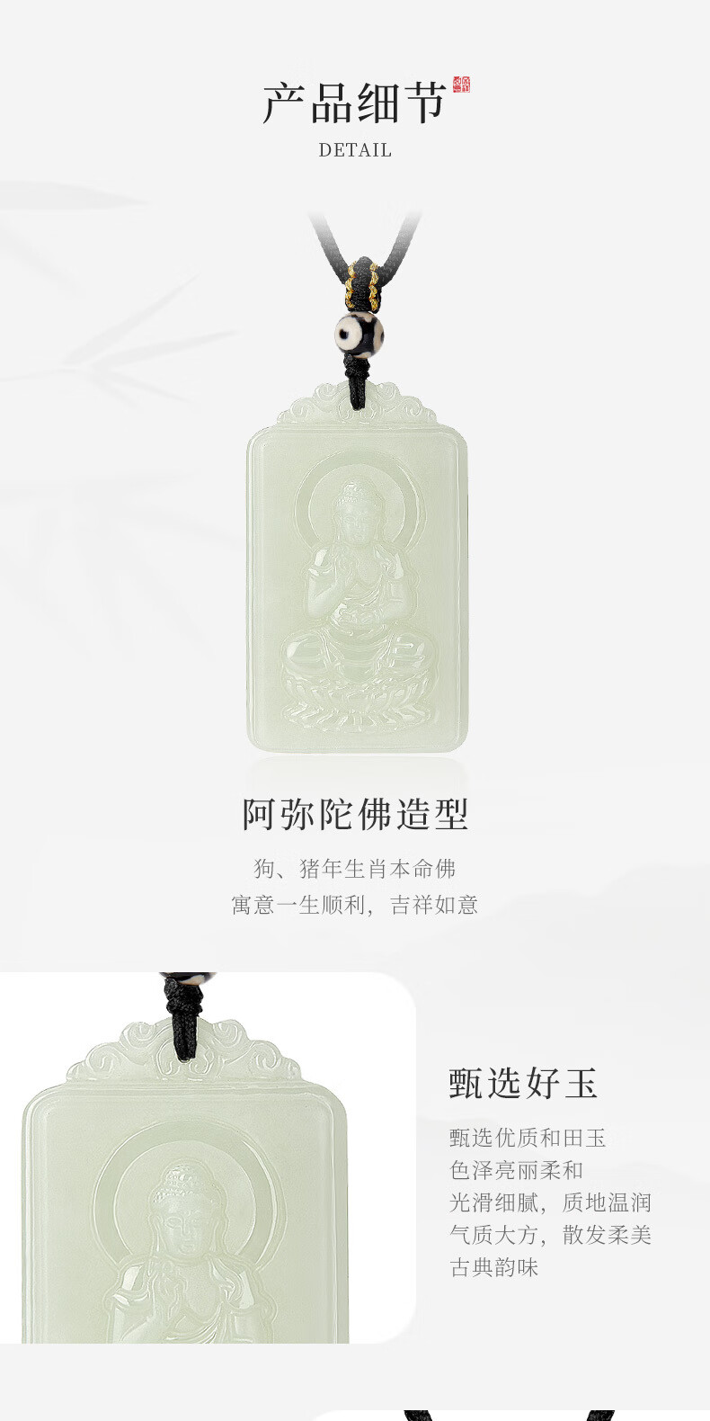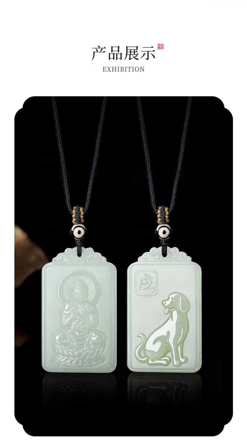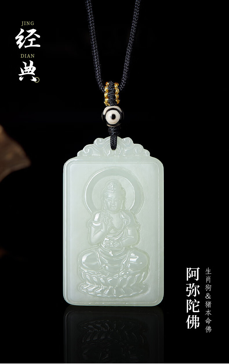 China Gold (CHINA GOLD) Twelve Zodiac Signs Hotan Jade Pendant for Men and Women Benming Buddha Jade Necklace Birthday Gift Year of the Horse Benming Year Gift Zodiac Dog-Hetian Jade Amitabha Necklace Rose Gift Box