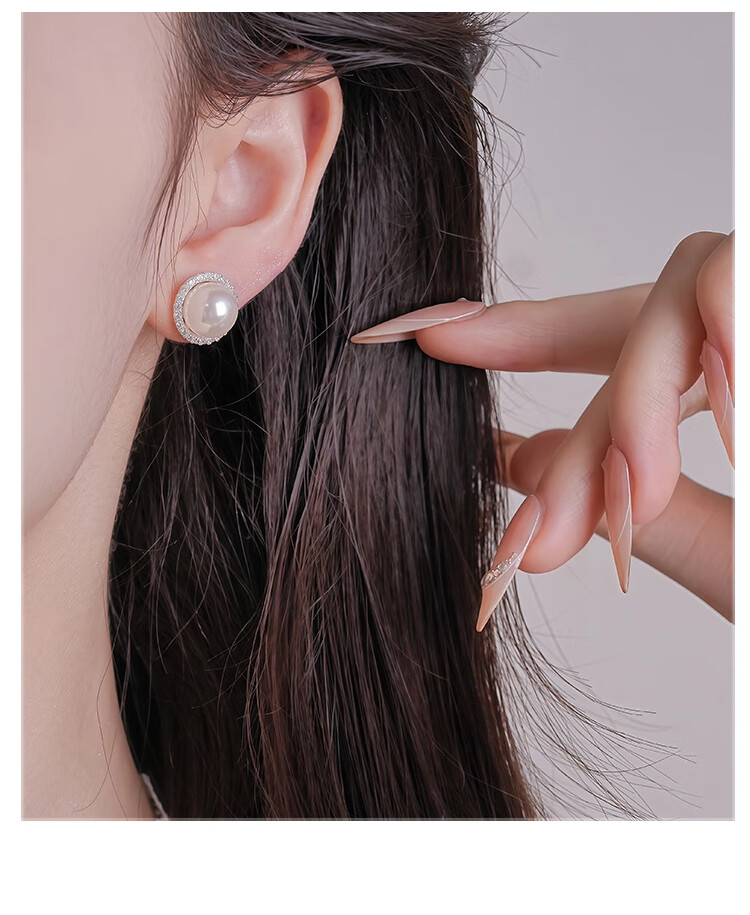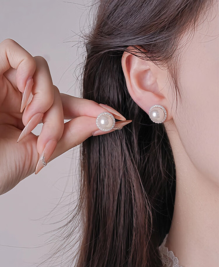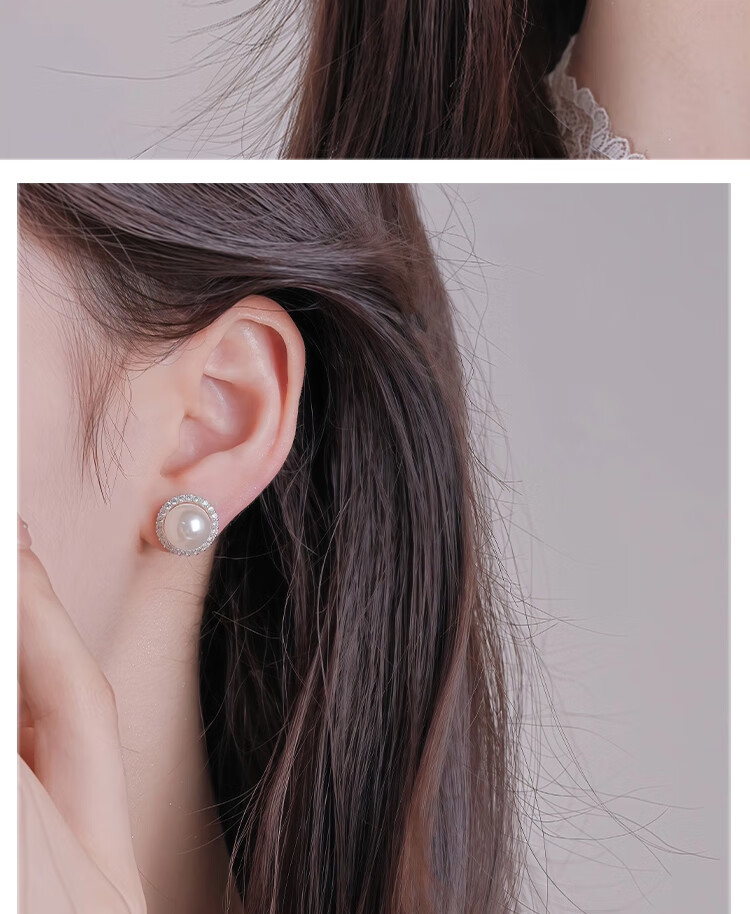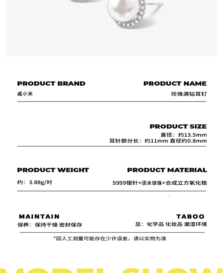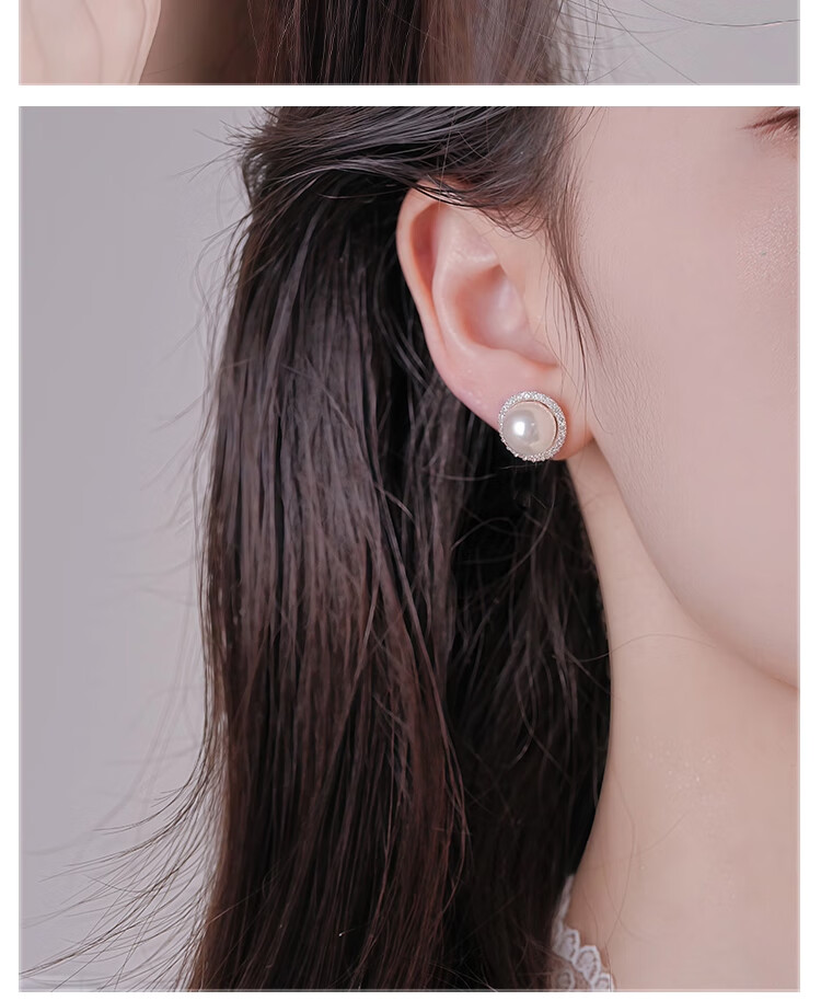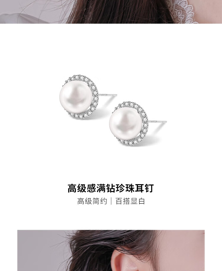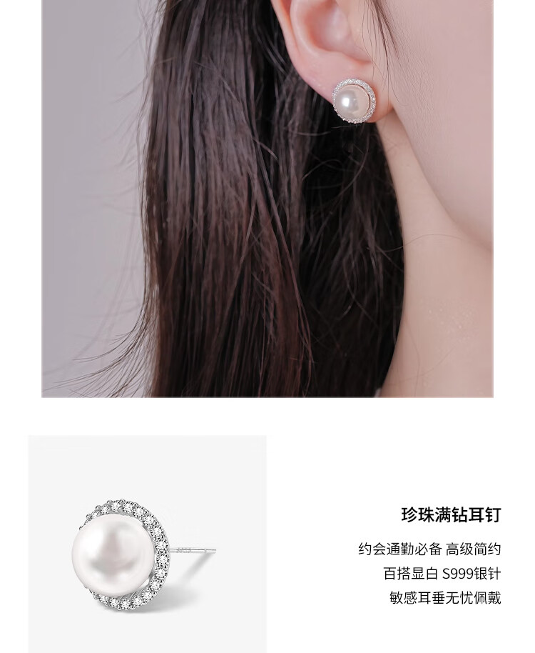 Qi Xiaomi (QI XIAO MI) French retro freshwater pearl earrings for women sterling silver s999 flash diamond earrings 2025 new niche high-end earrings a pair of full diamond pearl earrings S999 pure silver
