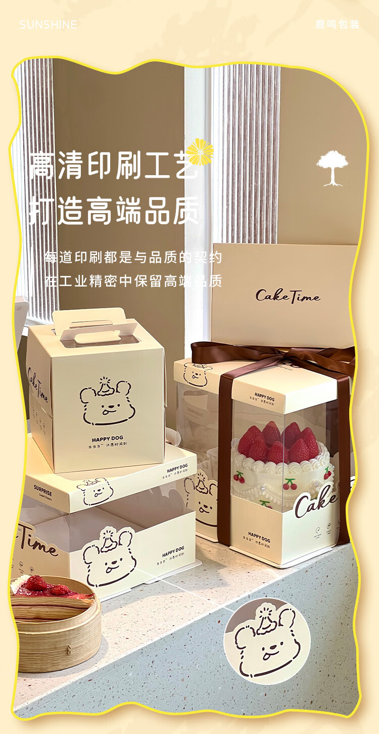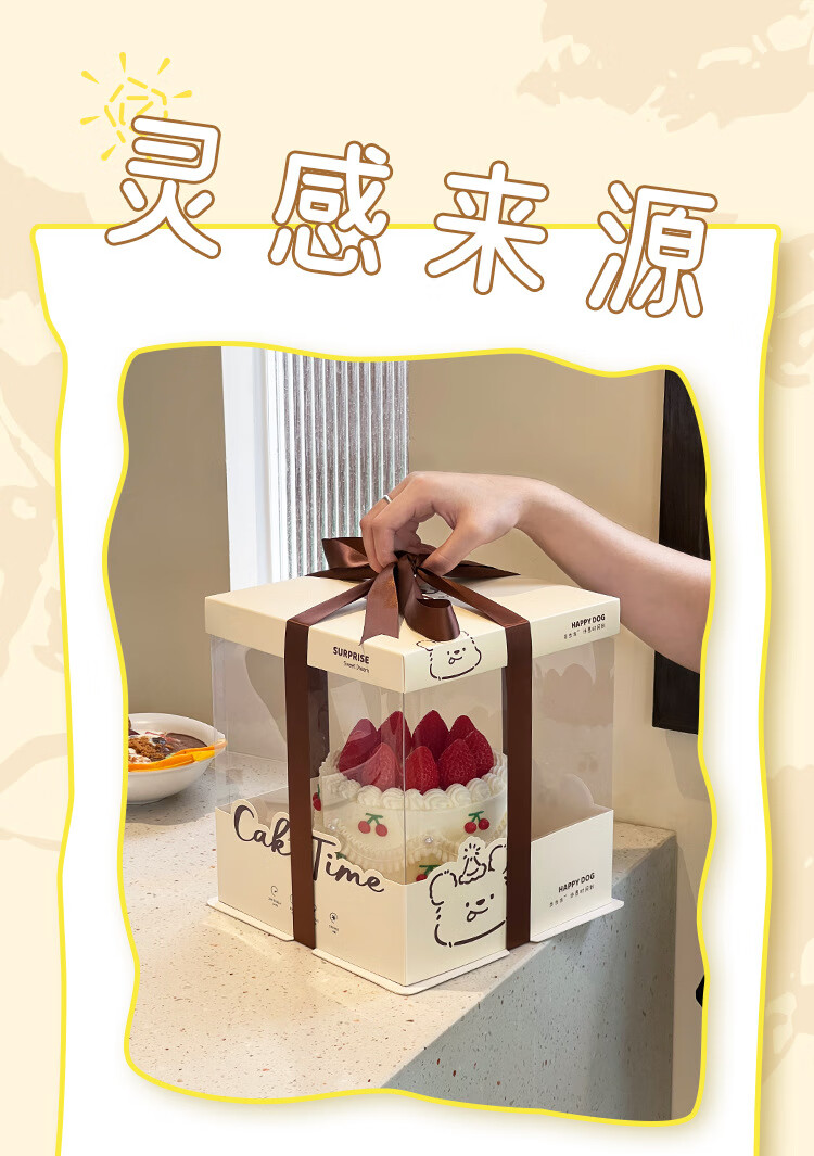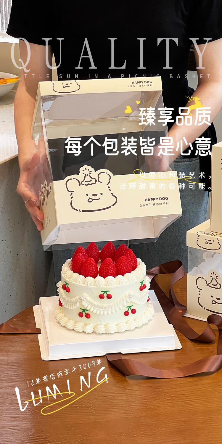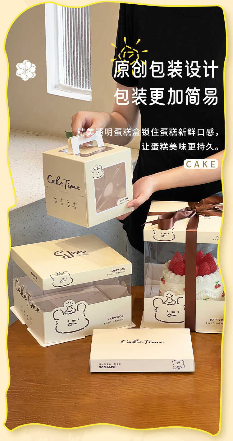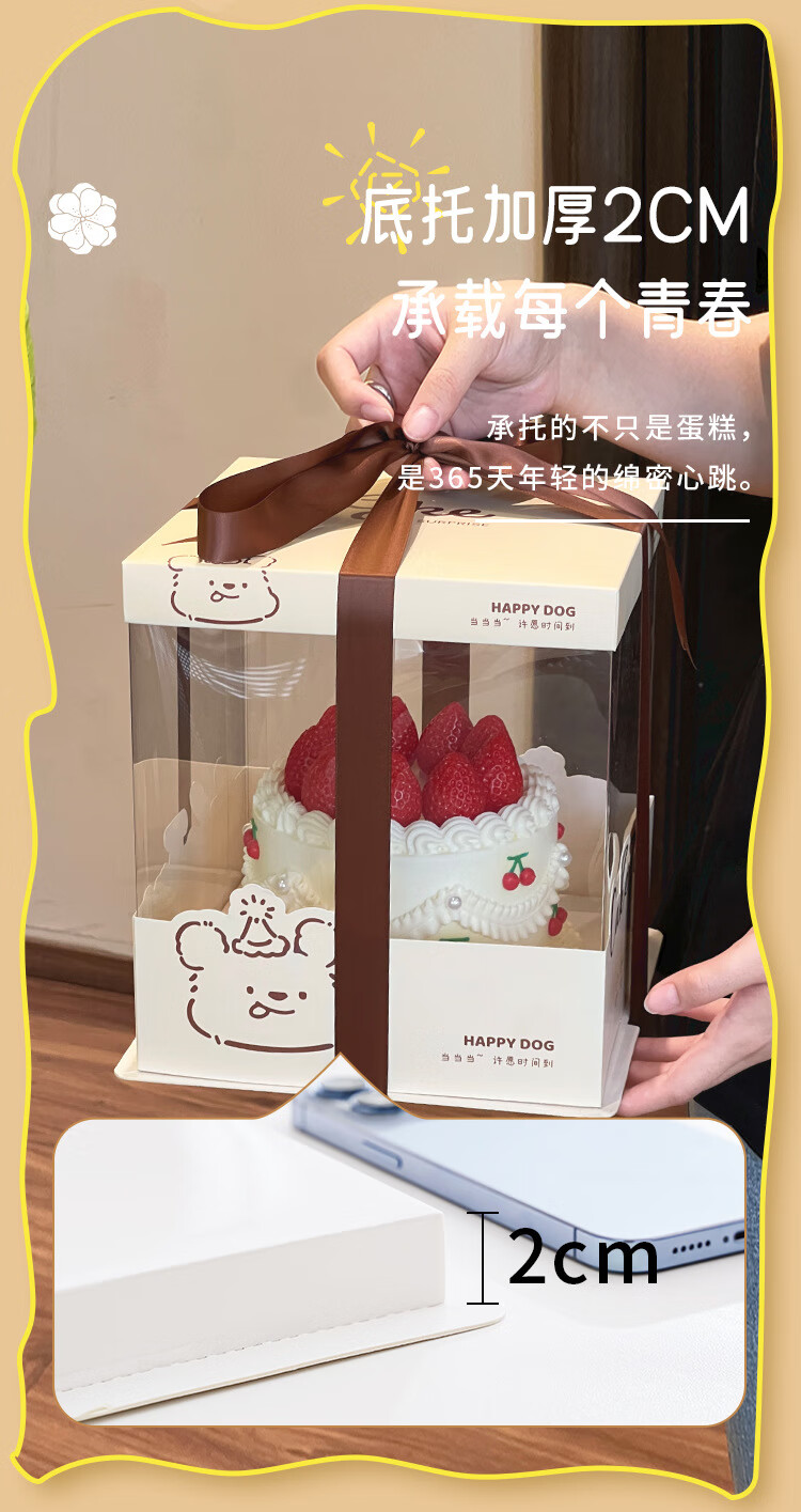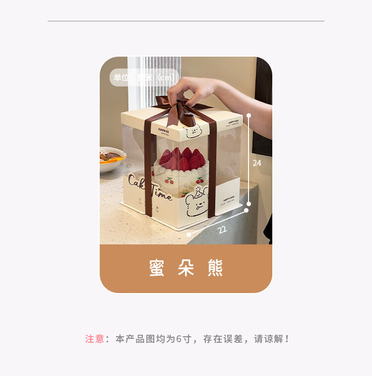 St. Xian transparent birthday cake box packaging box four inches 6 six inches 8 eight inches 10 inches 12 single double layer heightening cute children's honey bear cake box 6 inches single layer 22*22*15 free ribbon