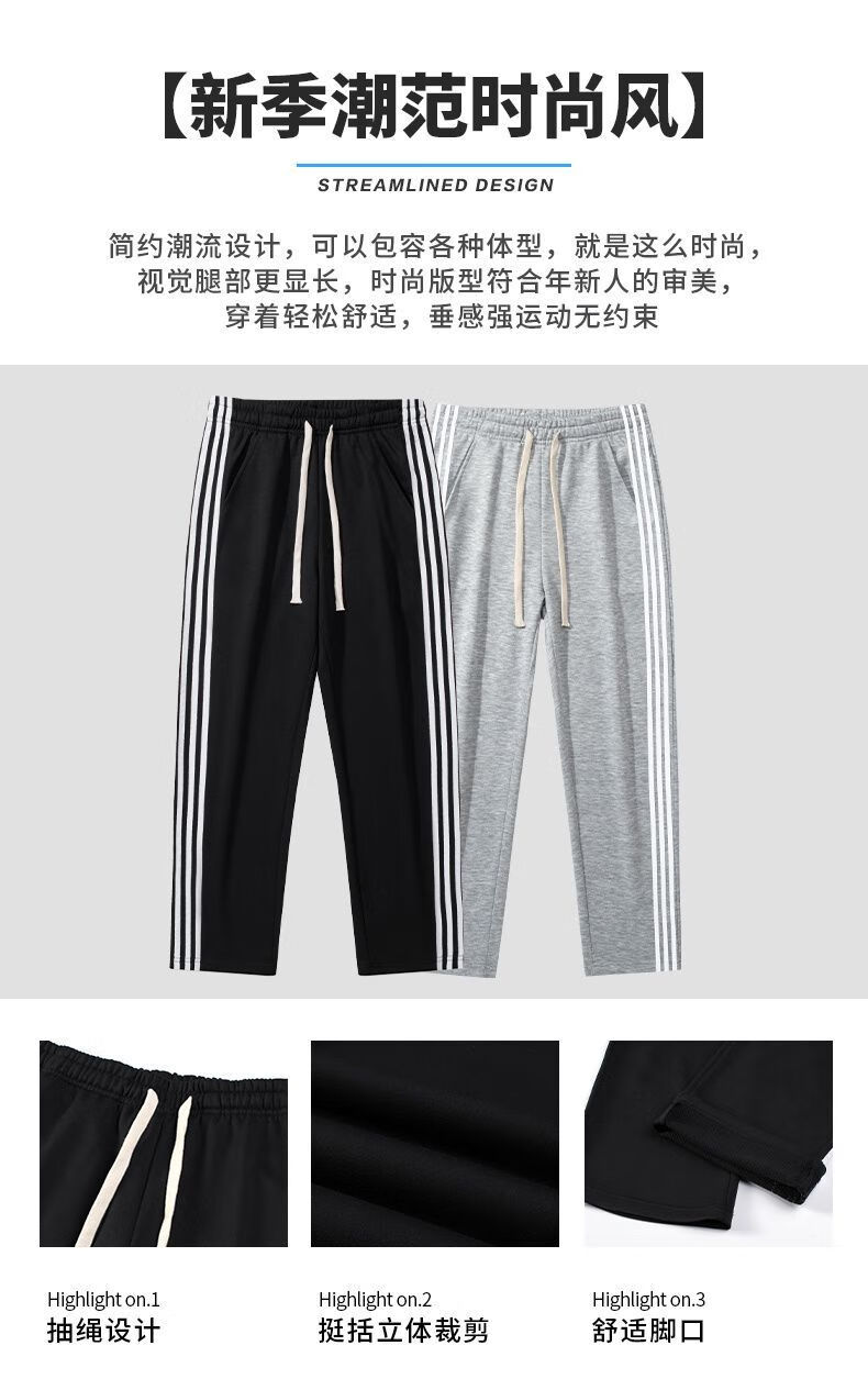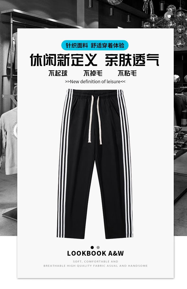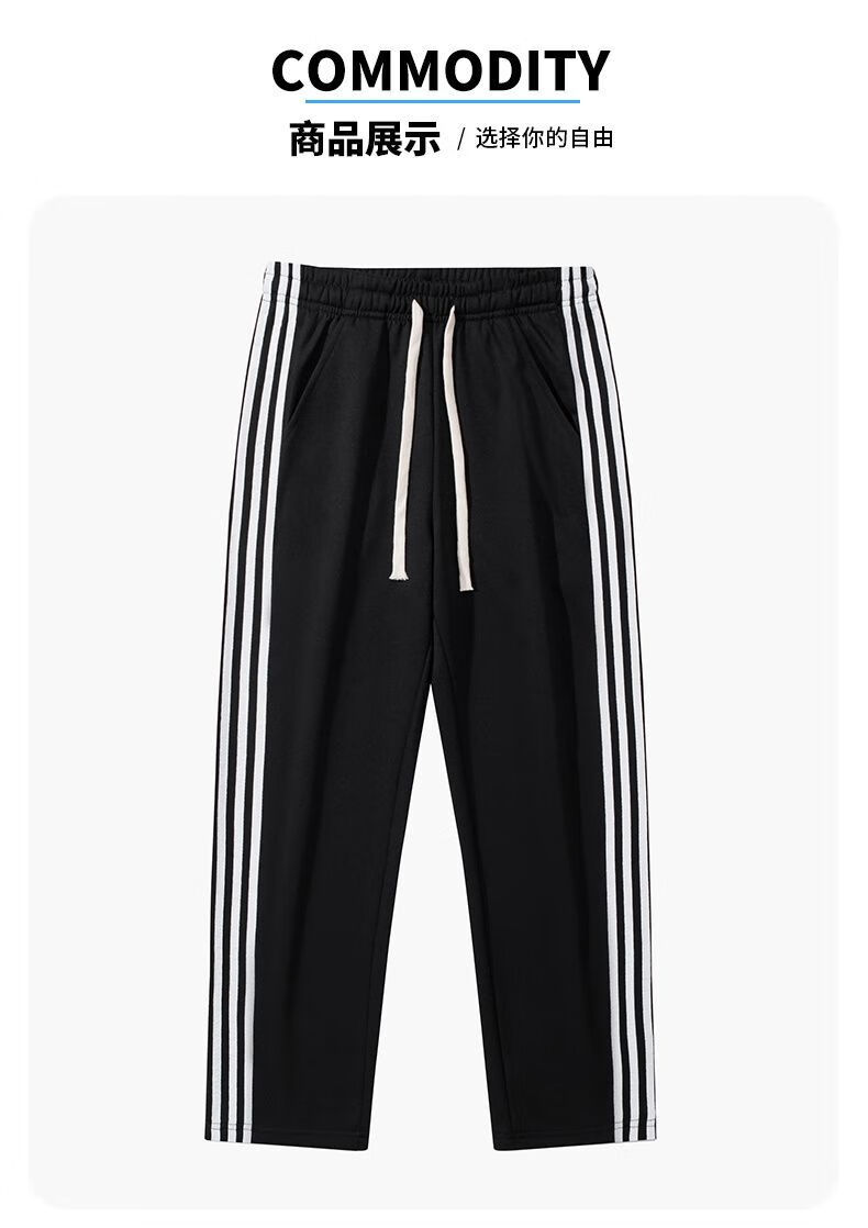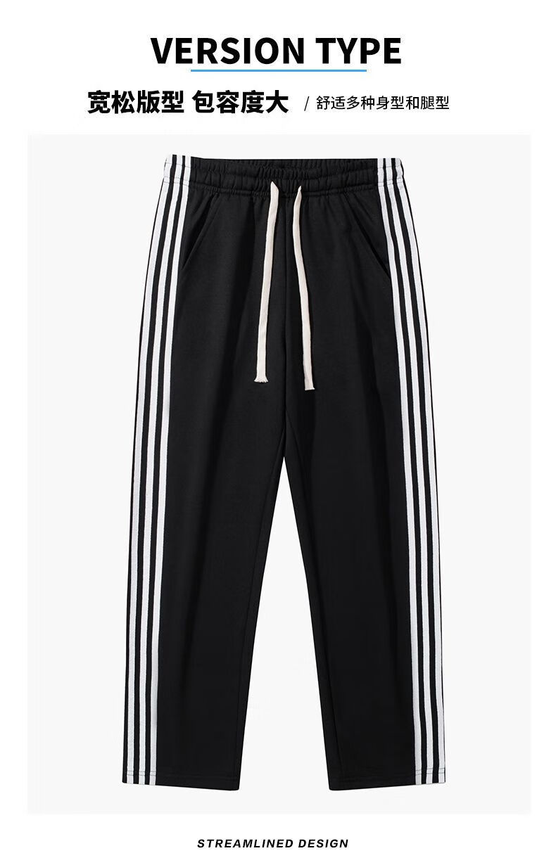 Adidas Clover spring and autumn new sports running pants for men and women, casual straight loose sports trousers, black 2XL 145-165Jin Jin equals 0.5 kg