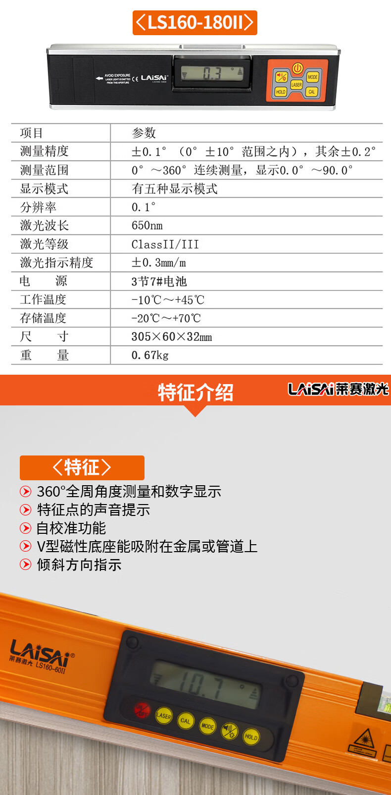Laser Laser LS160-60 digital display slope measurement spirit level with laser point measurement level LS165III