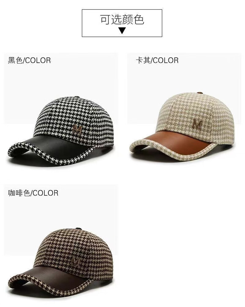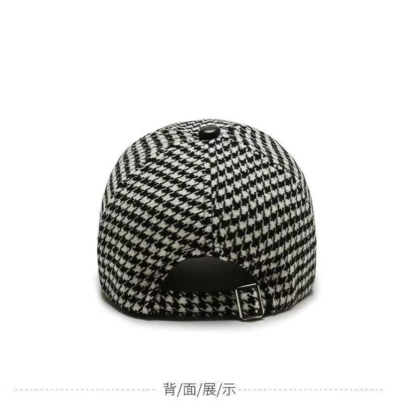 USERJOY autumn and winter woolen fashionable warm British retro houndstooth casual versatile curved eaves duck tongue hat women's baseball cap brown one size adjustable