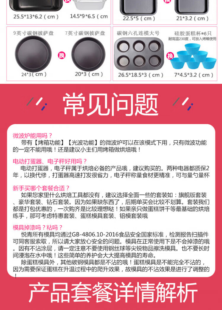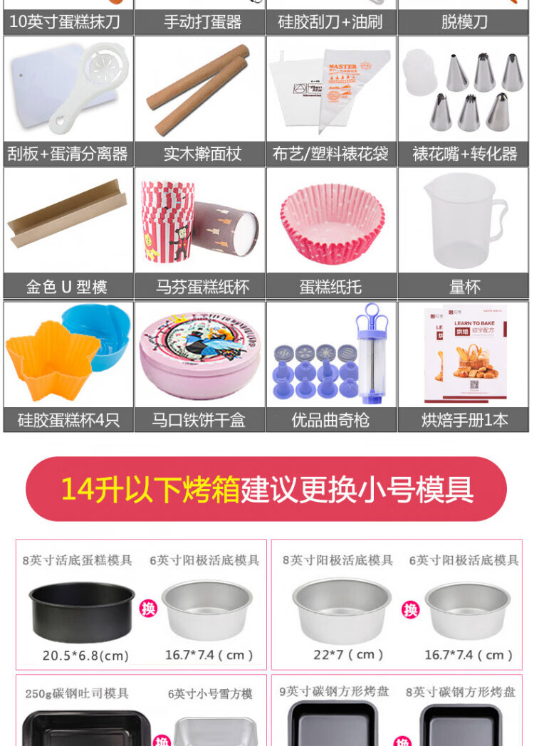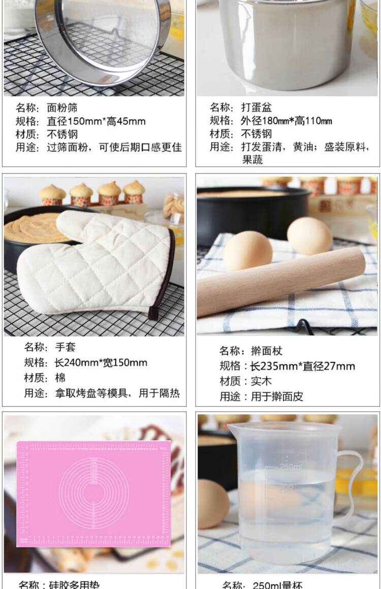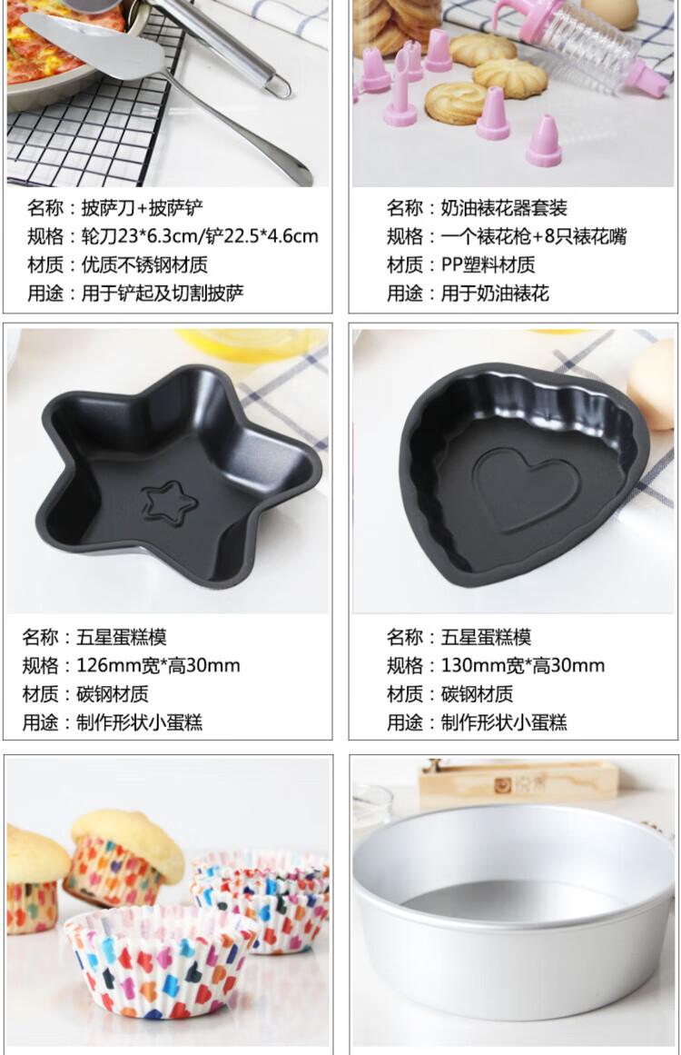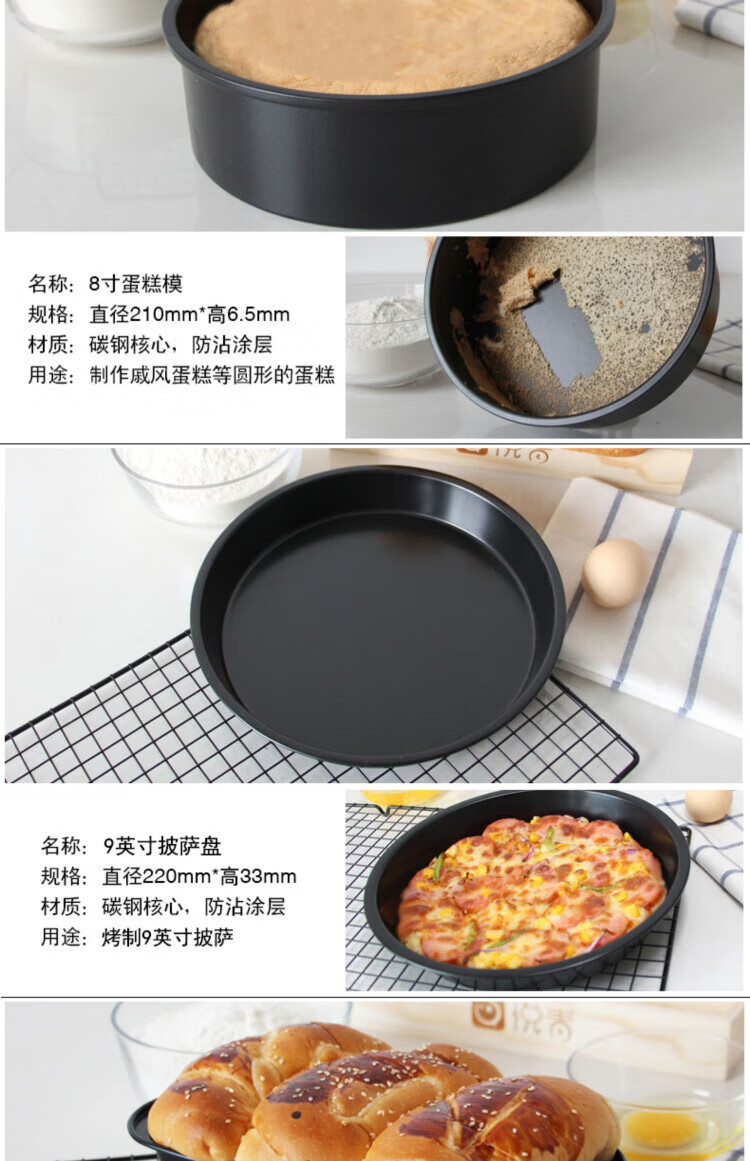 TYZAYR Japanese cake mold, pizza baking pan, oven utensils for novices to make small cakes and biscuits at home, newly upgraded novice six-inch anode set