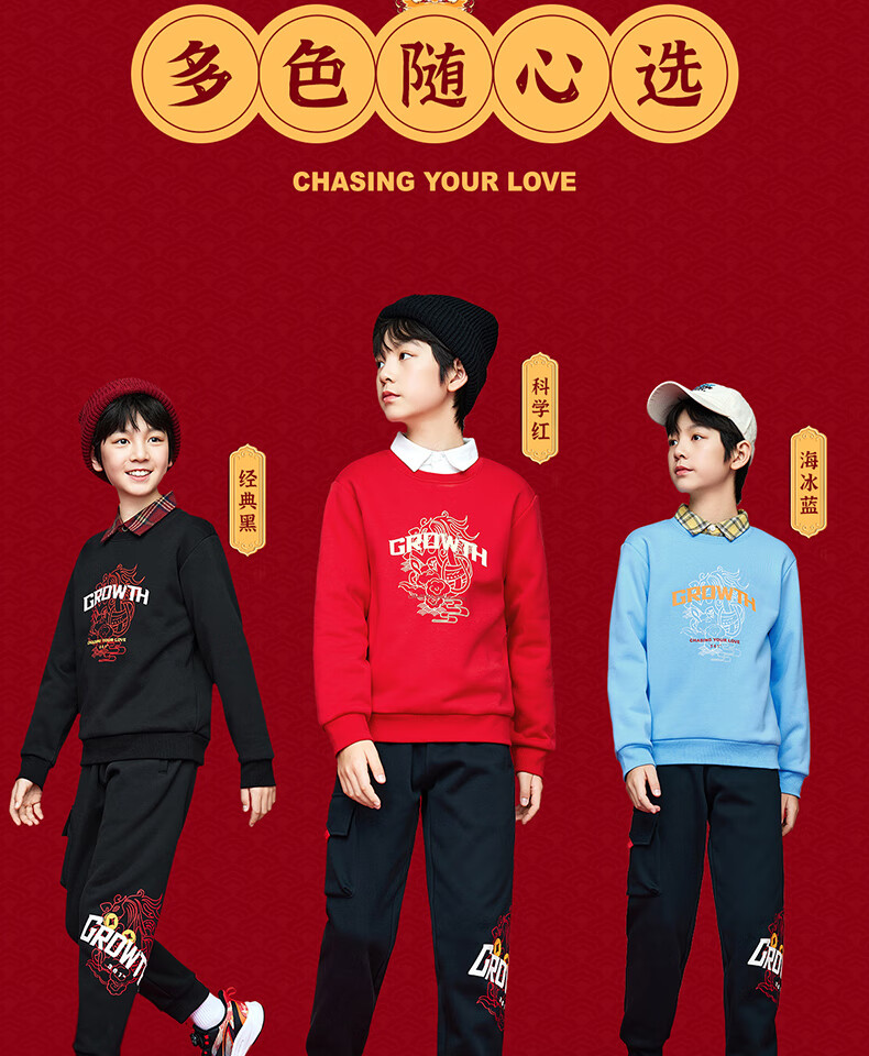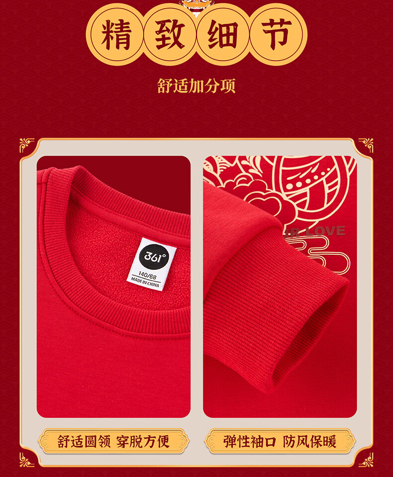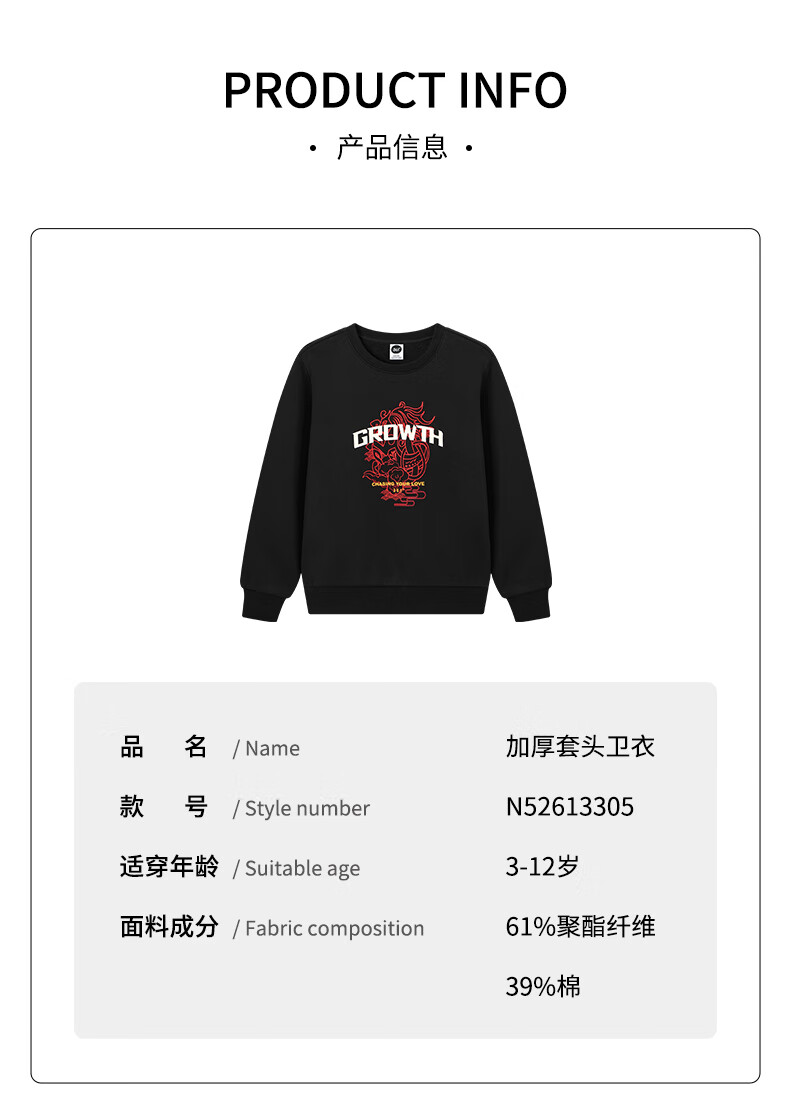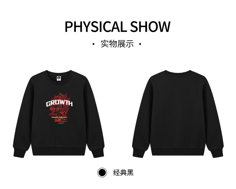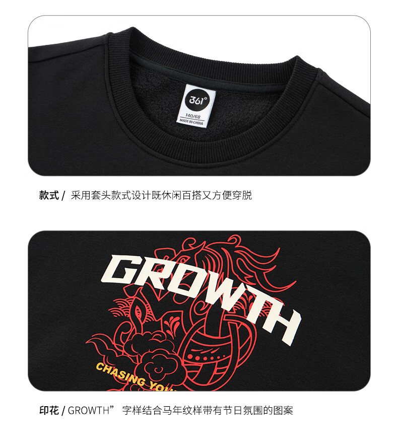361 Children's Clothing Boys New Year's Round Neck Sweater Plus Velvet New Product 2026 Spring and Autumn Children's Year of the Horse Pullover Bottoming Shirt Classic Black 160 cm