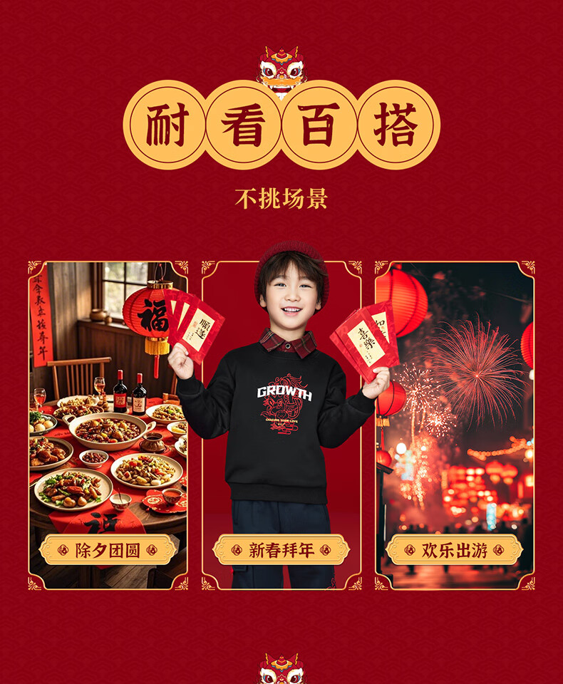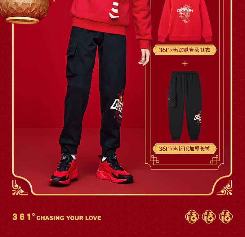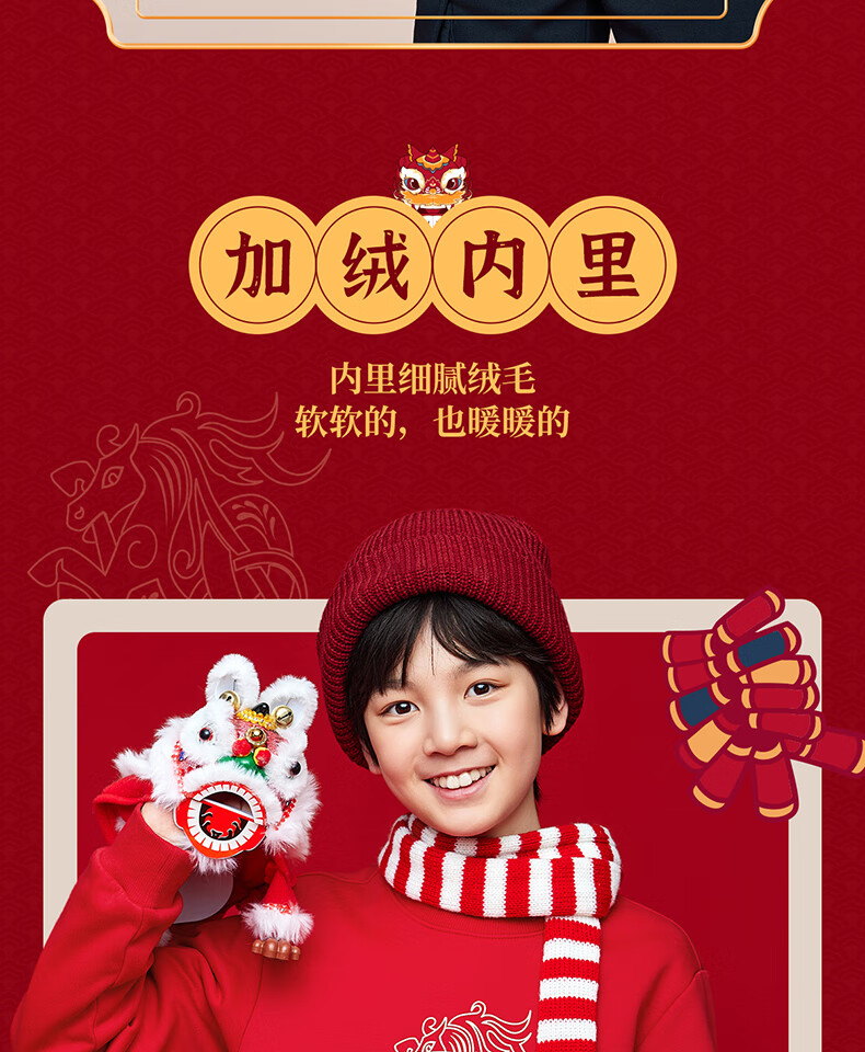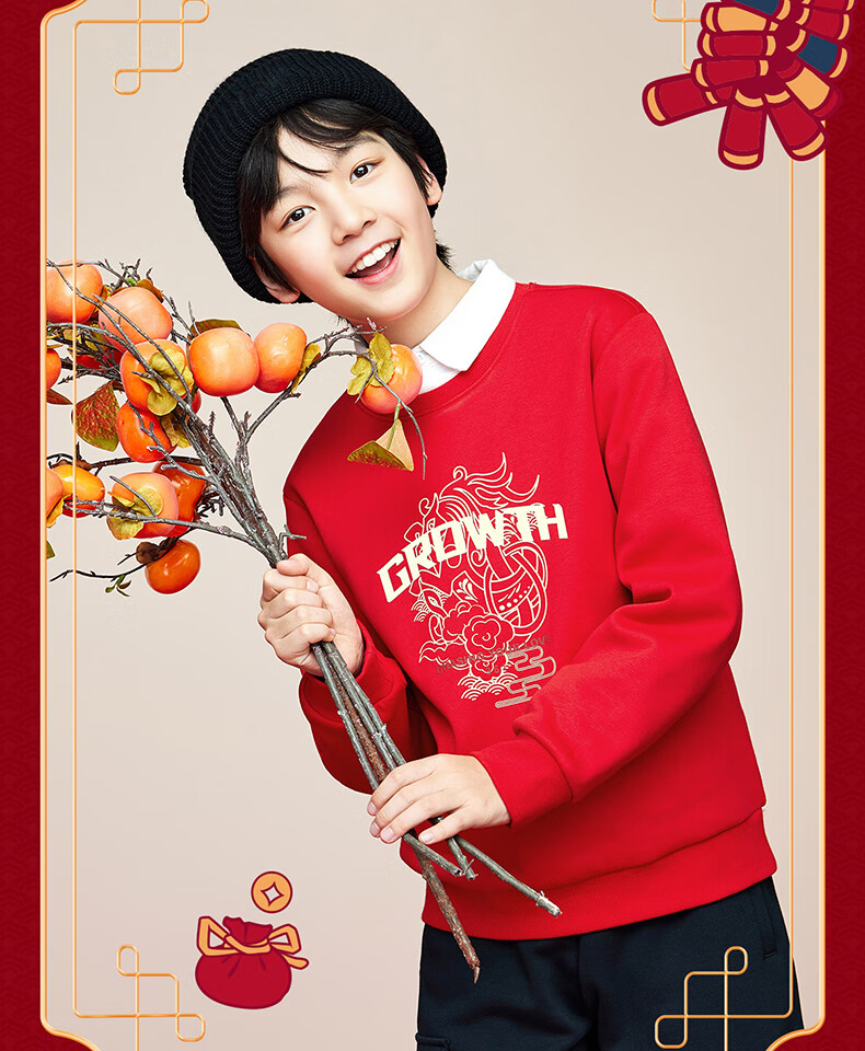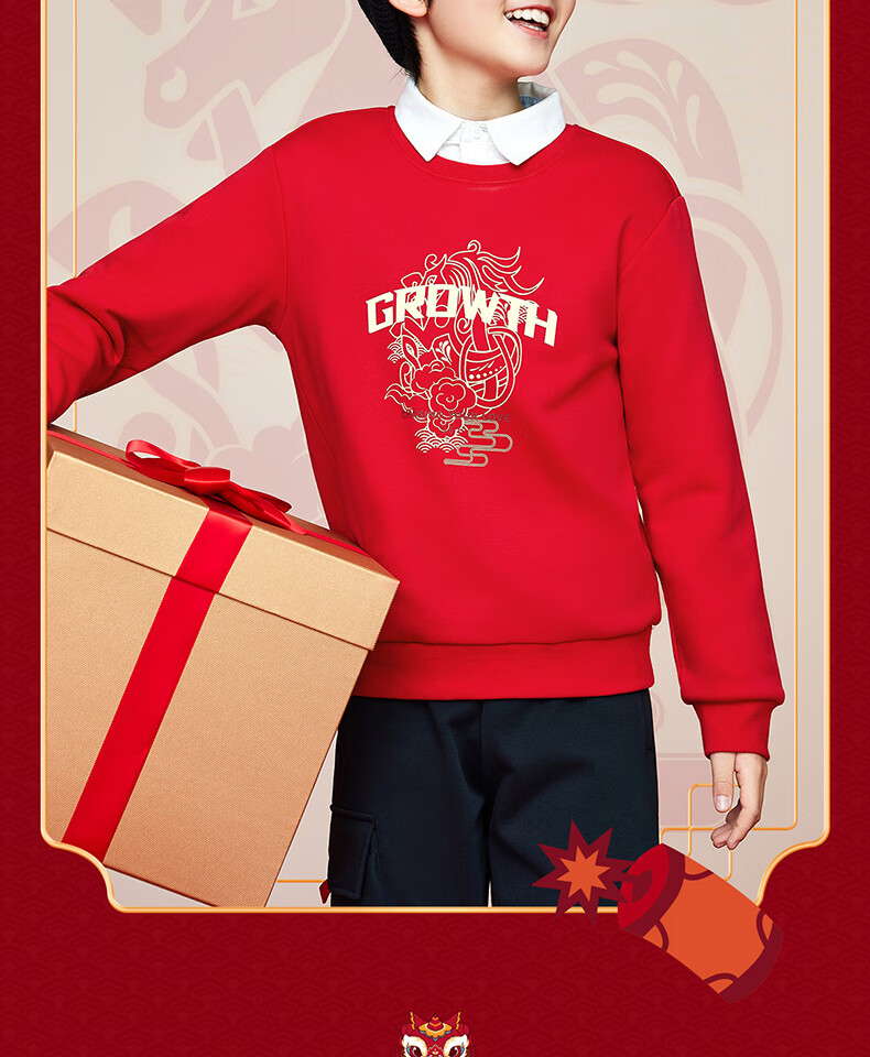 361 Children's Clothing Boys New Year's Round Neck Sweater Plus Velvet New Product 2026 Spring and Autumn Children's Year of the Horse Pullover Bottoming Shirt Classic Black 160 cm