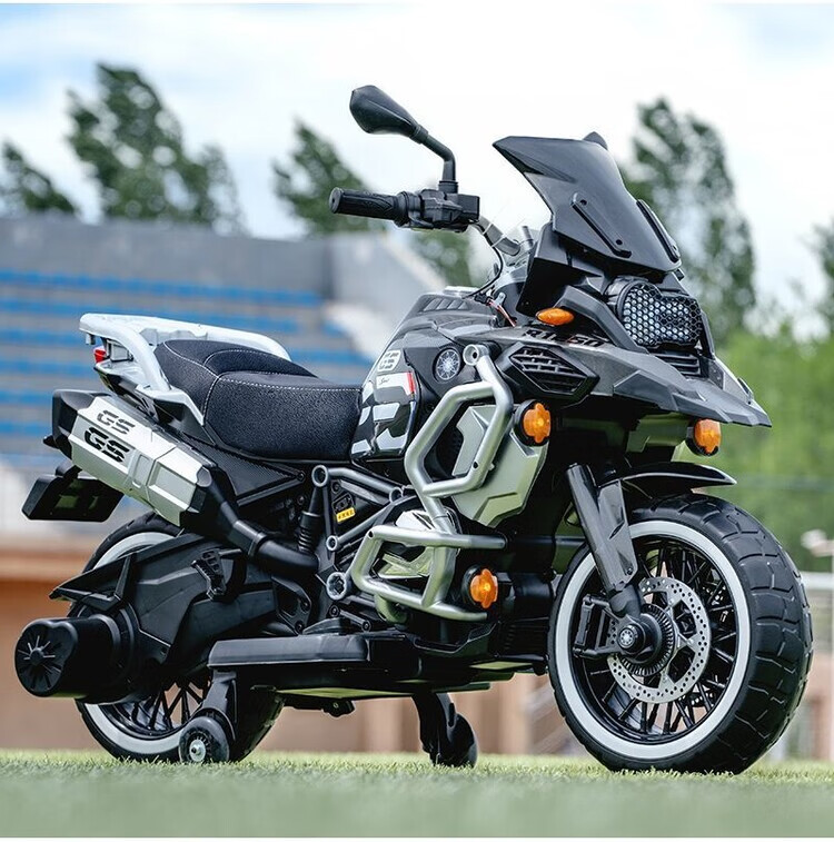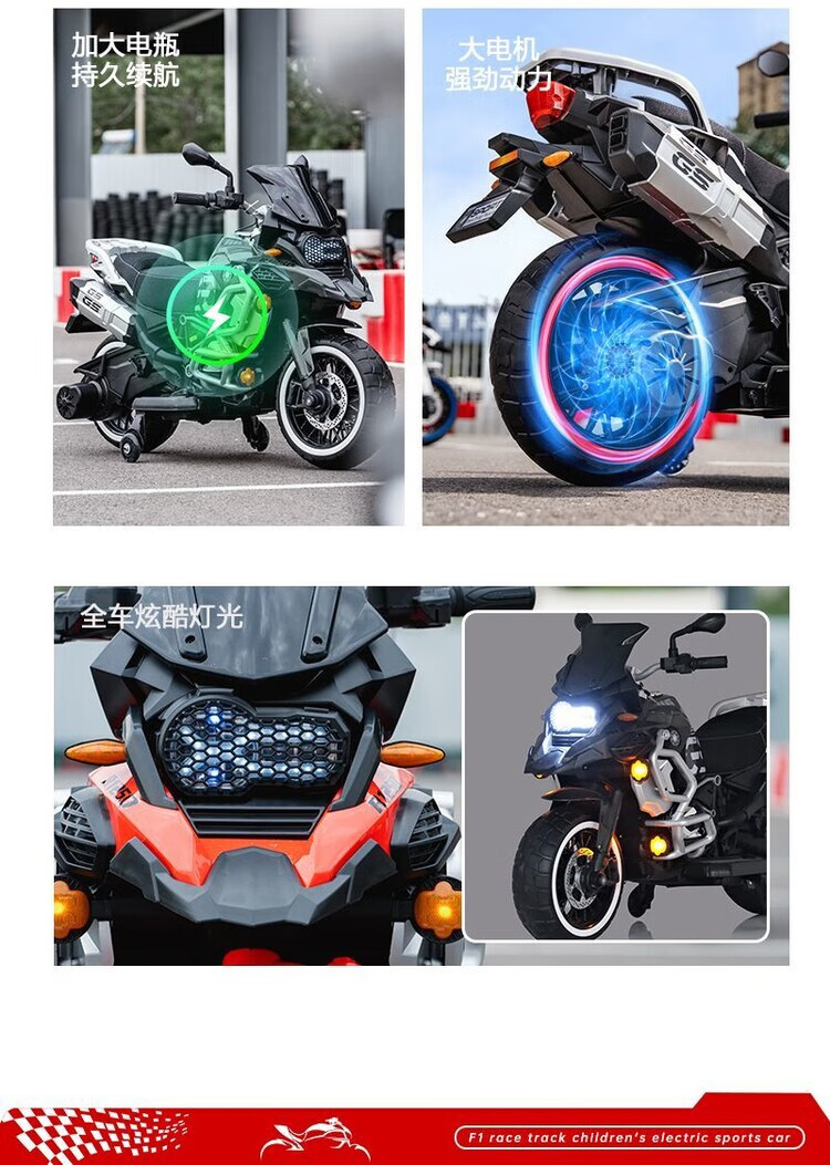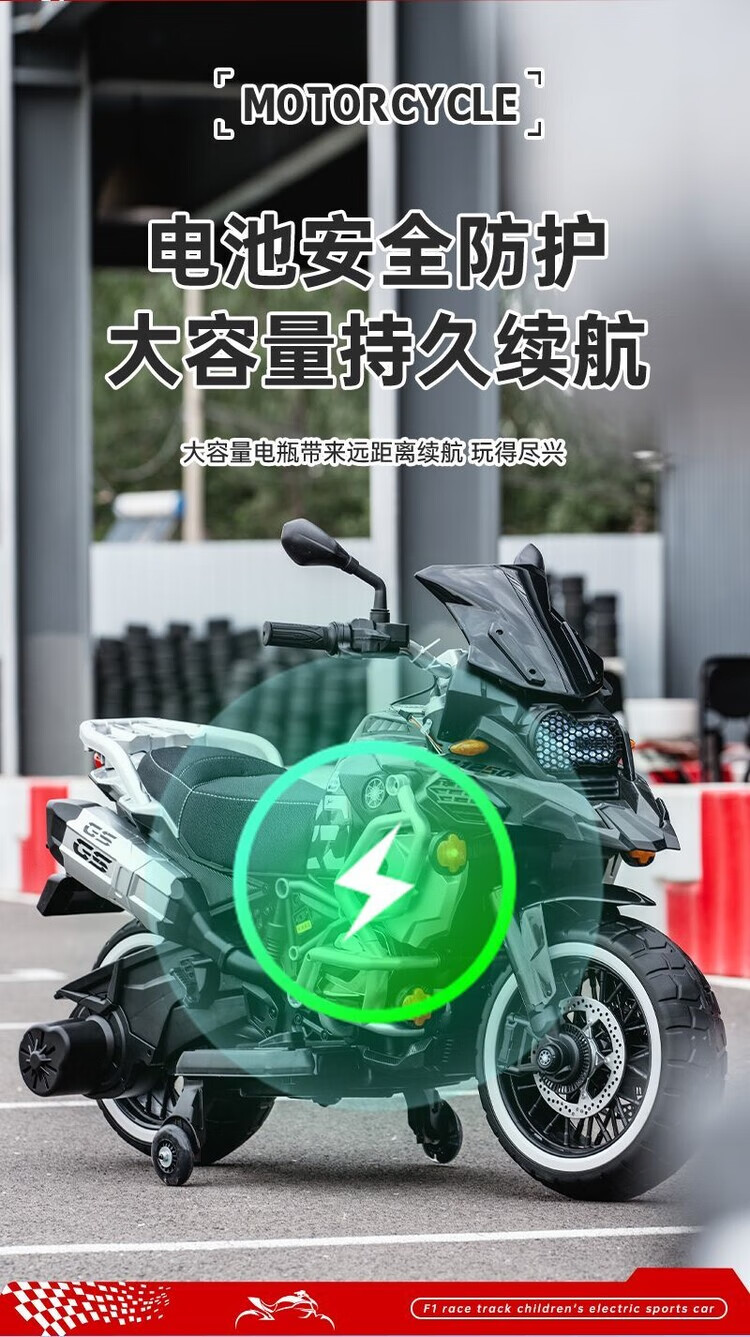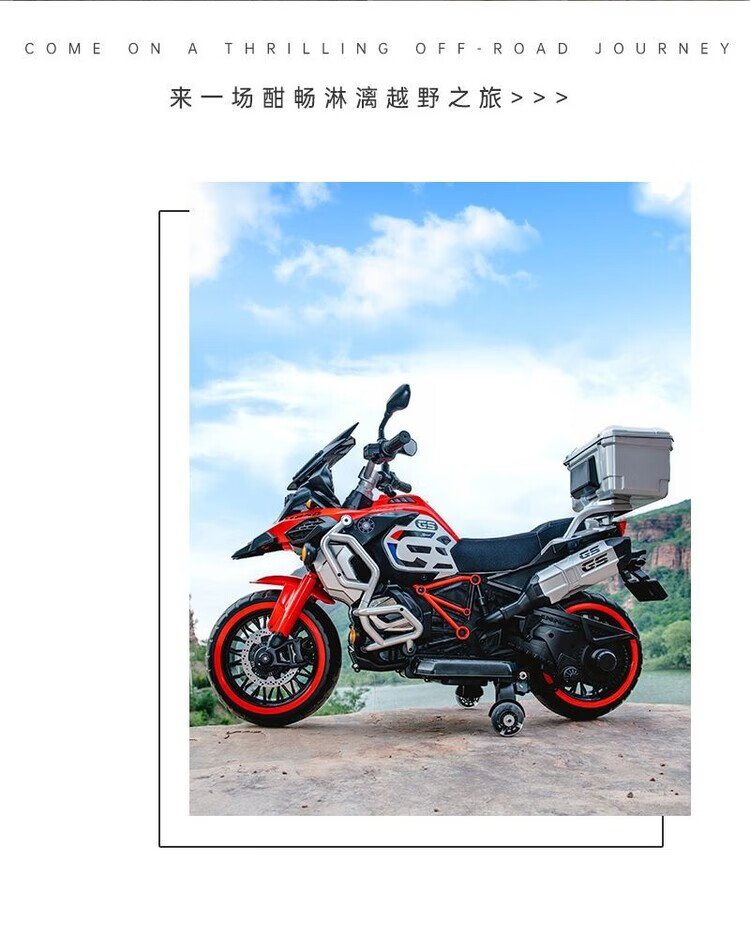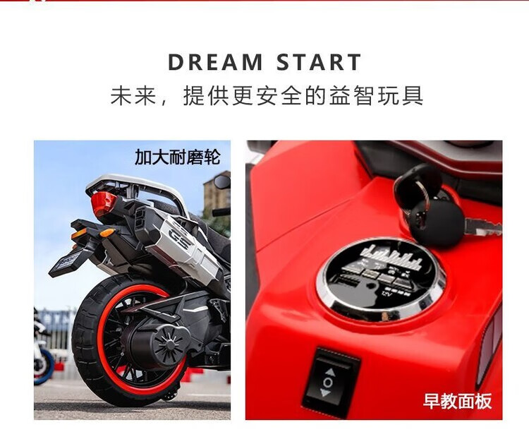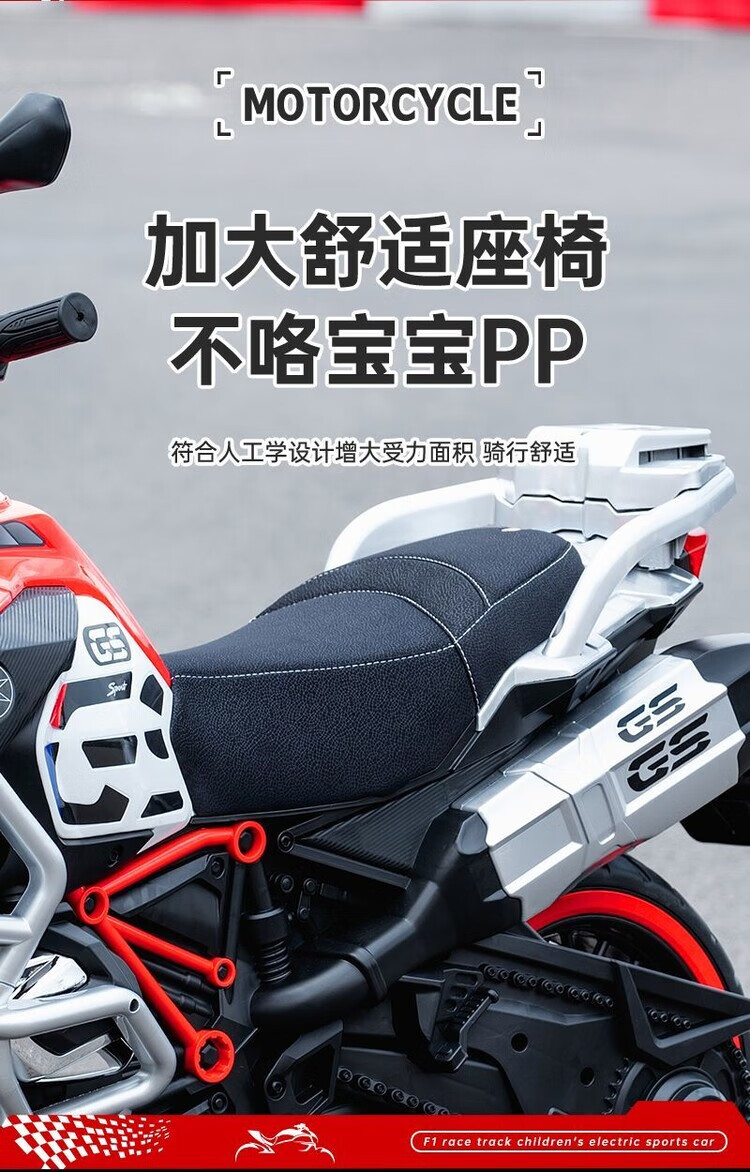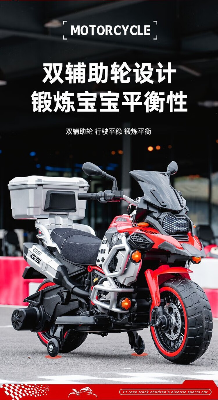 HKDA super large children's electric motorcycle double double seat male and female baby adult and child double rechargeable toy car China red (strong power + auxiliary wheels) 570 motor 12v14 battery + leather seat soft tire