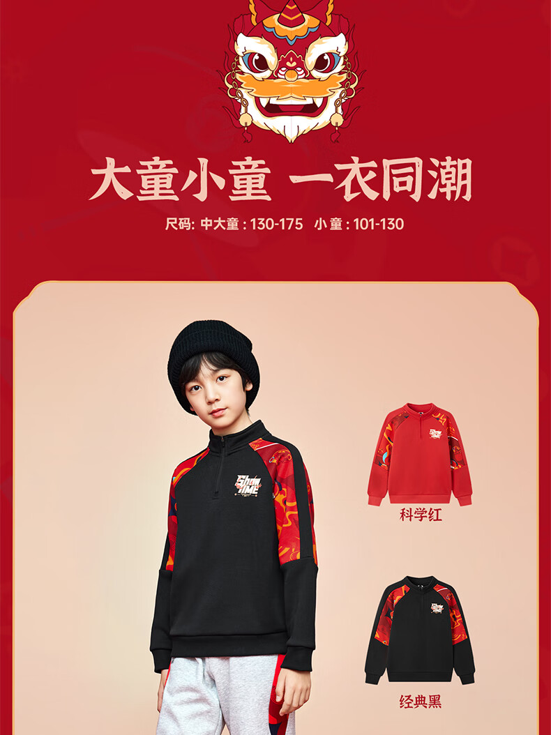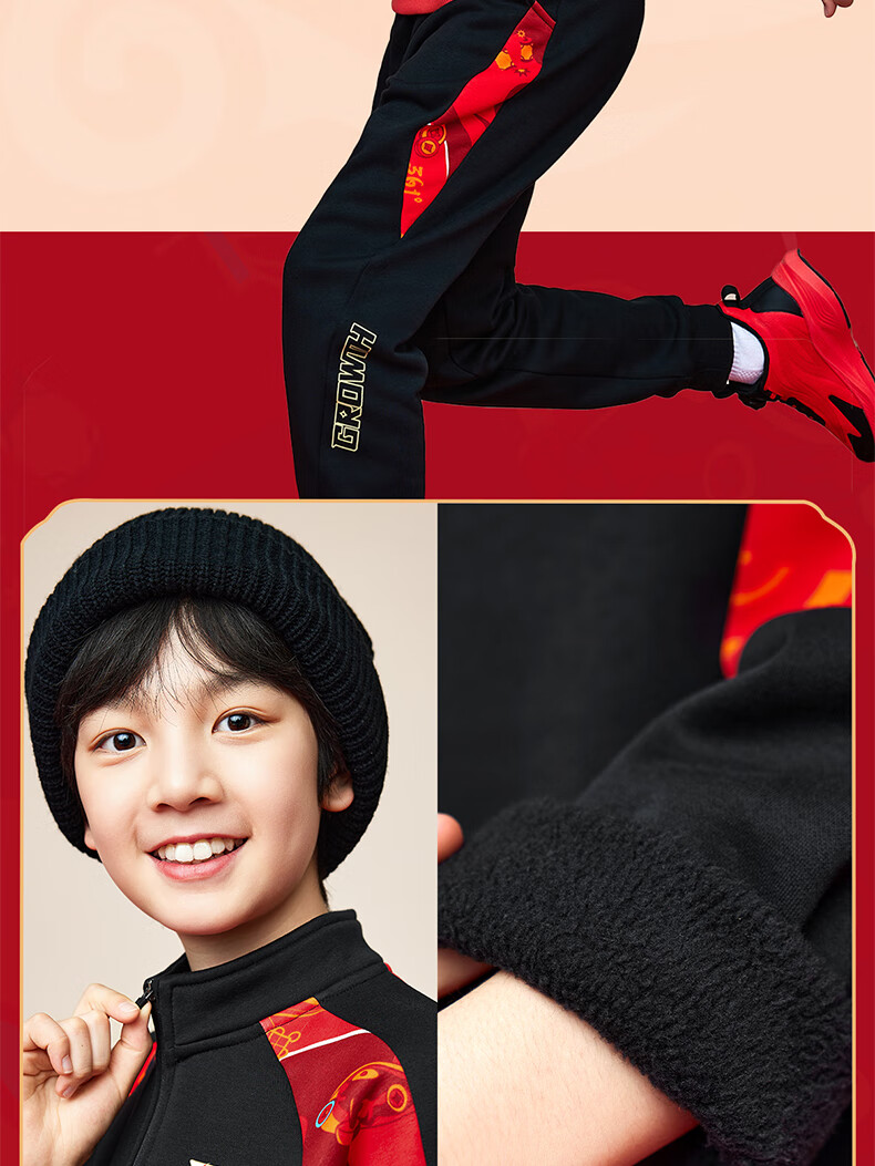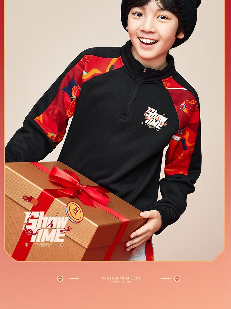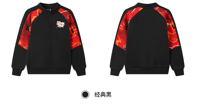 361 Children's Clothing Boys' Fleece Sweater Stand Collar New Product 2026 Spring Autumn New Year Children's Pullover Top Bottoming Shirt Classic Black 140 cm