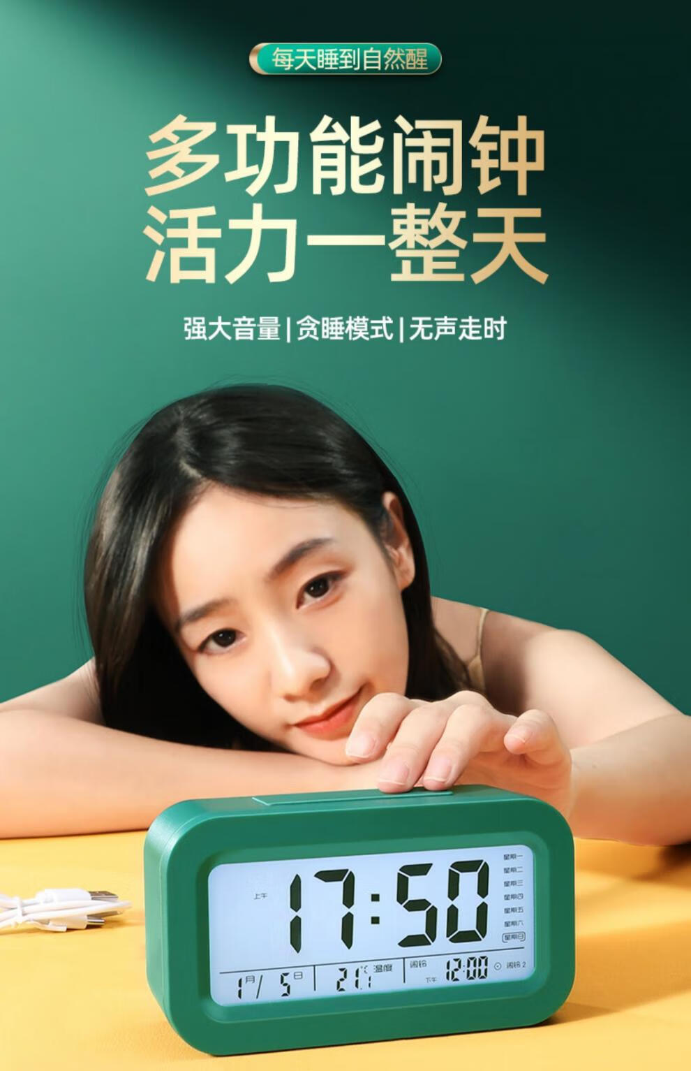 Shijanu Germany 2025 Alarm Clock for Students, Special Wake-up Artifact, Multifunctional Intelligent Electronic Clock for Children, Ivory White, Voice + Weekday + Three Groups of Alarms, Rechargeable Luminous Mode