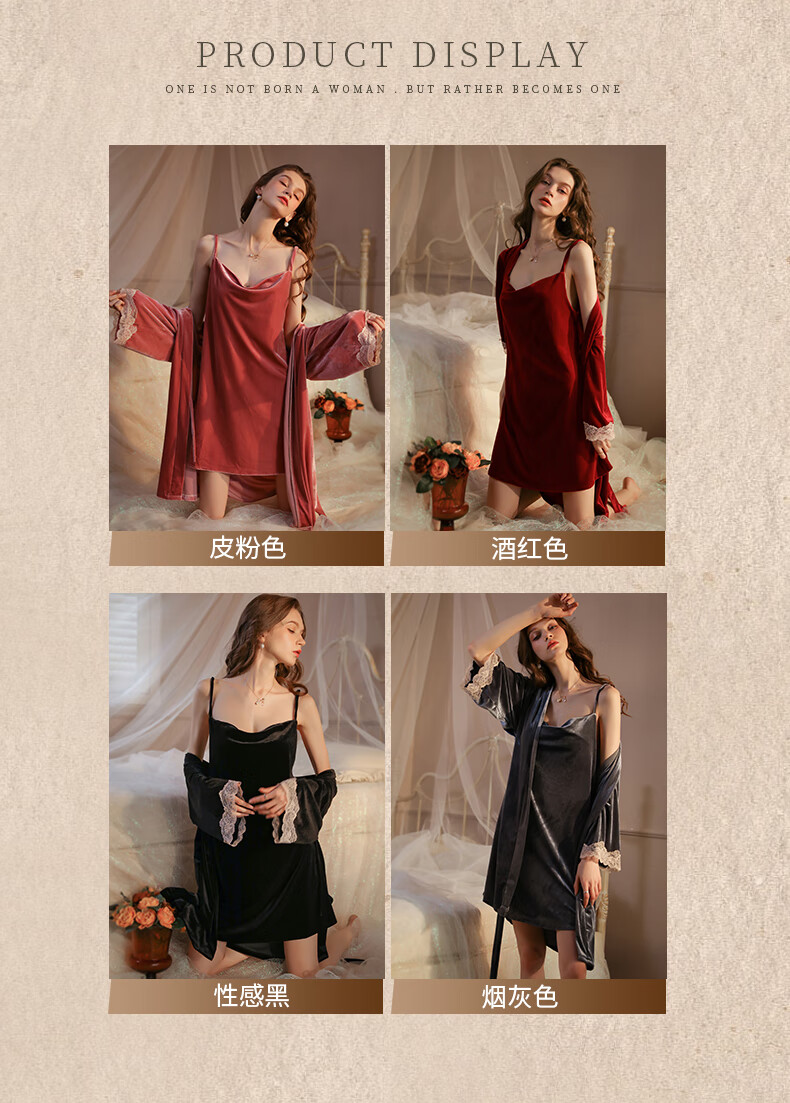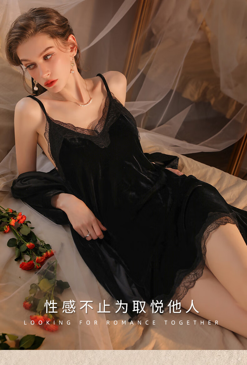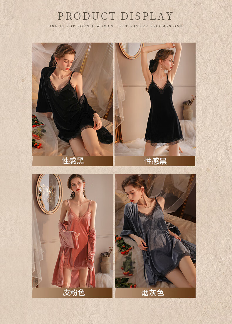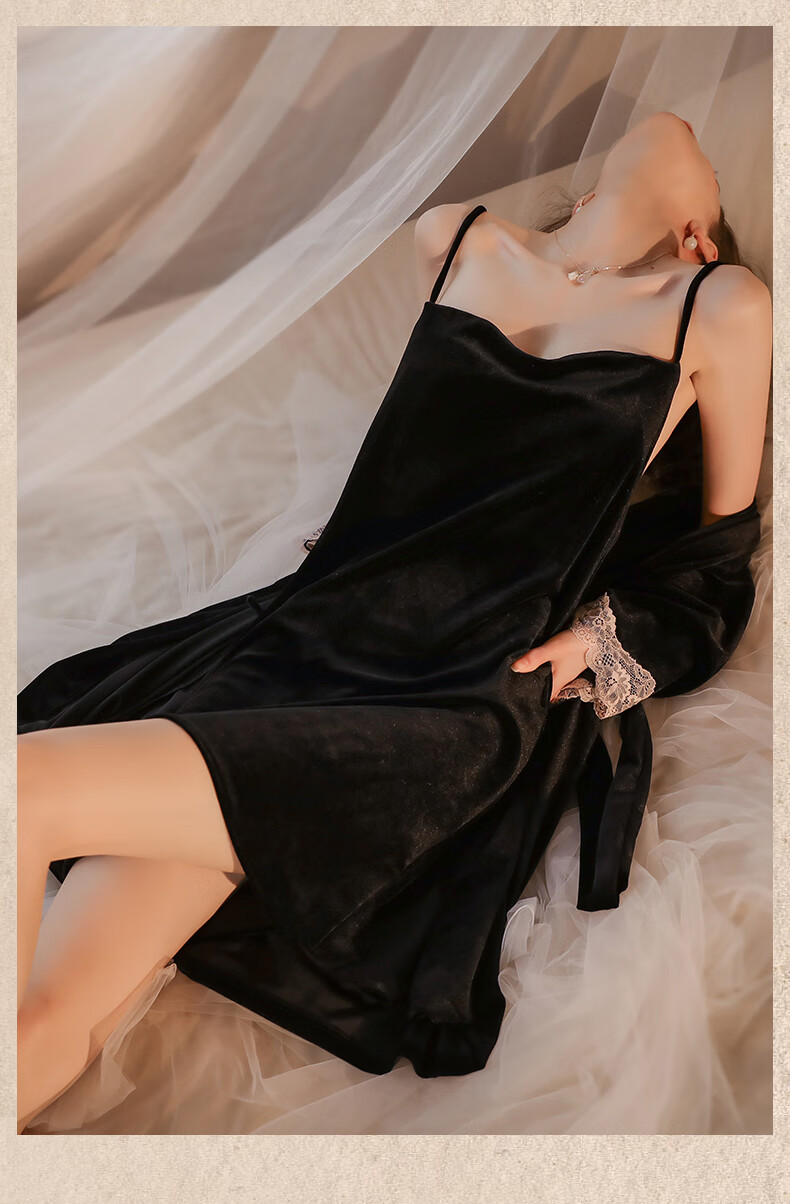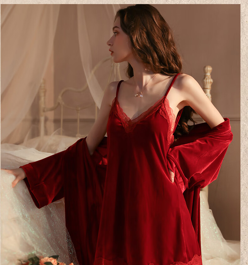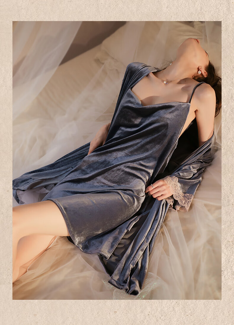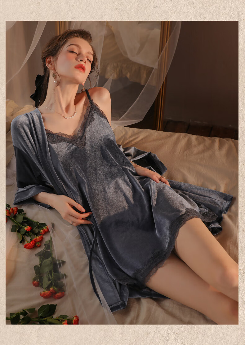 Yalu pajamas for women spring and autumn gold velvet sexy nightgown two-piece suit 2025 new red wedding bride dressing gown winter XE6606 smoke gray #gold velvet M