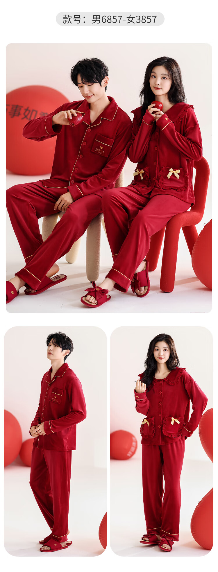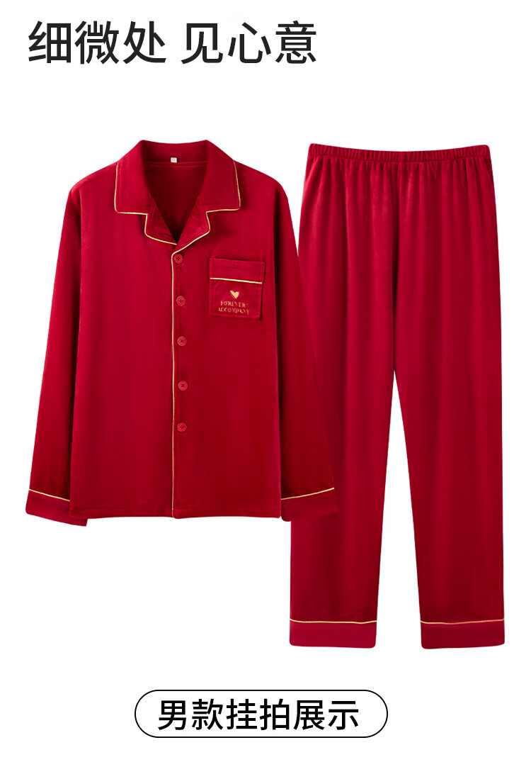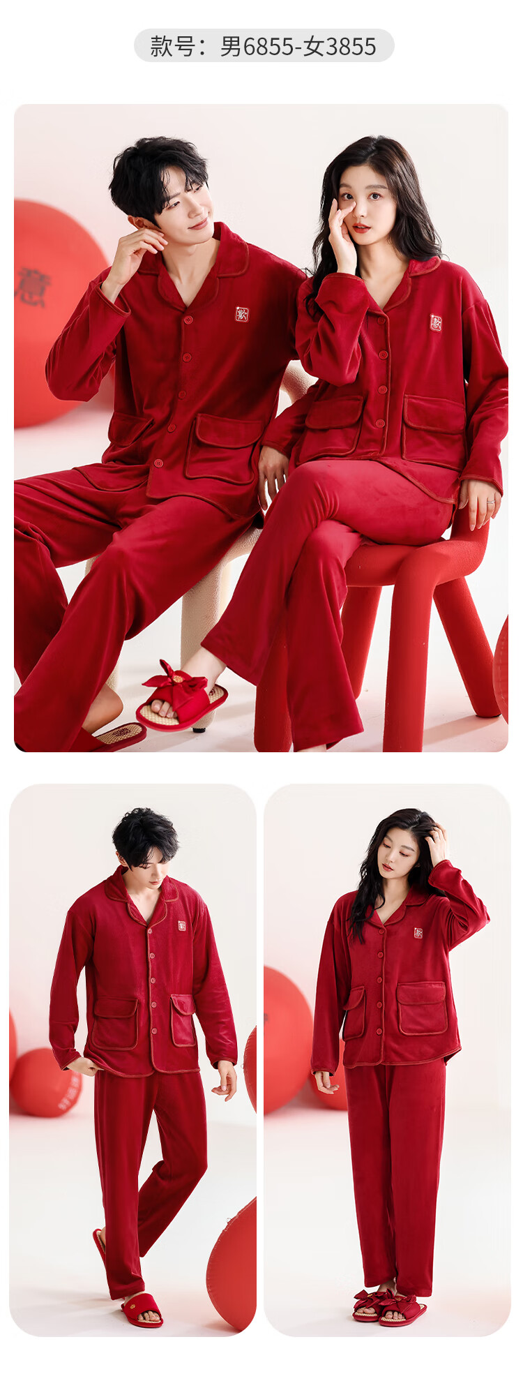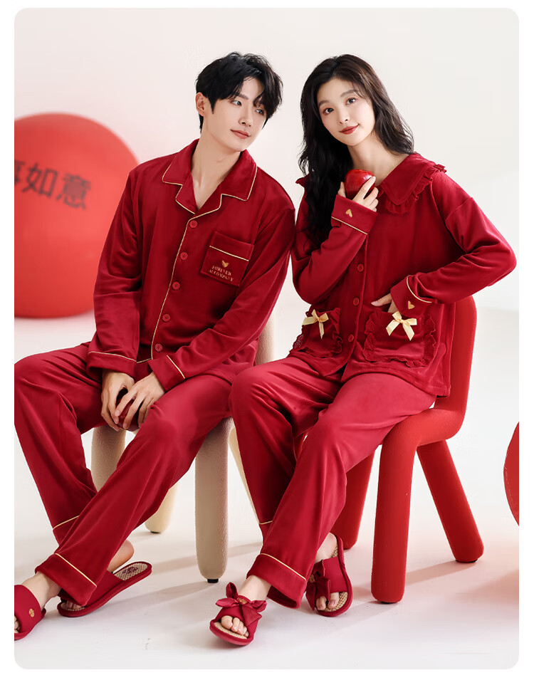 Yalu Couple Pajamas Red Suit Newlywed Men and Women Married in the Year of the Zodiac in Winter Island Velvet Plus Velvet Autumn and Winter Small People
