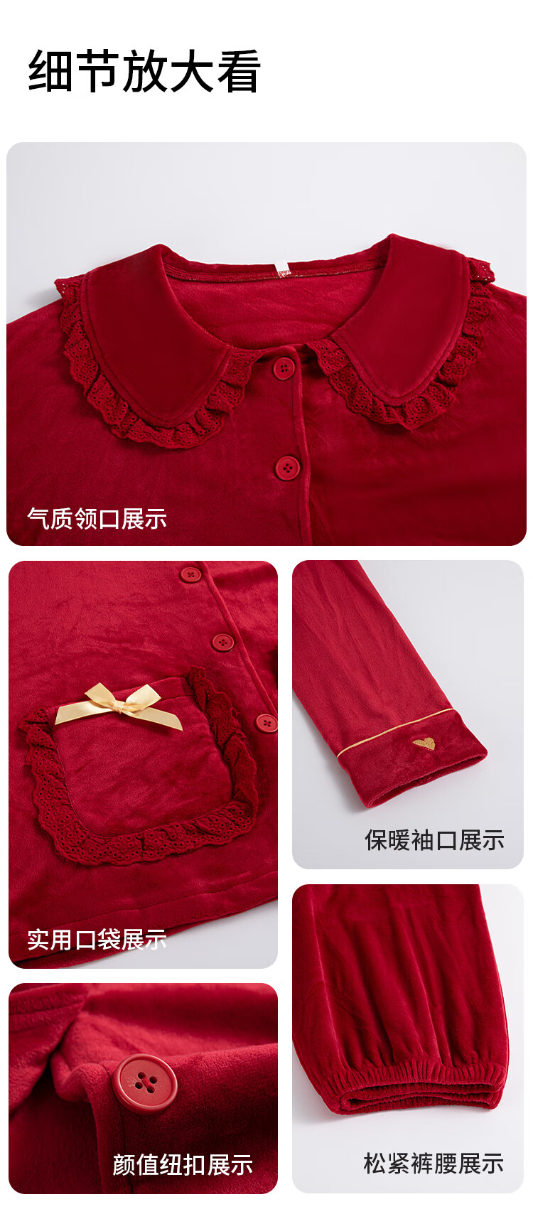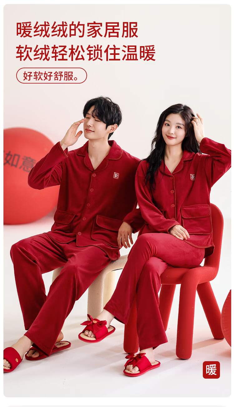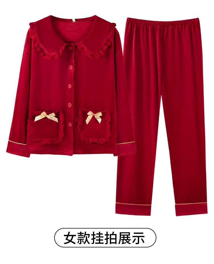 Yalu Couple Pajamas Red Suit Newlywed Men and Women Married in the Year of the Zodiac in Winter Island Velvet Plus Velvet Autumn and Winter Small People