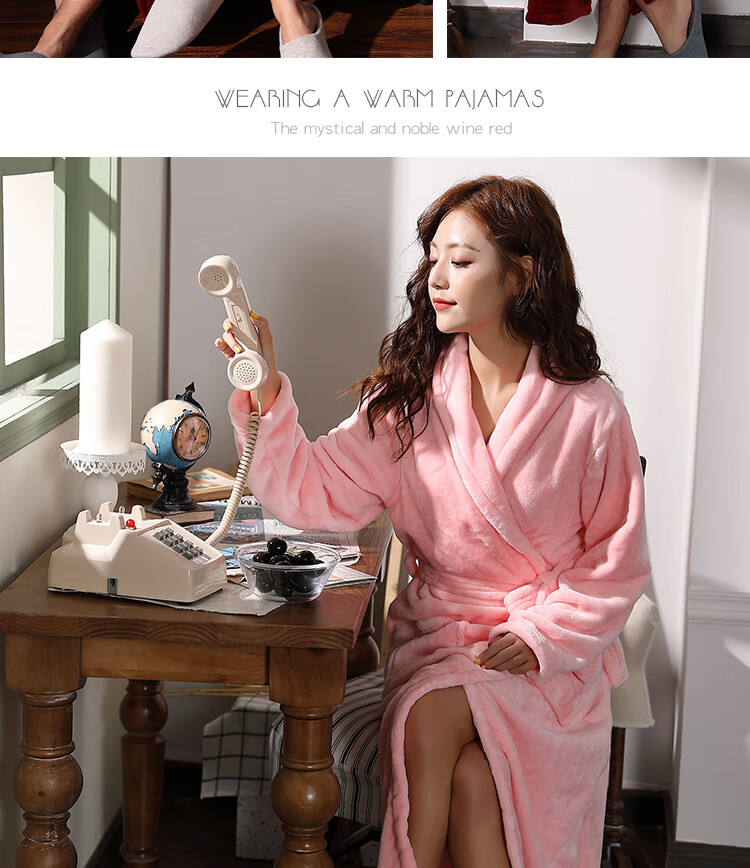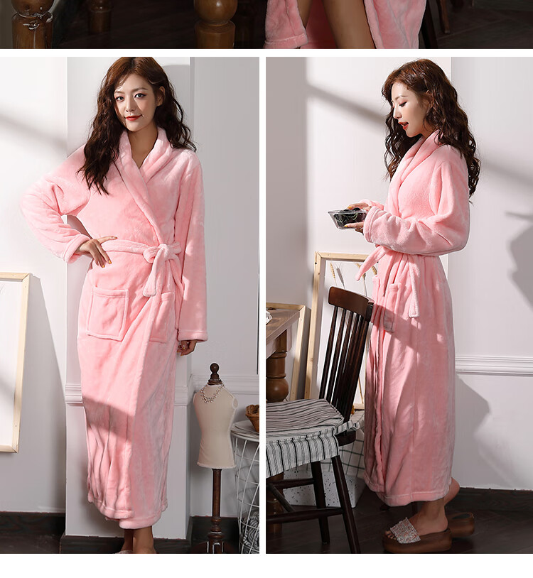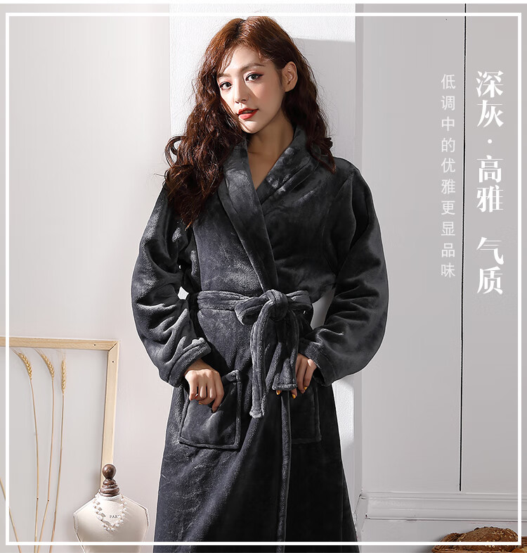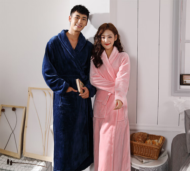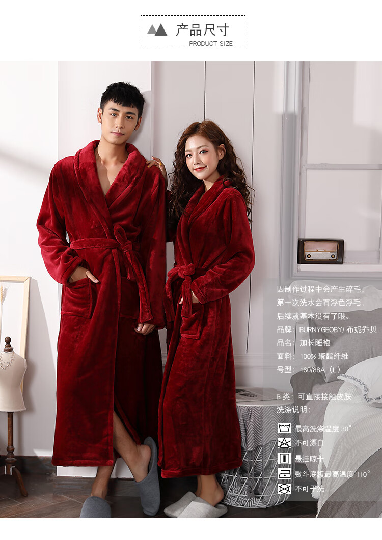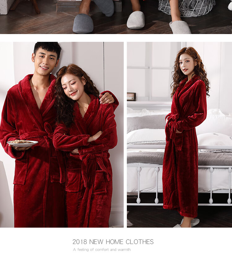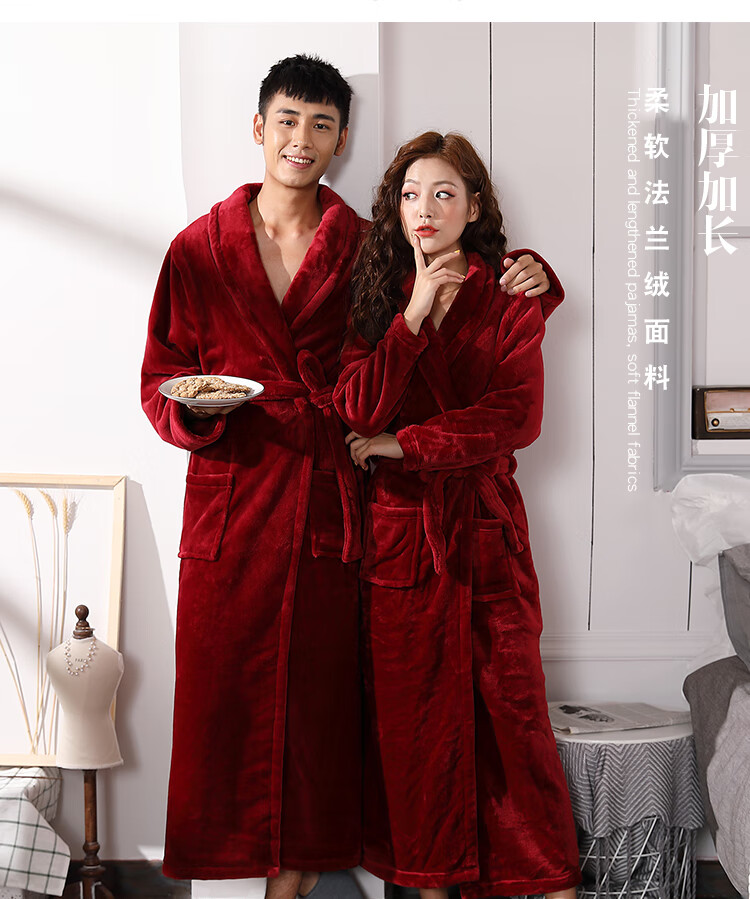 Yalu Couple Nightgown Women's Autumn and Winter Long Thick Coral Velvet Red Bridal Knot Wedding Dressing Robe Men's Bathrobe Pajamas Burgundy Female 2XL 180-220 Jin Jin is equal to 0.5 kg