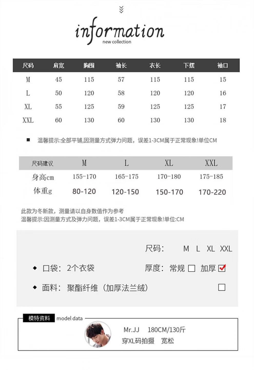 China (cm) 165 / 88-90 170 / 96-98 175 / 108-110 180 / 118-122 185 / 126-130