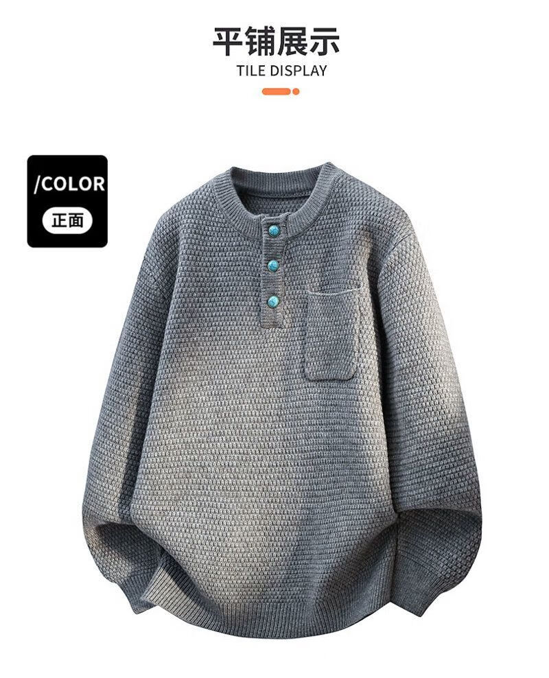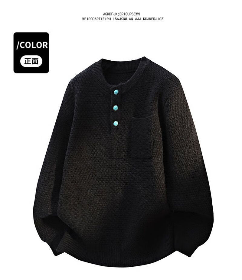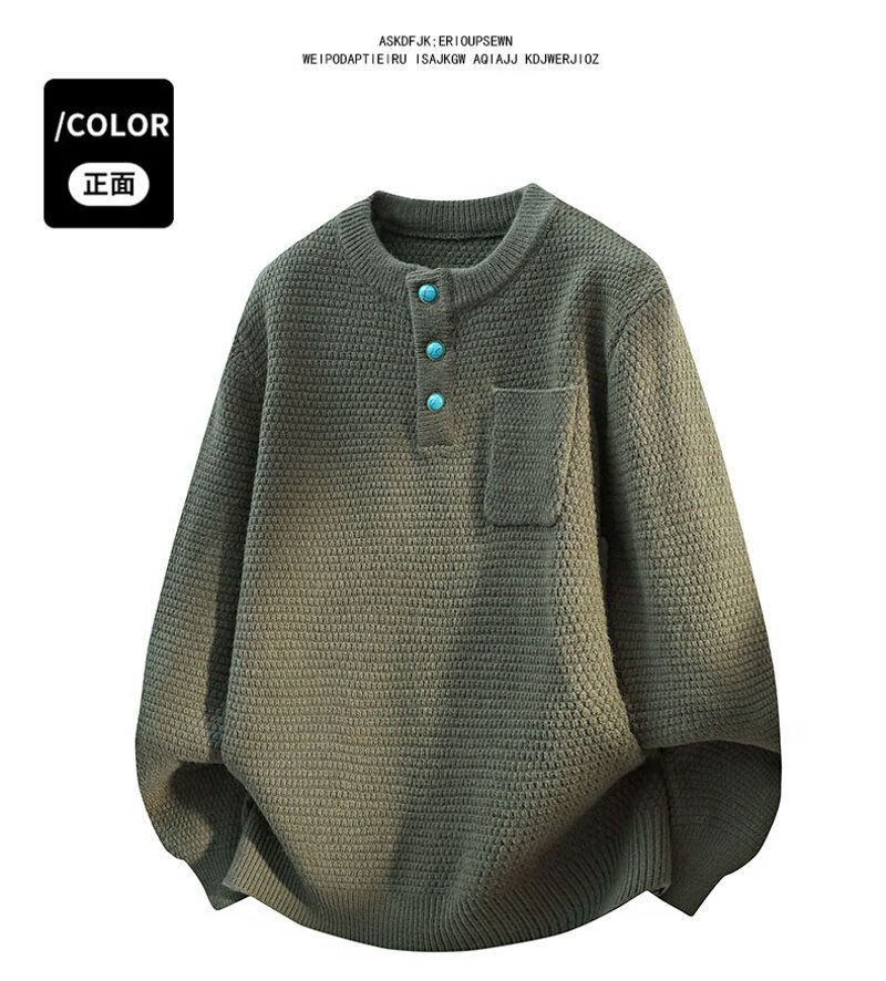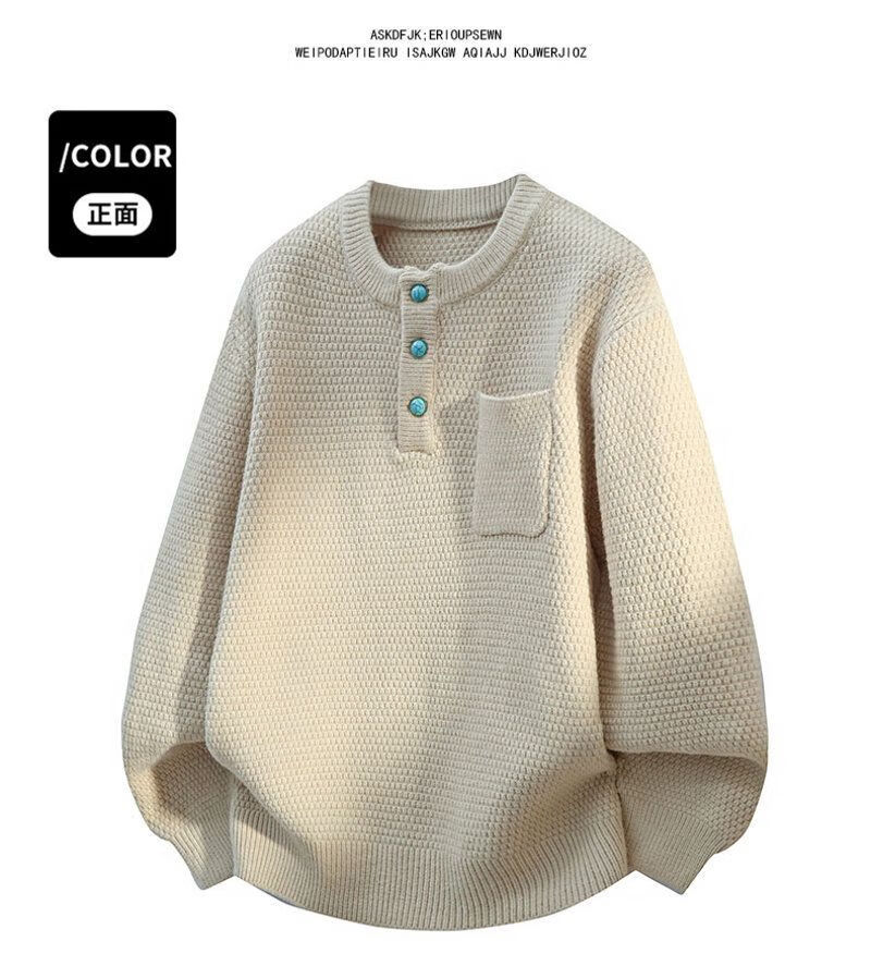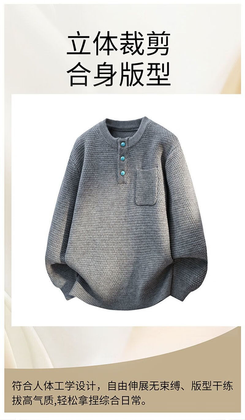 O NEILLONEILL/O'Neill Henry collar solid color sweater men's winter retro all-match warm knitted sweater inner top khaki M