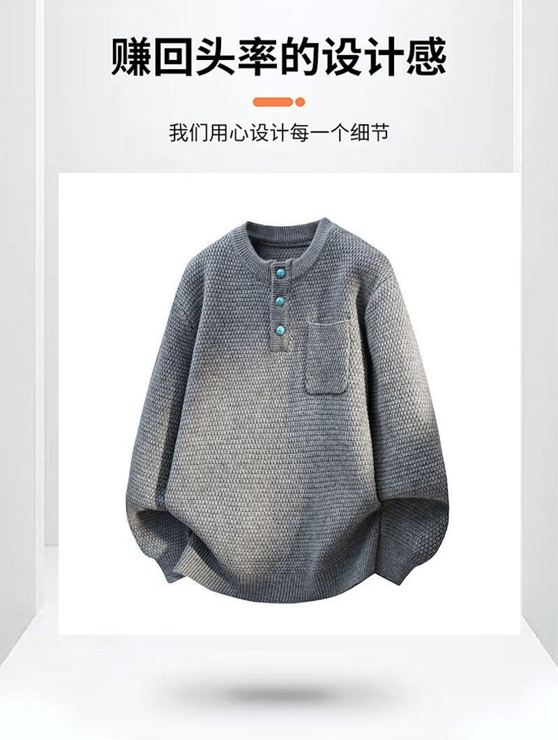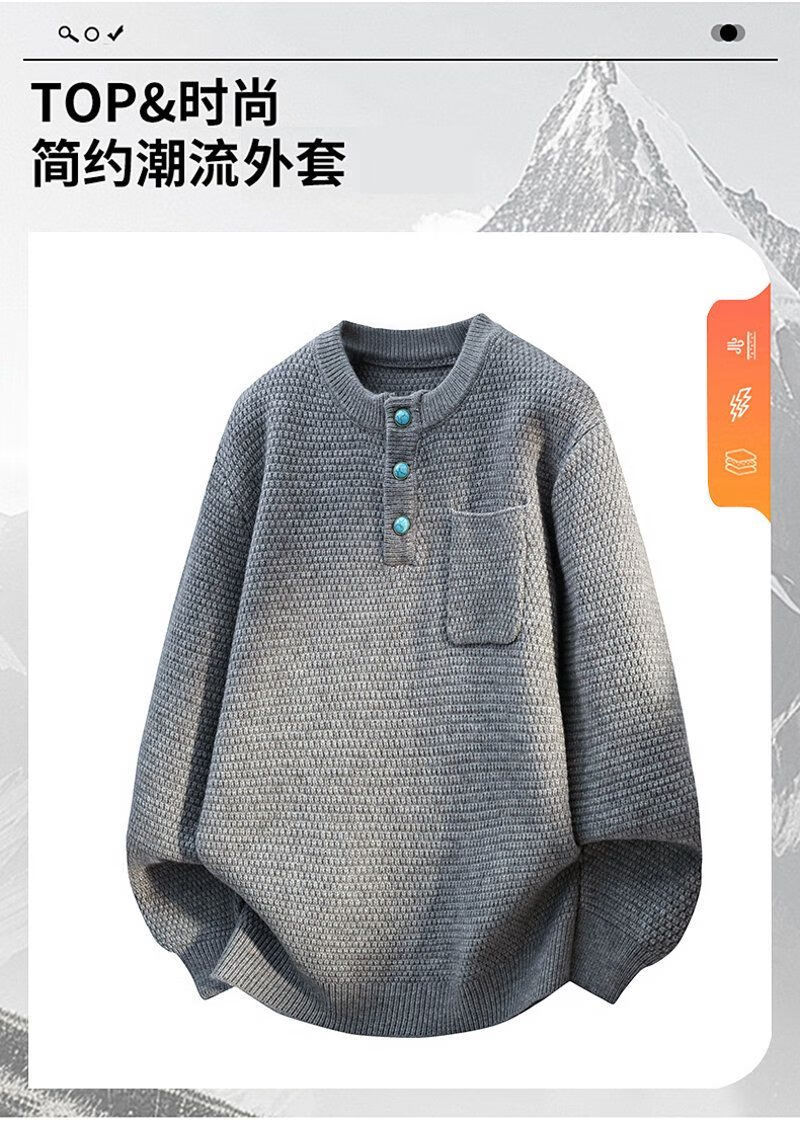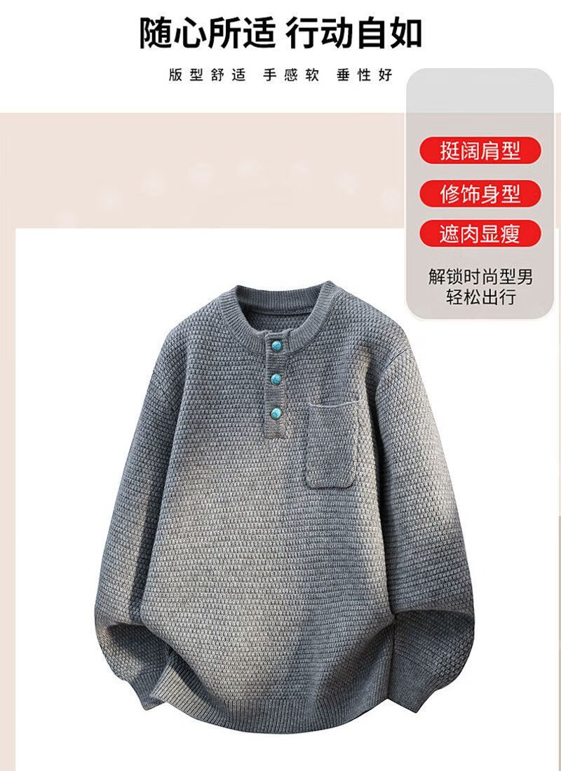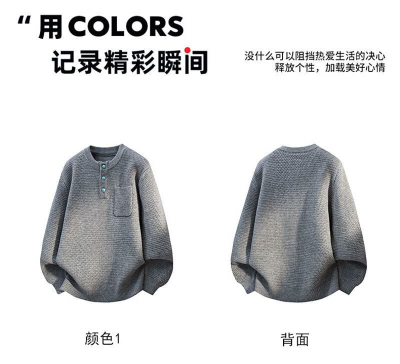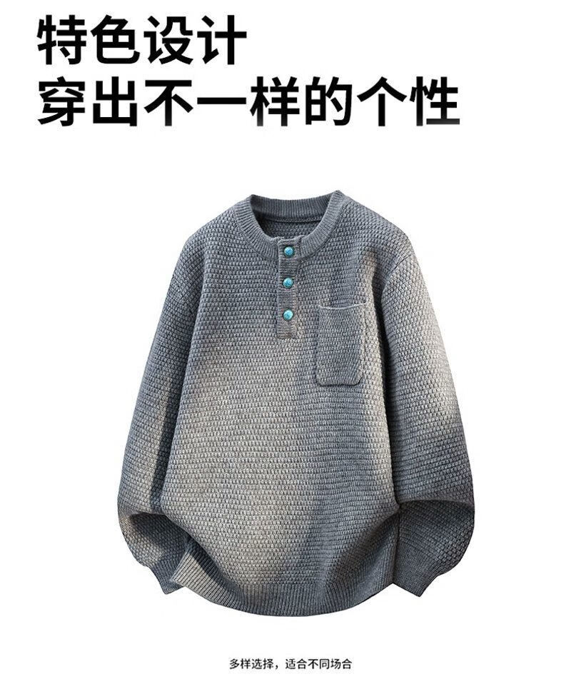 O NEILLONEILL/O'Neill Henry collar solid color sweater men's winter retro all-match warm knitted sweater inner top khaki M