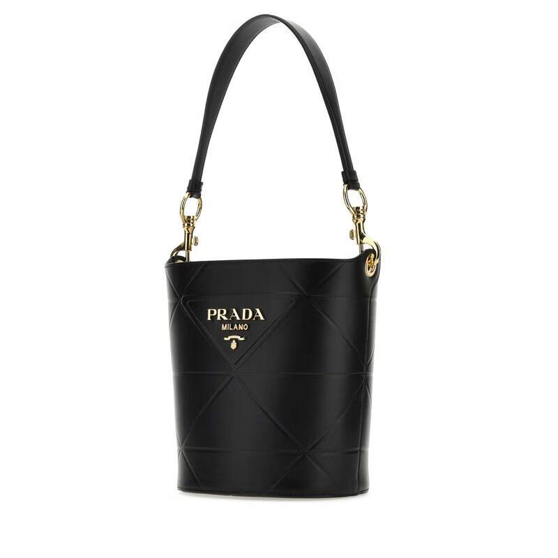 PRADA CO Luxury Women's Black Leather Bucket Bag BLACK One Size