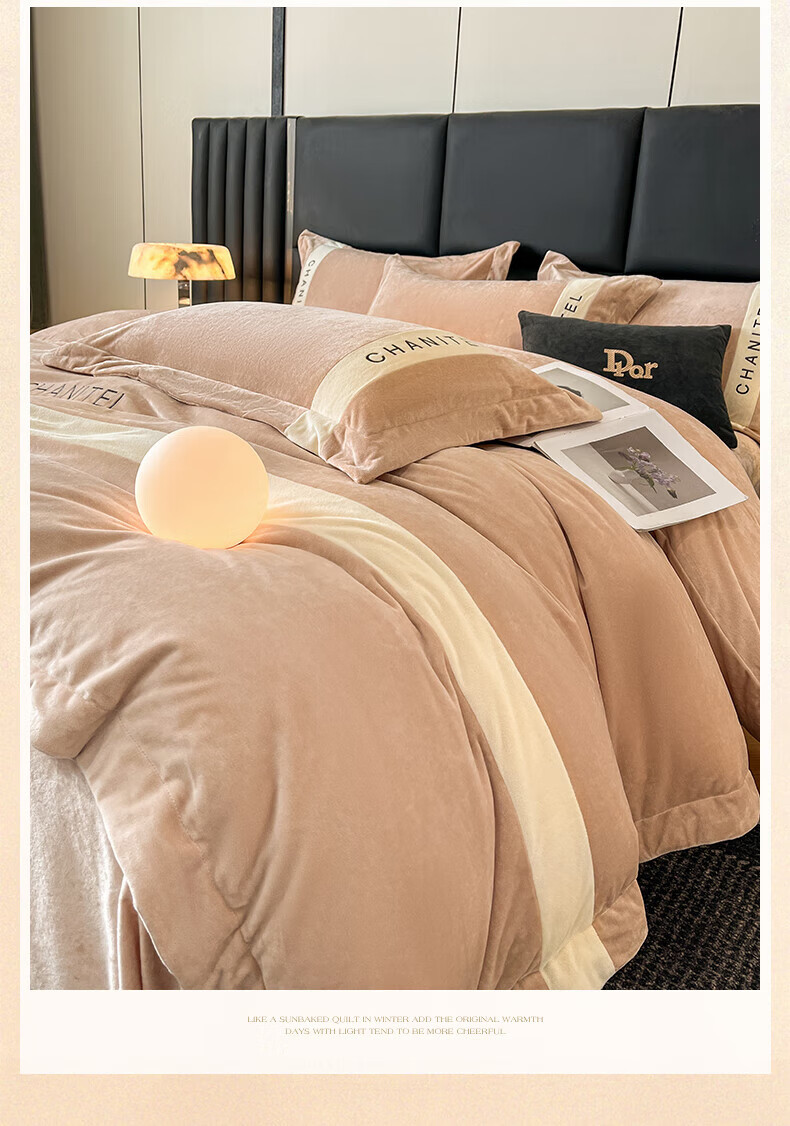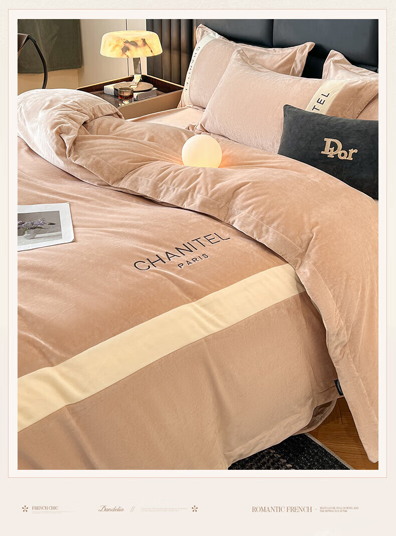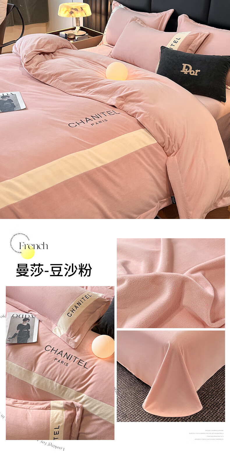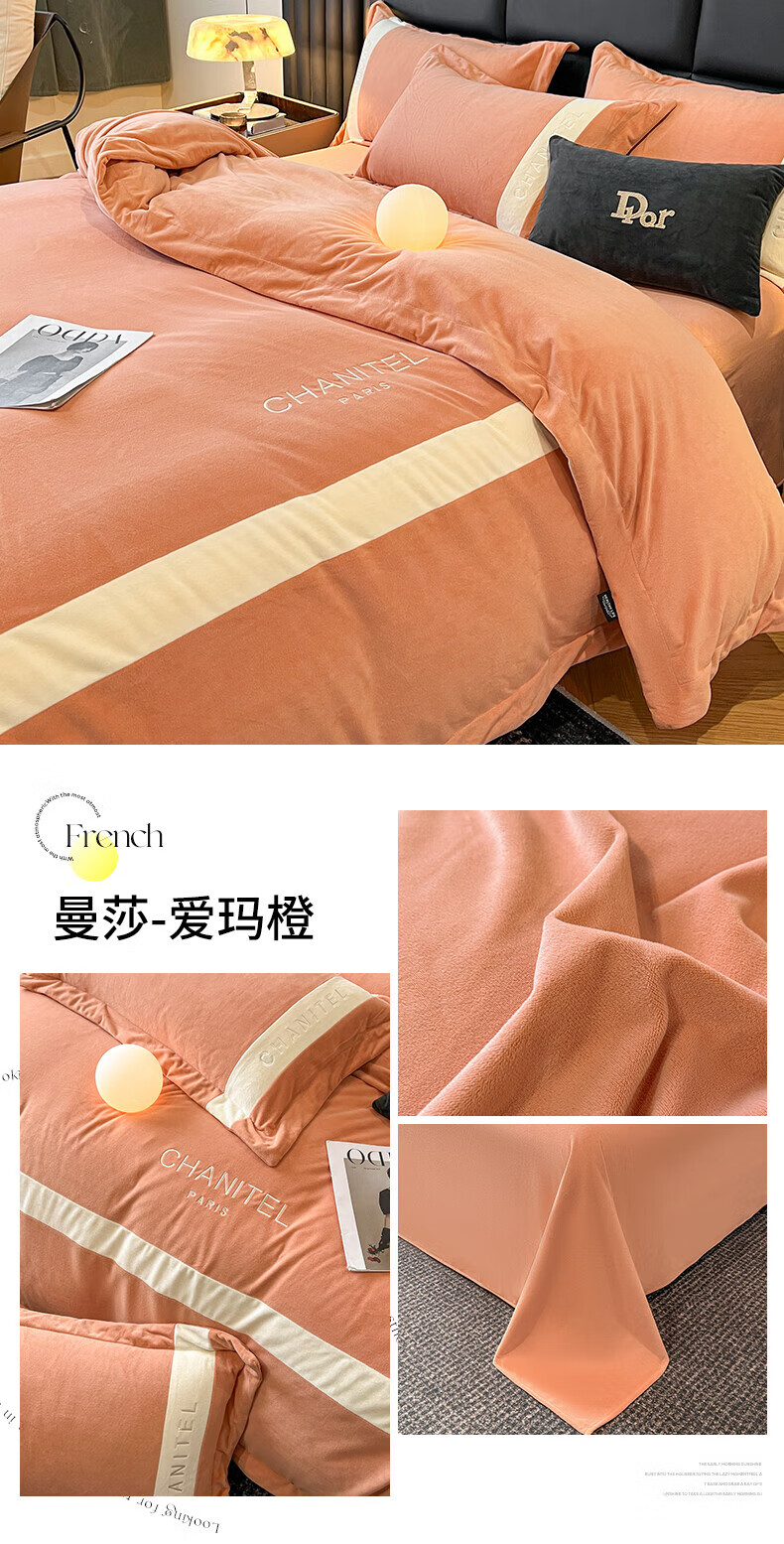 French style baby velvet bed four-piece set winter thickened double-sided baby velvet bed sheet quilt cover winter new product Mansha-Emma Orange bed sheet 1.5m quilt cover 200*230