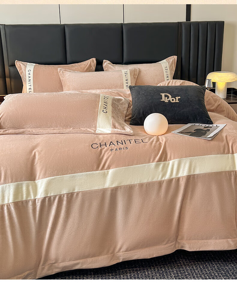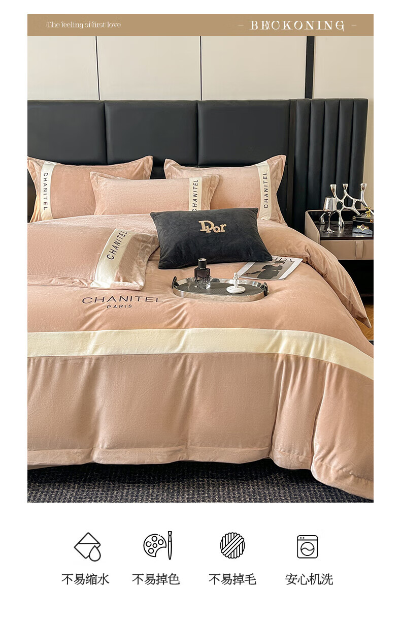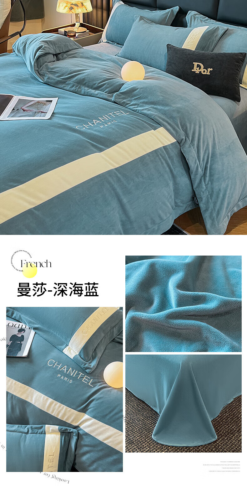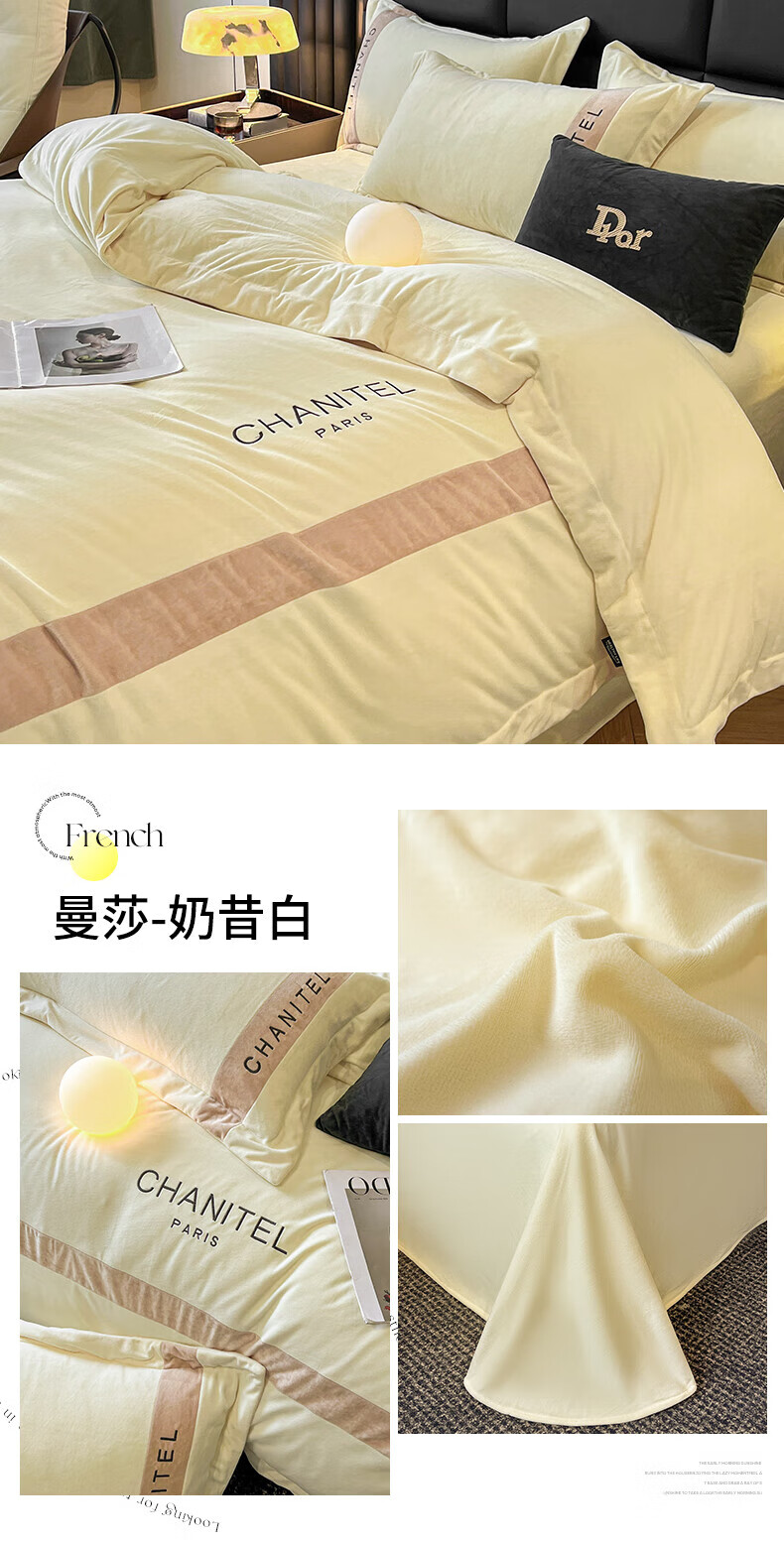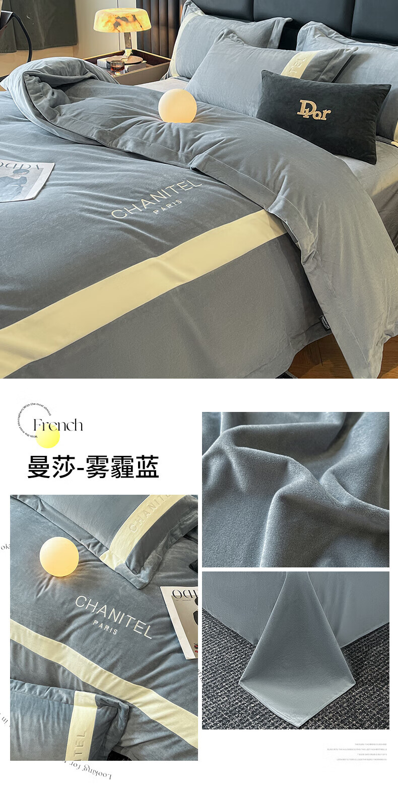 French style baby velvet bed four-piece set winter thickened double-sided baby velvet bed sheet quilt cover winter new product Mansha-Emma Orange bed sheet 1.5m quilt cover 200*230