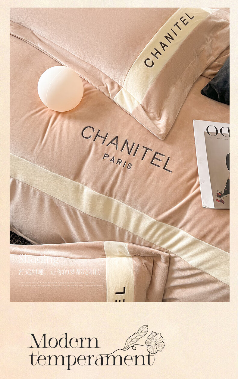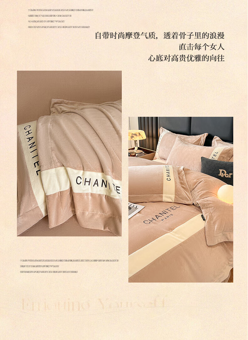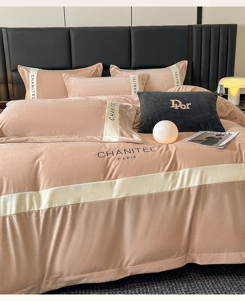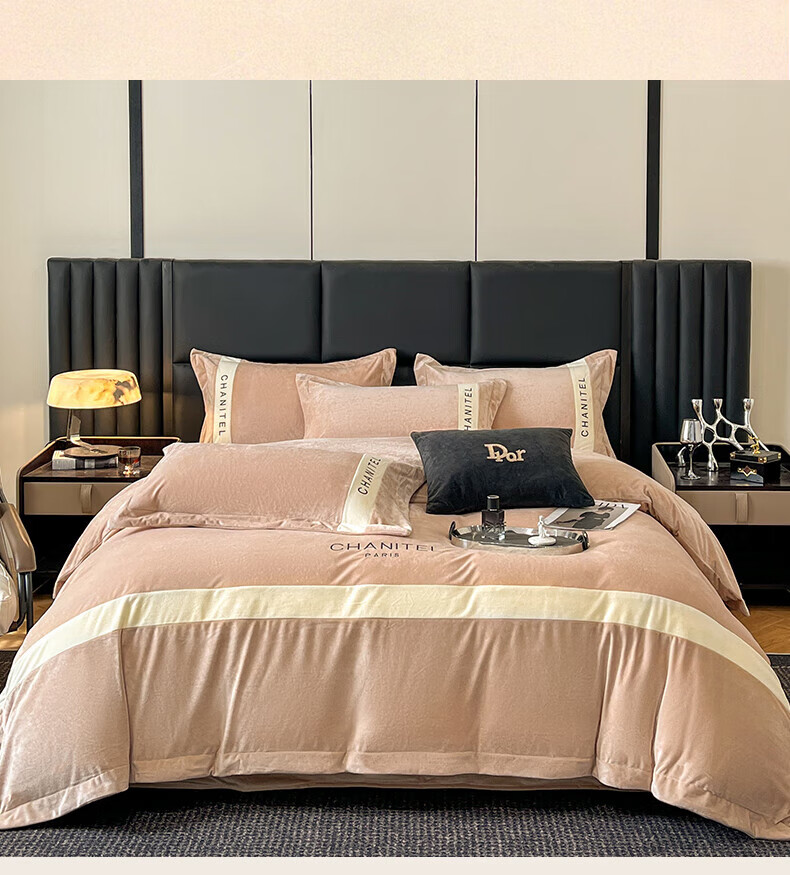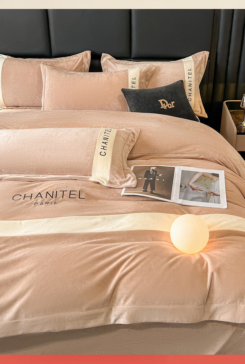 French style baby velvet bed four-piece set winter thickened double-sided baby velvet bed sheet quilt cover winter new product Mansha-Emma Orange bed sheet 1.5m quilt cover 200*230