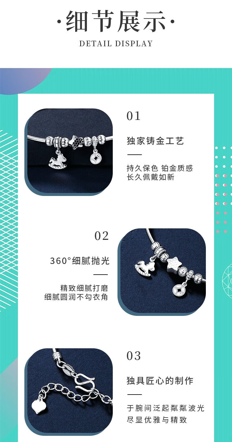 Duozun pt950 platinum bracelet for women, platinum sparkling, get rich immediately bracelet, niche bracelet, holiday gift, get rich immediately, bracelet 7.5-8g (adjustable)