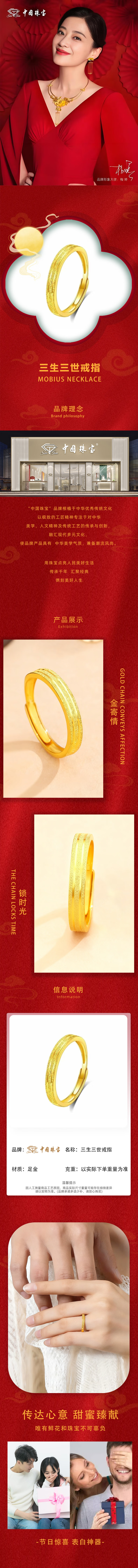 Chinese jewelry SINO GEM pure gold Sansheng III adjustable sparkling ring light luxury simple high-end birthday Double 11 gift recipient Approximately 1.7g Sansheng III ring adjustable women's ring