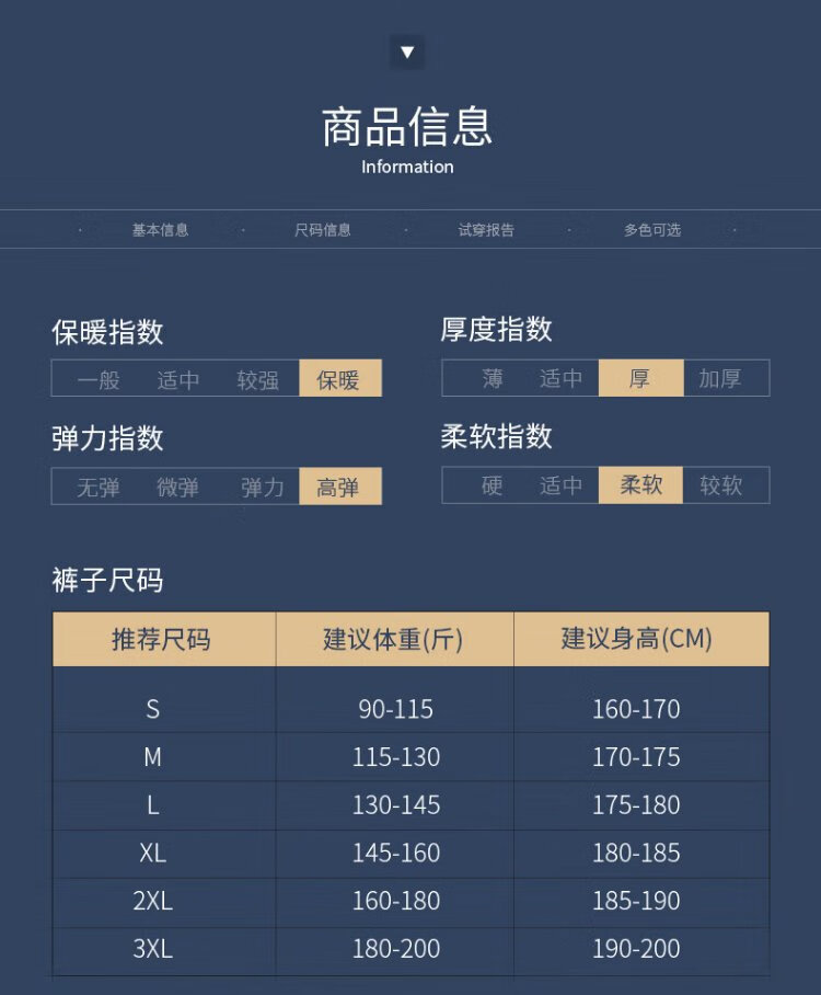 China (cm) 165 / 88-90 170 / 96-98 175 / 108-110 180 / 118-122 185 / 126-130