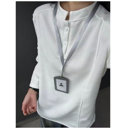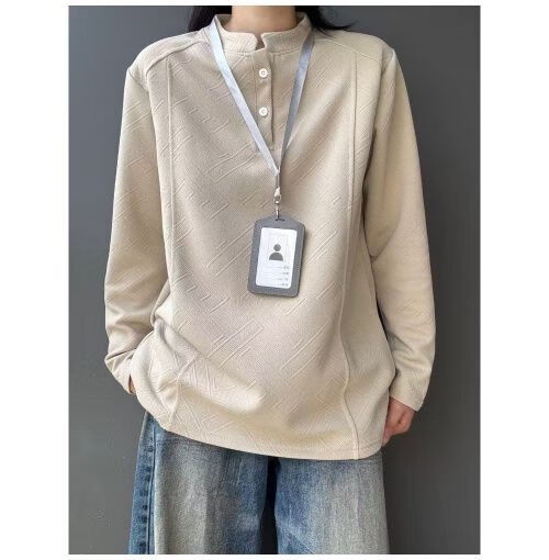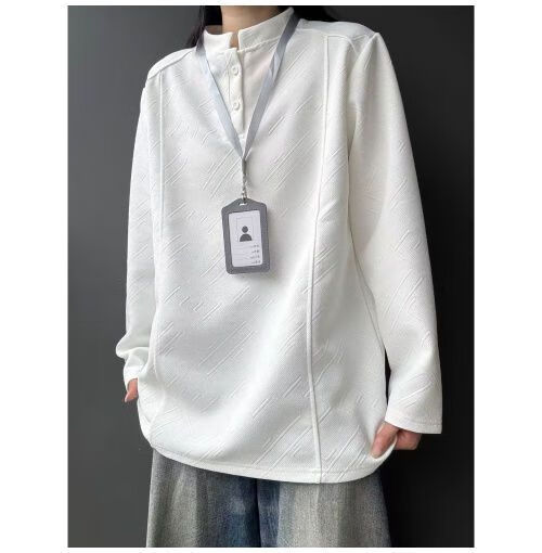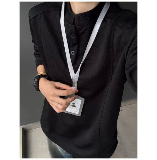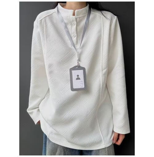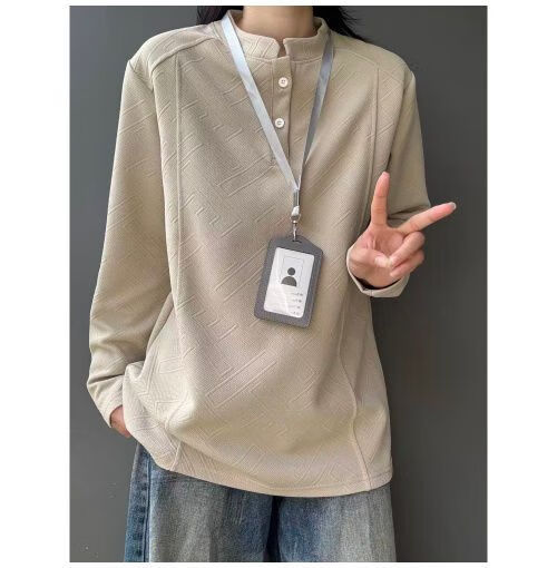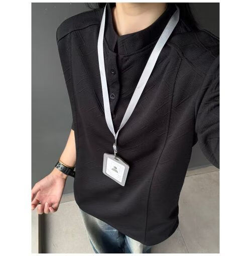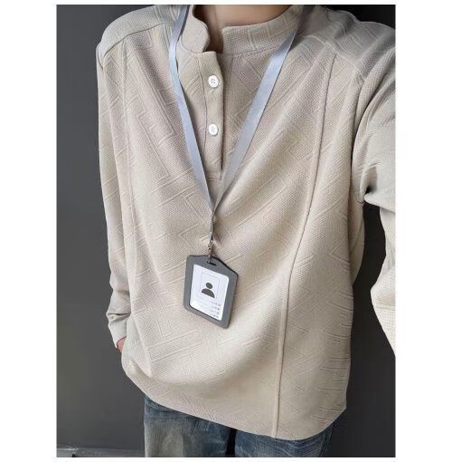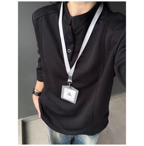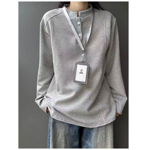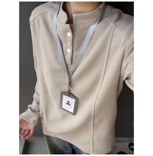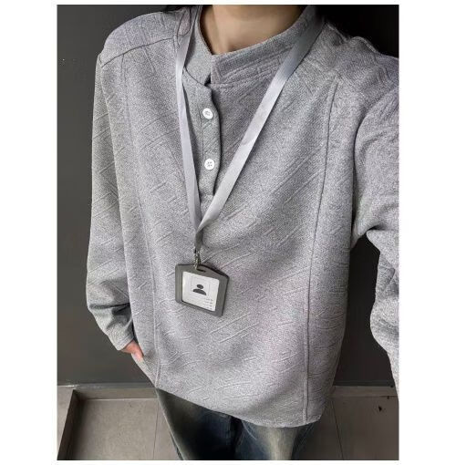 JNWZ American trendy brand deconstructed splicing design long-sleeved right shoulder Henley collar autumn and winter velvet POLO shirt men's gray M