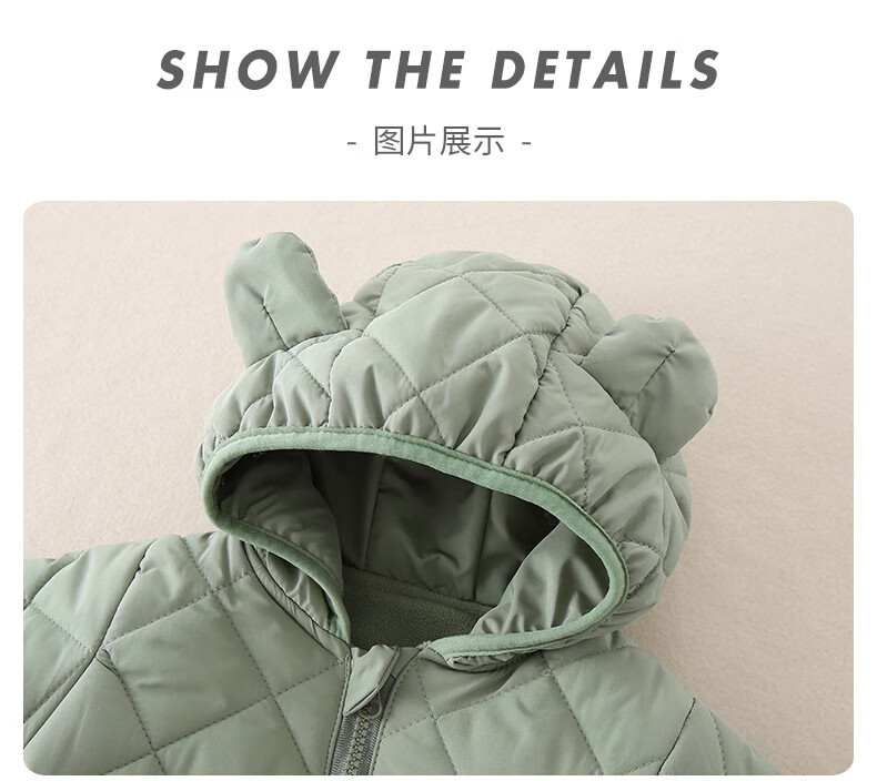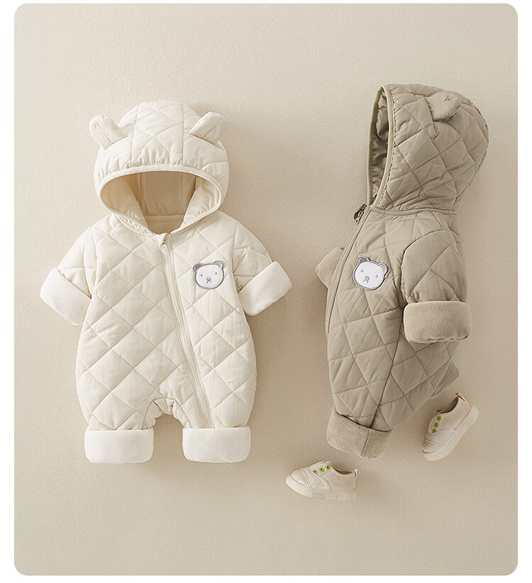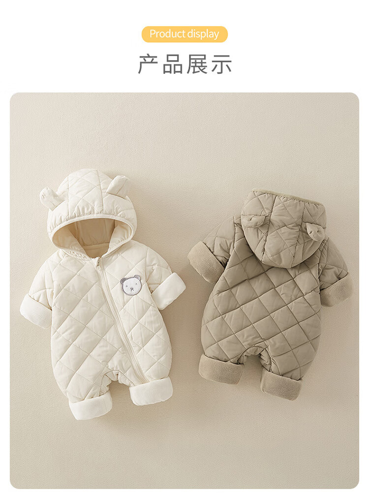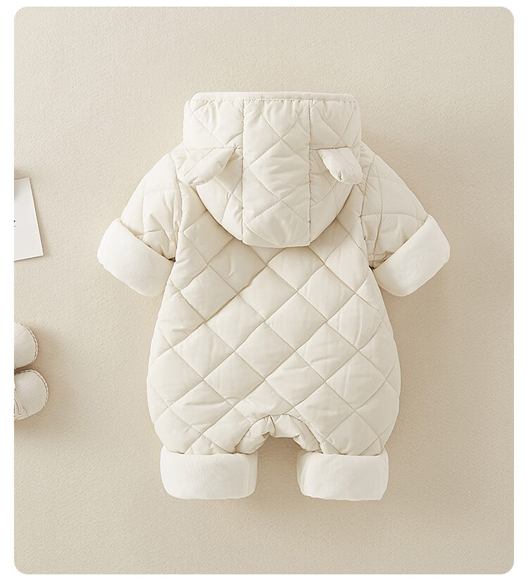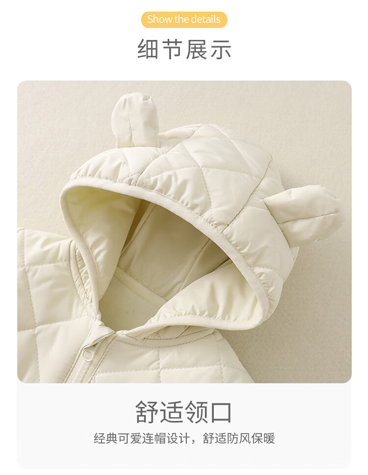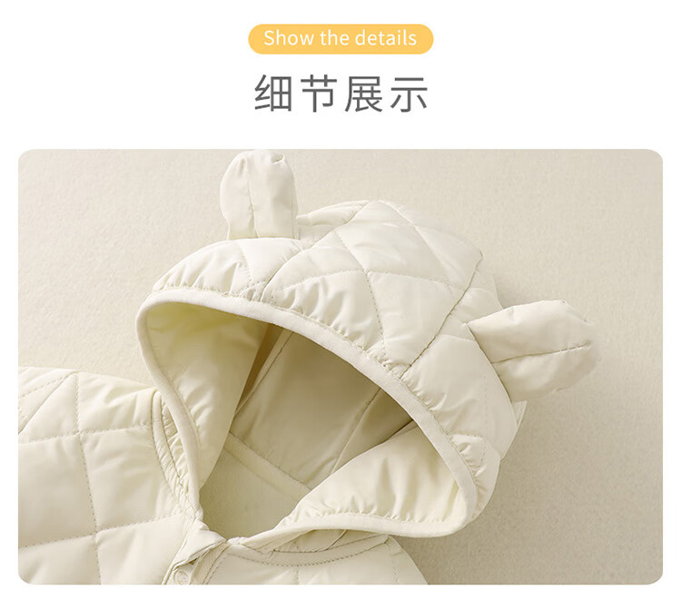 G.duck thin cotton outdoor clothing for infants and young children, spring, autumn and winter hooded warm quilted onesies for men and women, baby coats, bodysuits, rompers, off-white 90cm