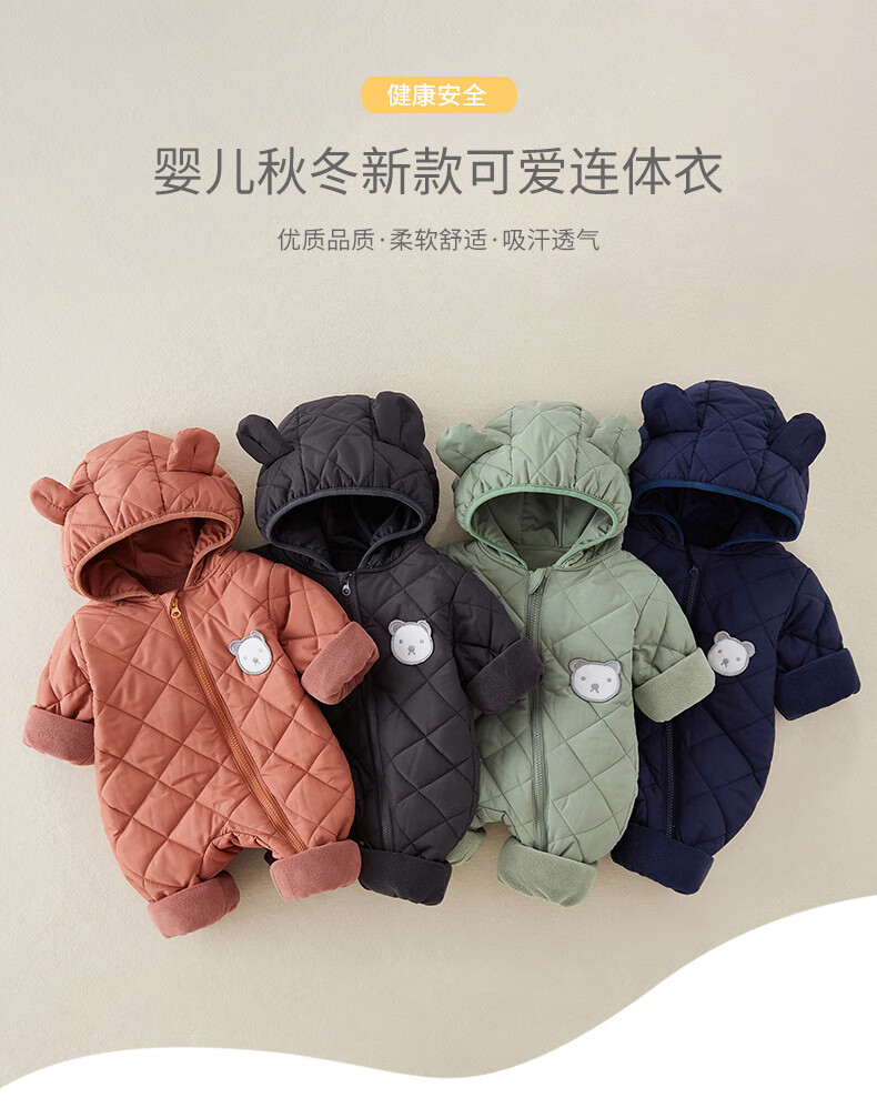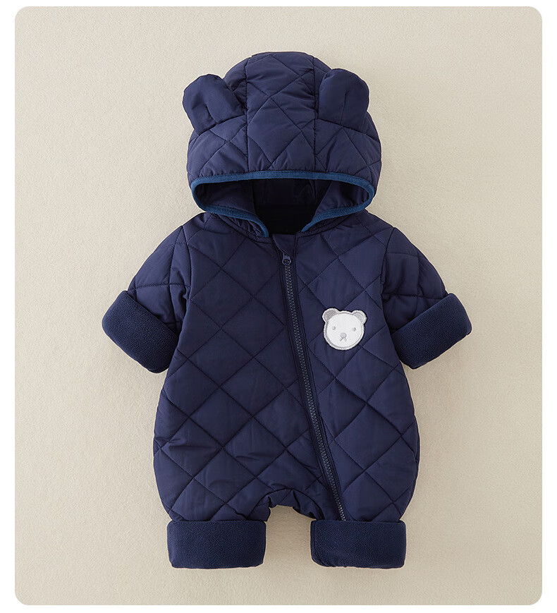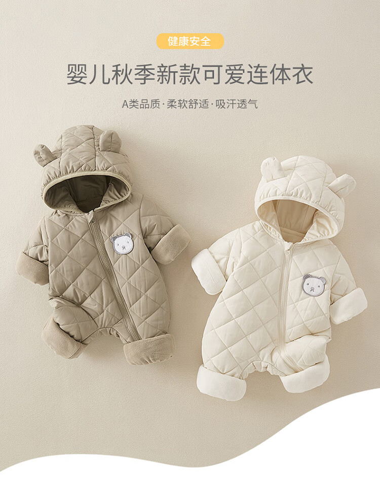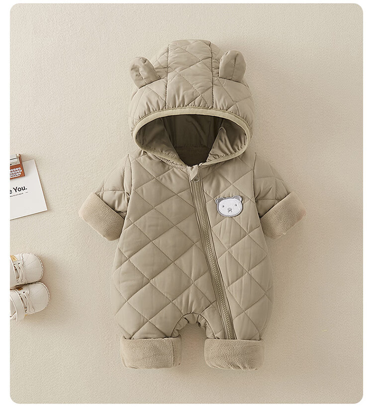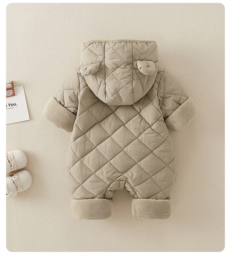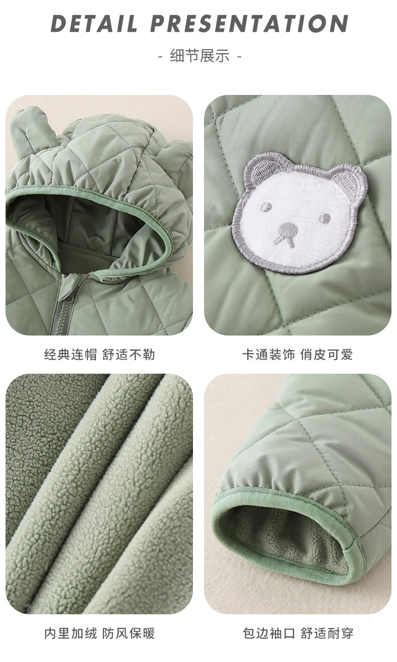 G.duck thin cotton outdoor clothing for infants and young children, spring, autumn and winter hooded warm quilted onesies for men and women, baby coats, bodysuits, rompers, off-white 90cm