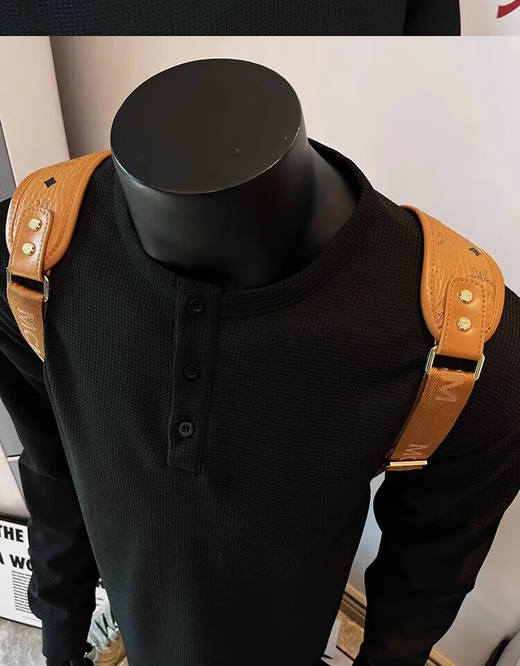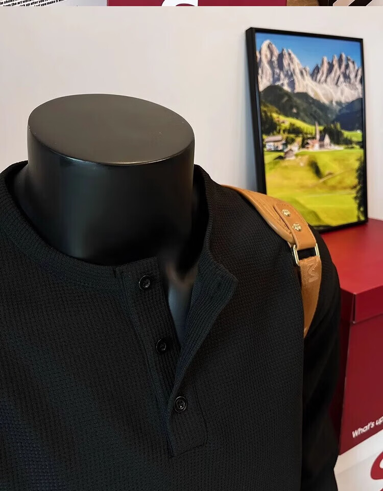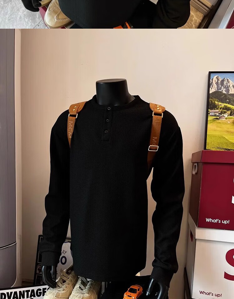 PUGESI Henry collar waffle long-sleeved t-shirt for men in spring and autumn American style shoulder polo sweatshirt heavy black inner layering shirt black regular M 80-100Jin Jin is equal to 0.5 kg