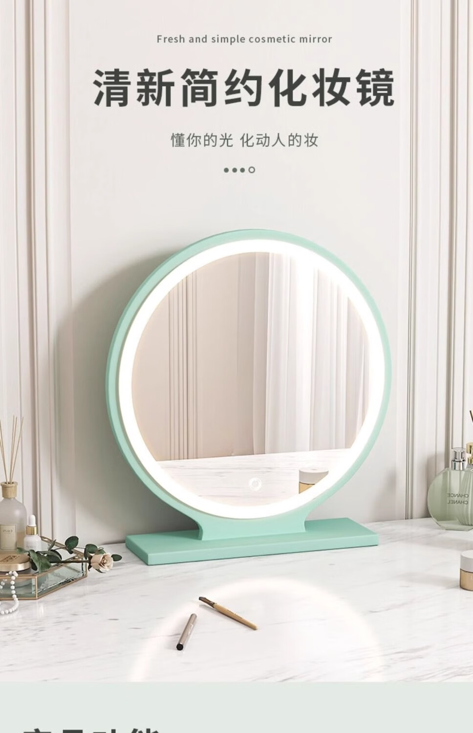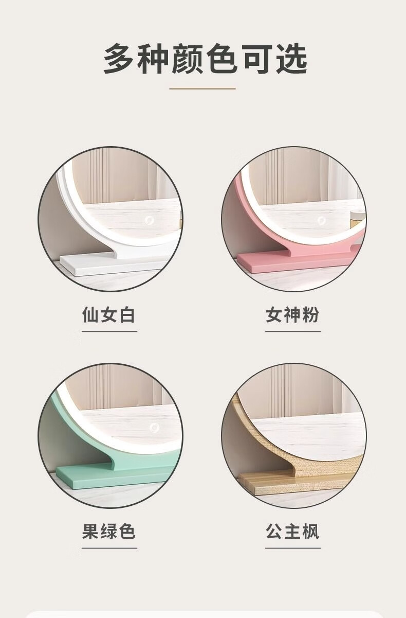 Fat Donglai's same style makeup mirror LED light mirror with light desktop desktop LED home bedroom fill light mirror dressing table round mirror high definition and warm 40CM goddess powder smart light mirror丨Three levels of fill light