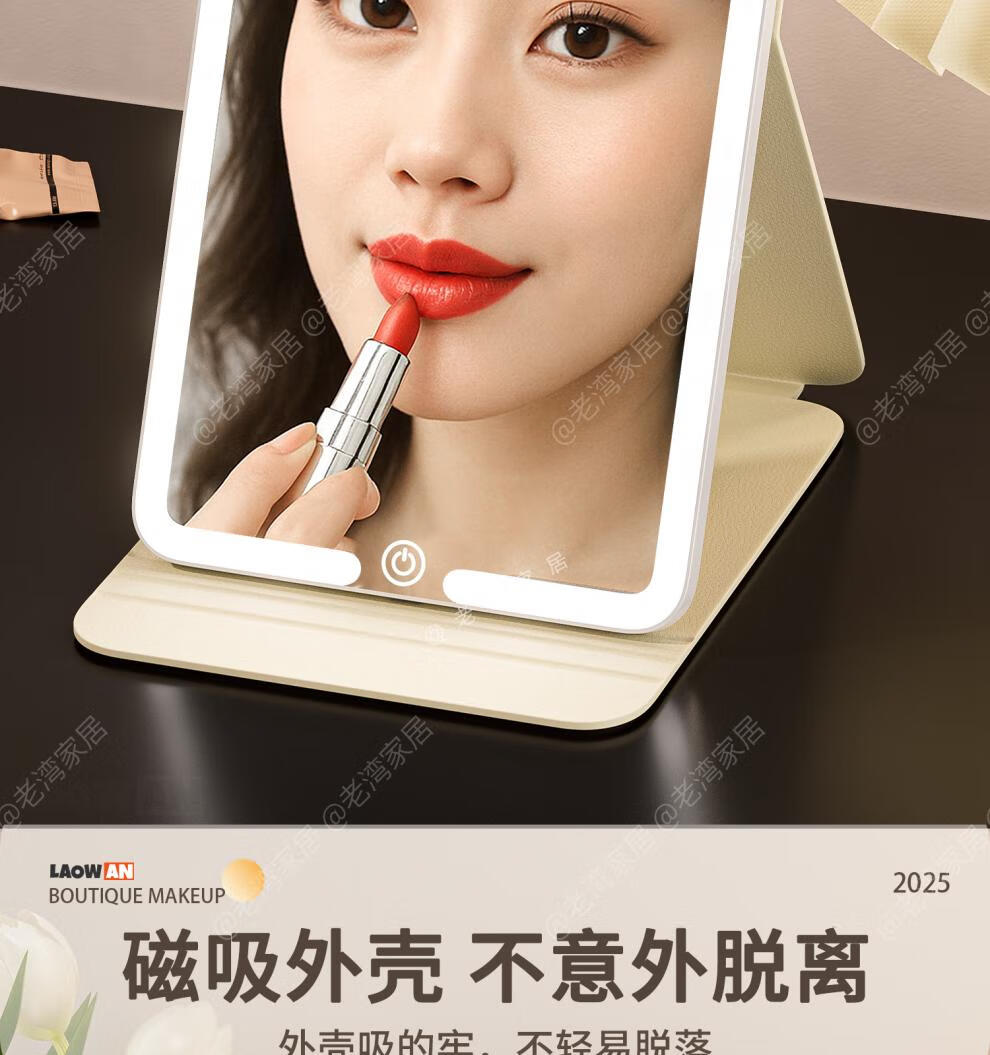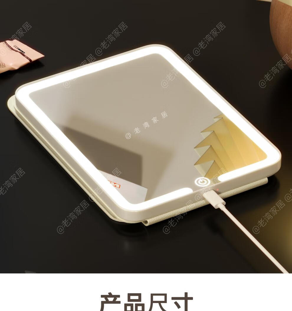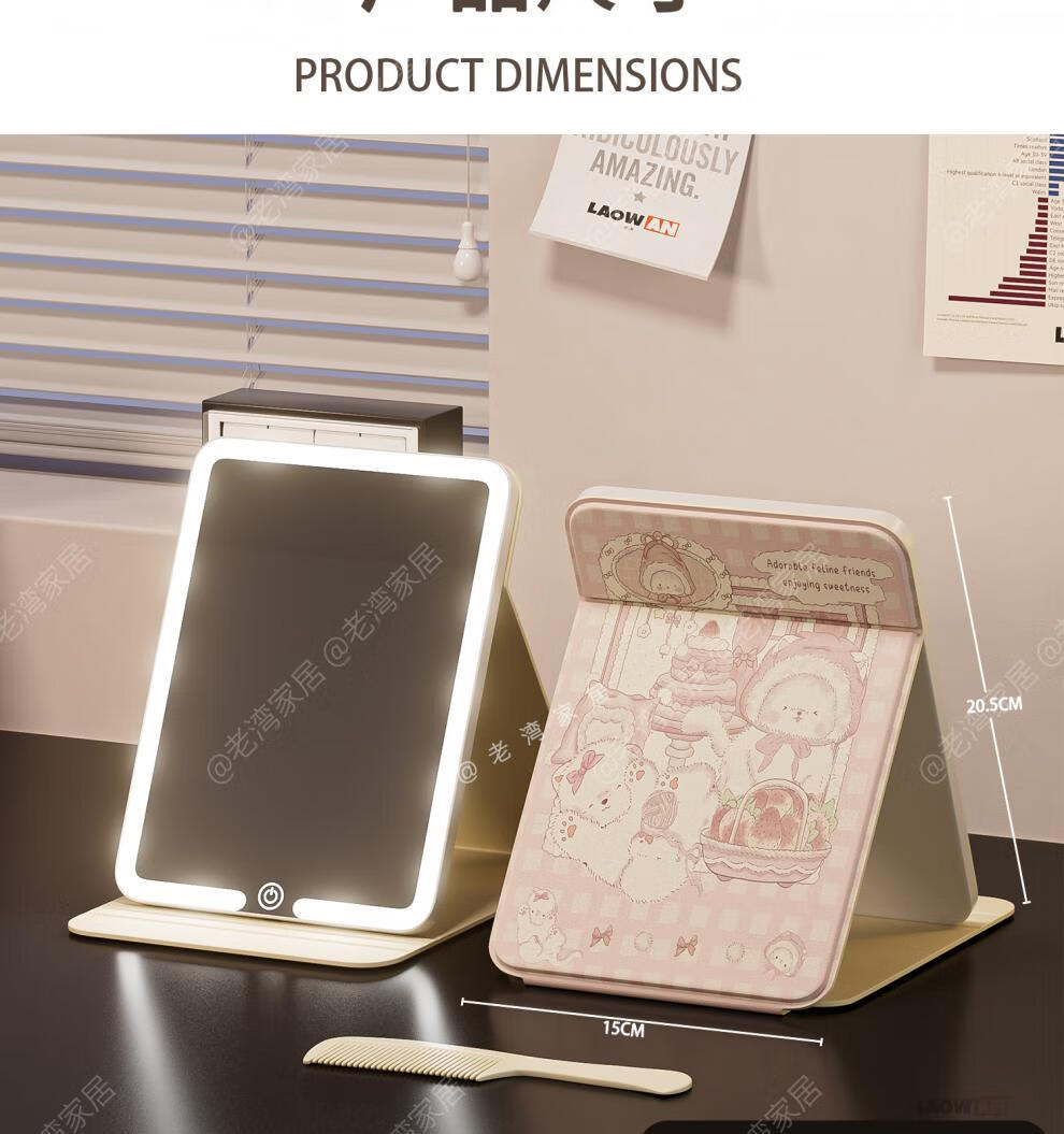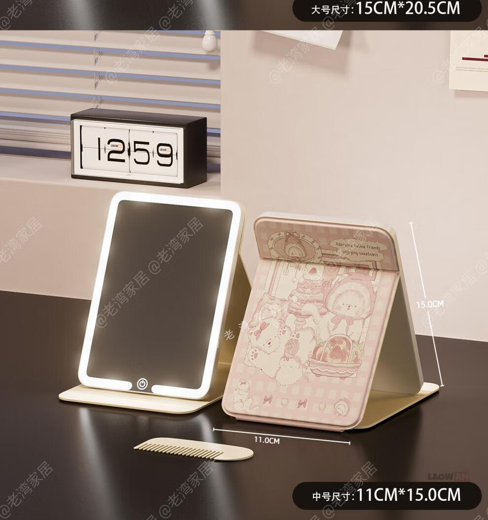 Fat Donglai's same style makeup mirror LED light LED with light folding makeup mirror desktop high-definition student dormitory home desktop portable mirror Cake Puppy-Large + Medium Size Home/Travel