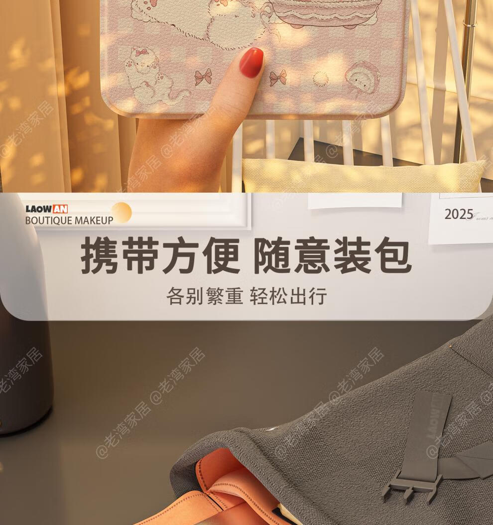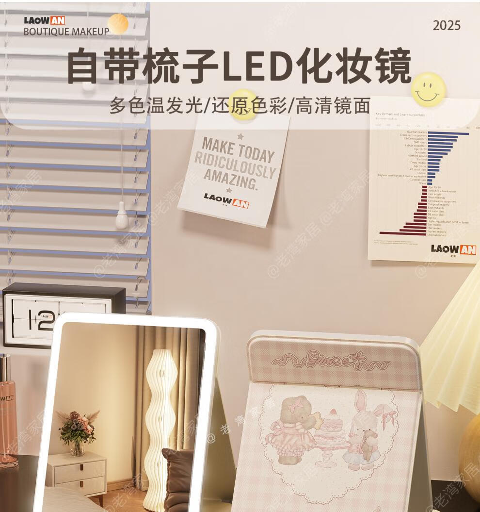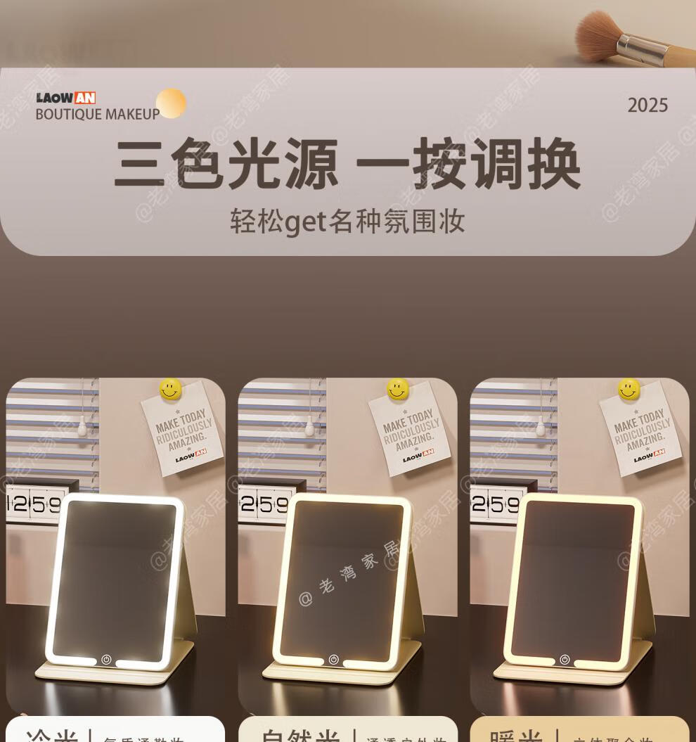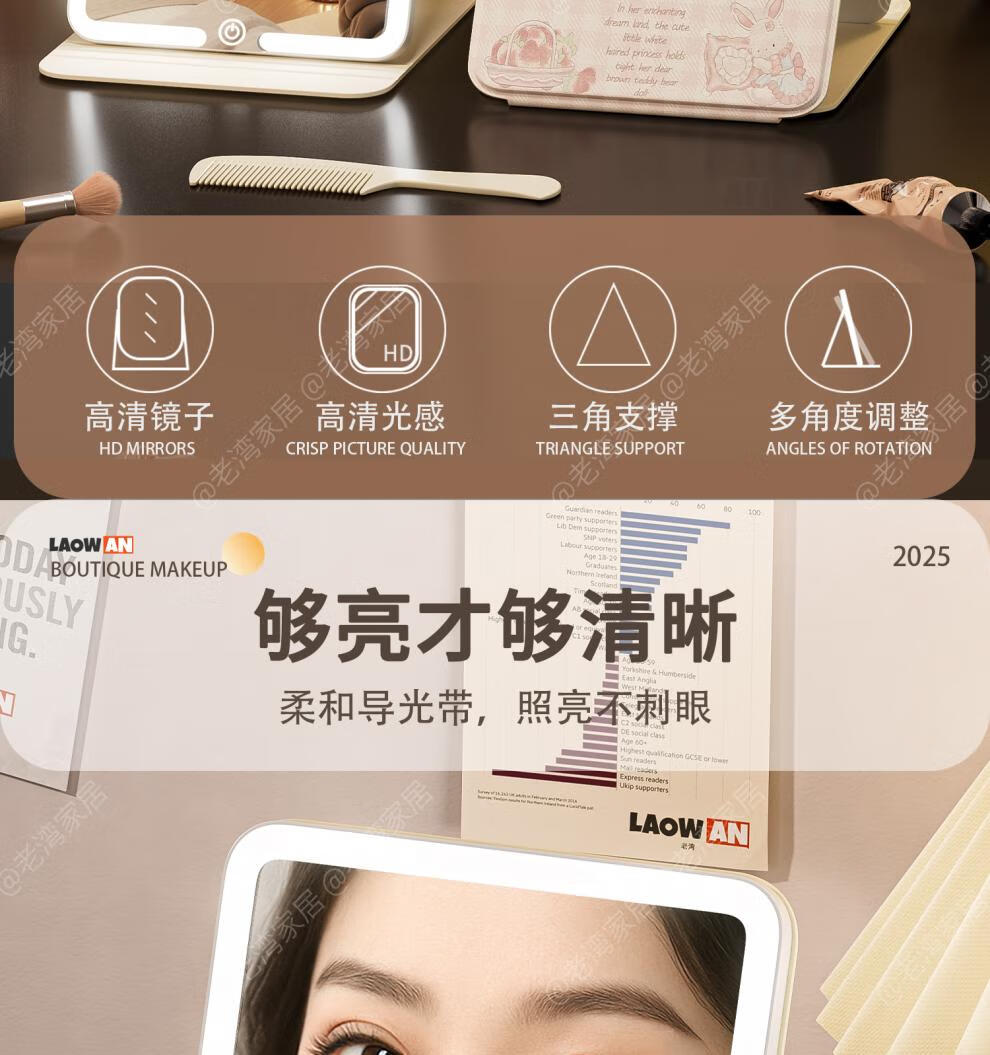 Fat Donglai's same style makeup mirror LED light LED with light folding makeup mirror desktop high-definition student dormitory home desktop portable mirror Cake Puppy-Large + Medium Size Home/Travel